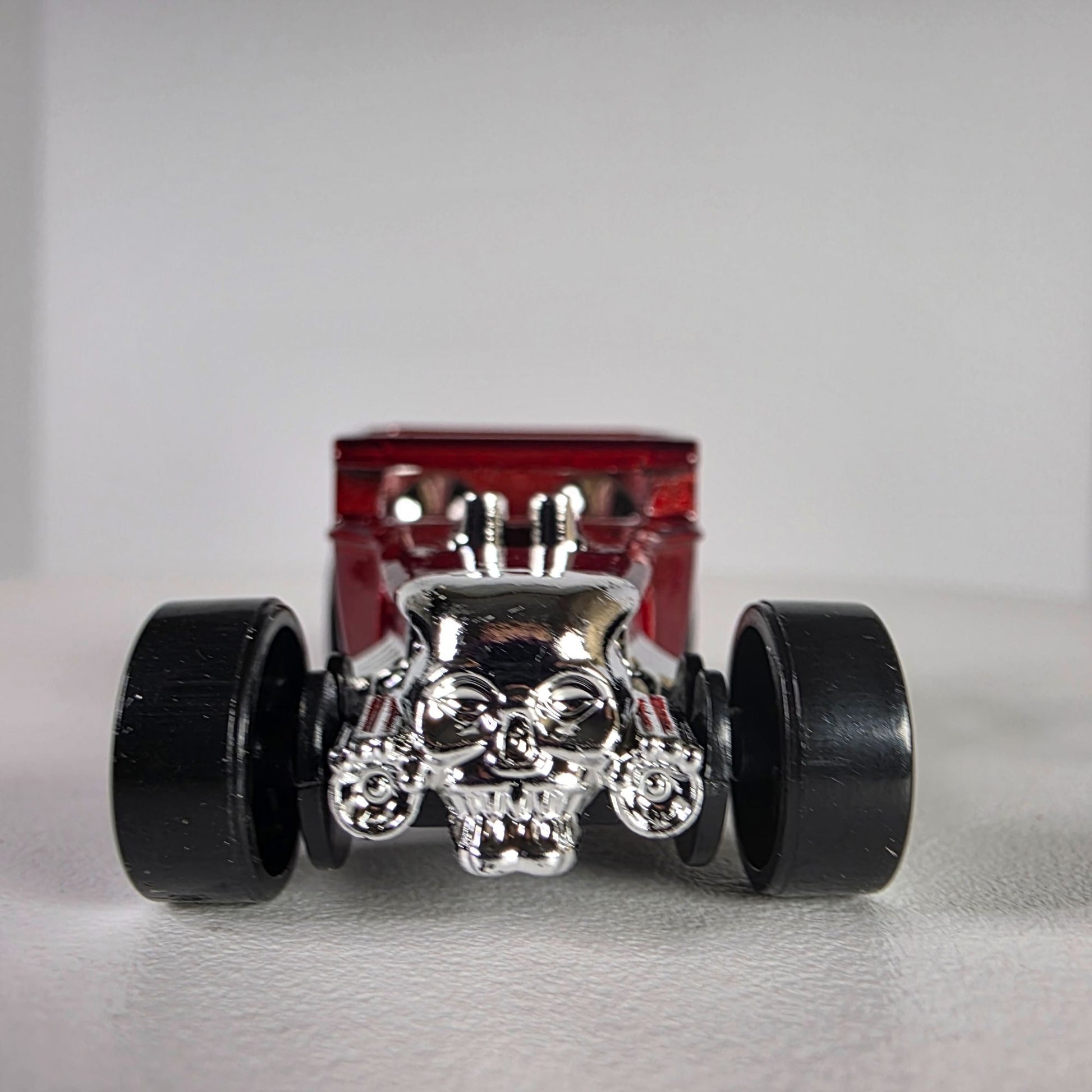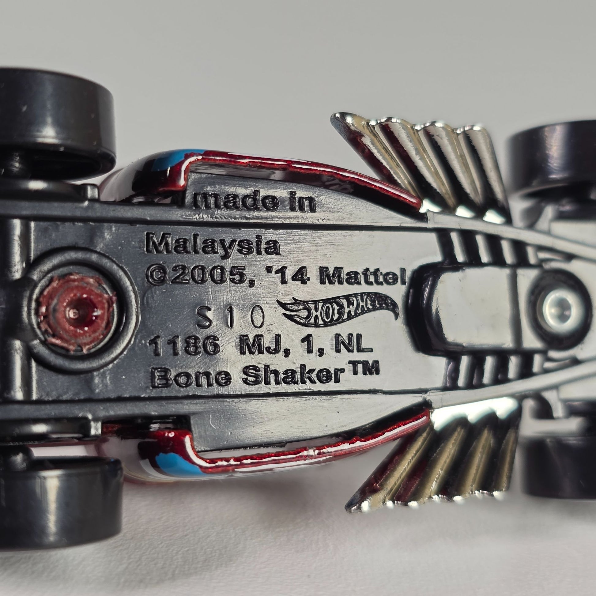 2005 Hot Wheels Bone Shaker Red Die-Cast Car With Skull Grill & Chrome Details
