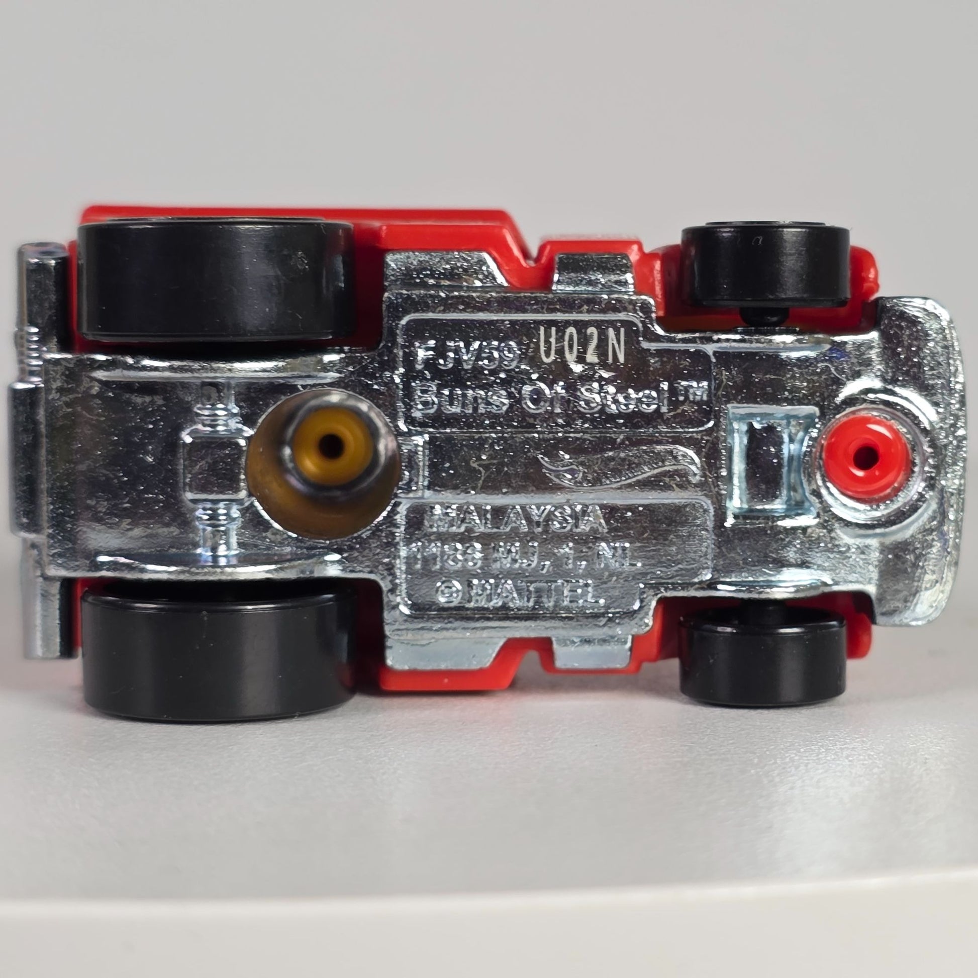 This 2025 Hot Wheels Buns of Steel toy car captures the whimsical spirit of fast-food nostalgia. Designed with a burger and fries motif, this die-cast model offers a playful twist on the classic food truck. As a part of the Hot Wheels collection, it combines imaginative design with durable craftsmanship, promising hours of imaginative play or a quirky addition to any collection.