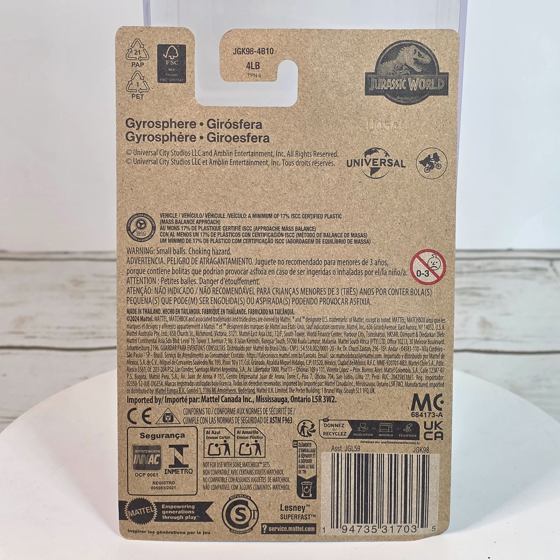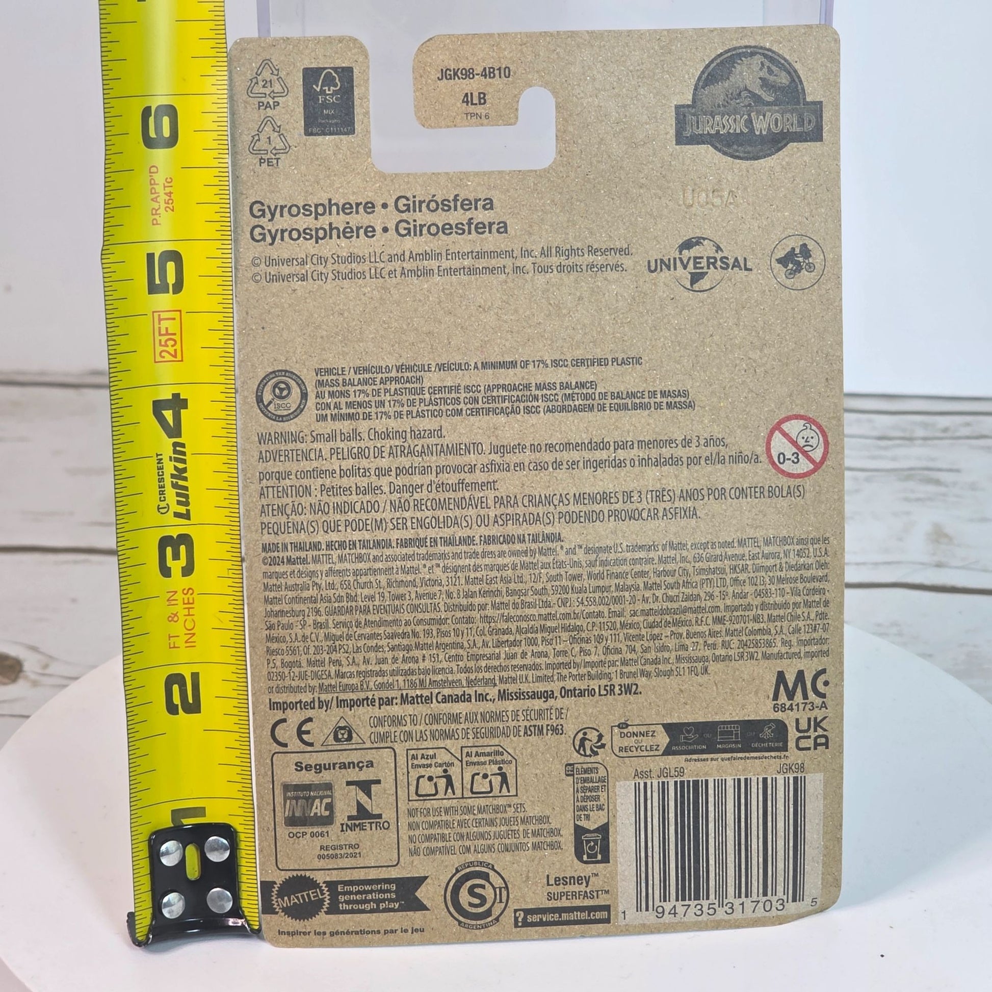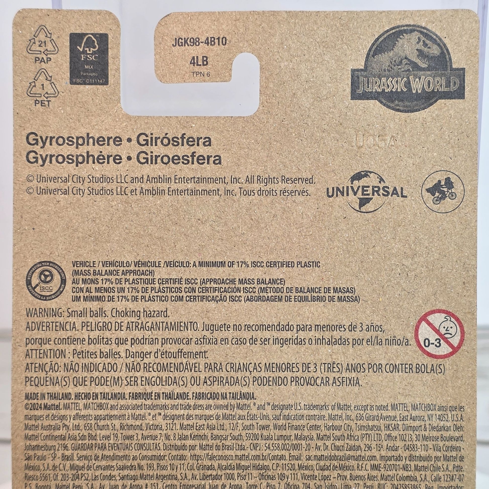 2025 Matchbox Jurassic World Rebirth Gyrosphere Toy - Blue & Clear For Kids 3+ - JGL59