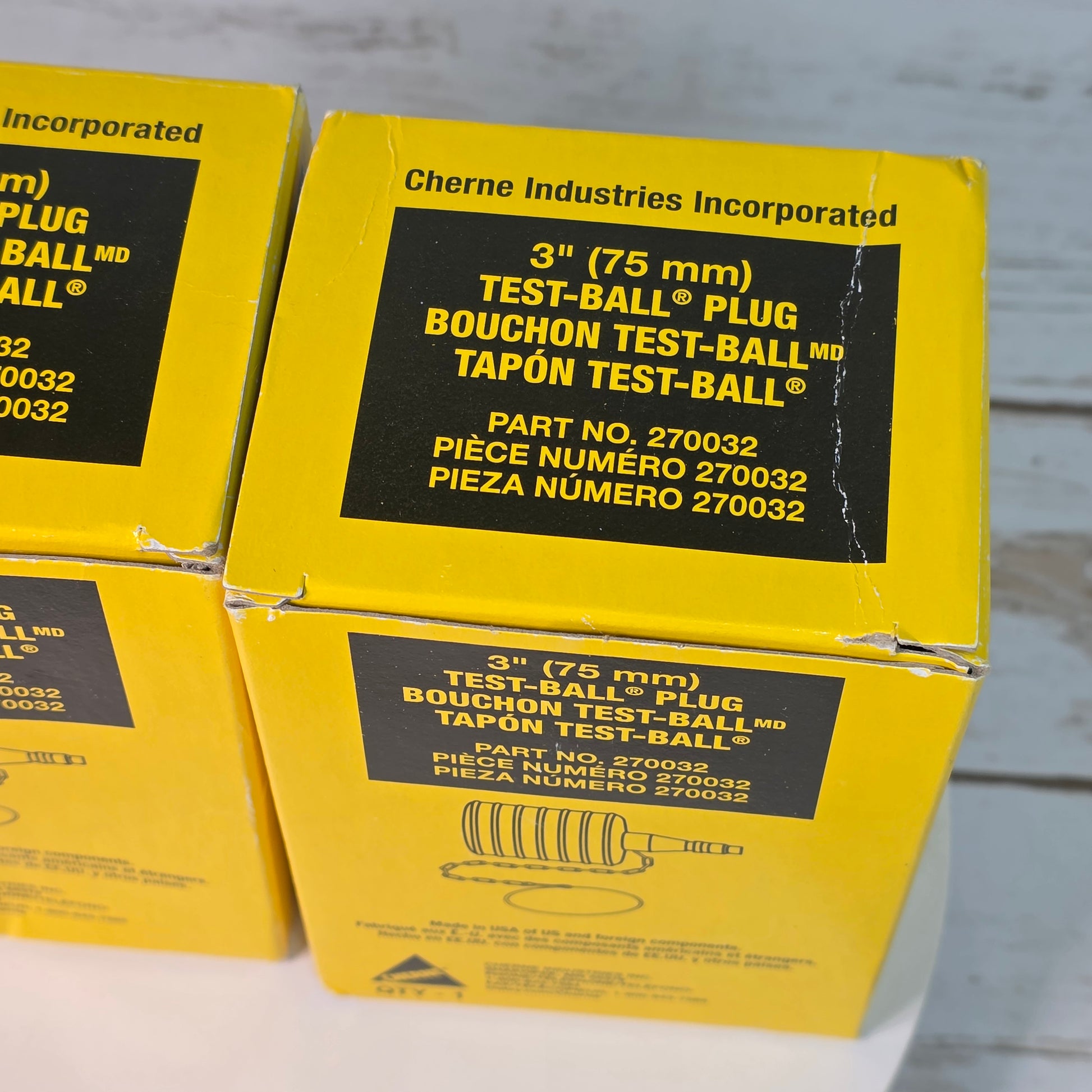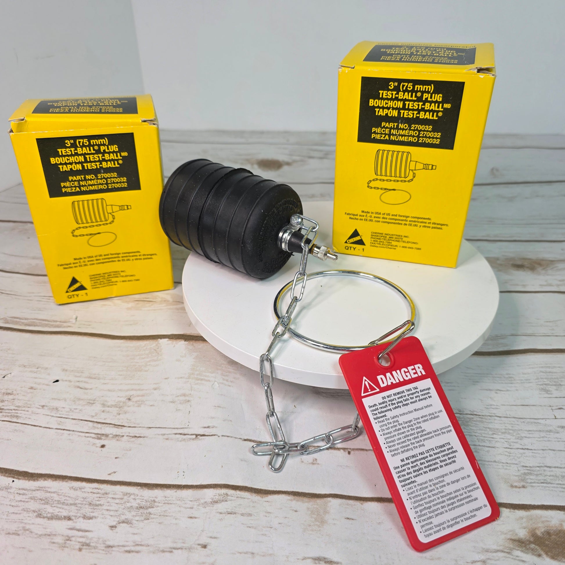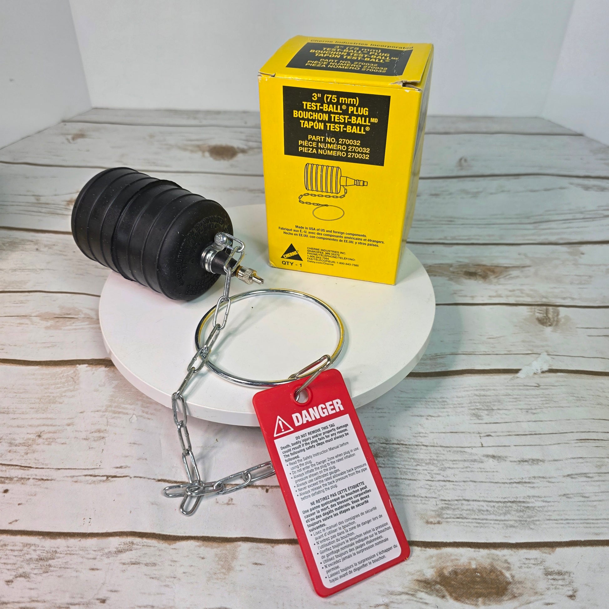 As an industry expert, this 3" (75 mm) test-ball plug offers a reliable and efficient solution for testing pipes and drains. Made by CHERNE and verified as 270032, it uses a Test-Ball design to secure a tight seal, ensuring accurate results. Trust in its 75 mm size for versatile use. This listing is for the 2 boxes photographed. See photos for details.