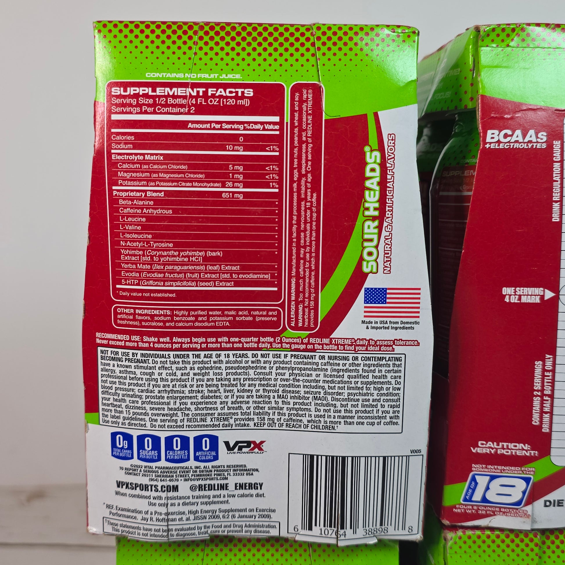 New REDLINE Xtreme Ultimate Energy Rush Dietary Supplement Sour Heads 16, 8oz bottles (4,4 packs) - RARE FLAVOR!! DISCONTINUED!!