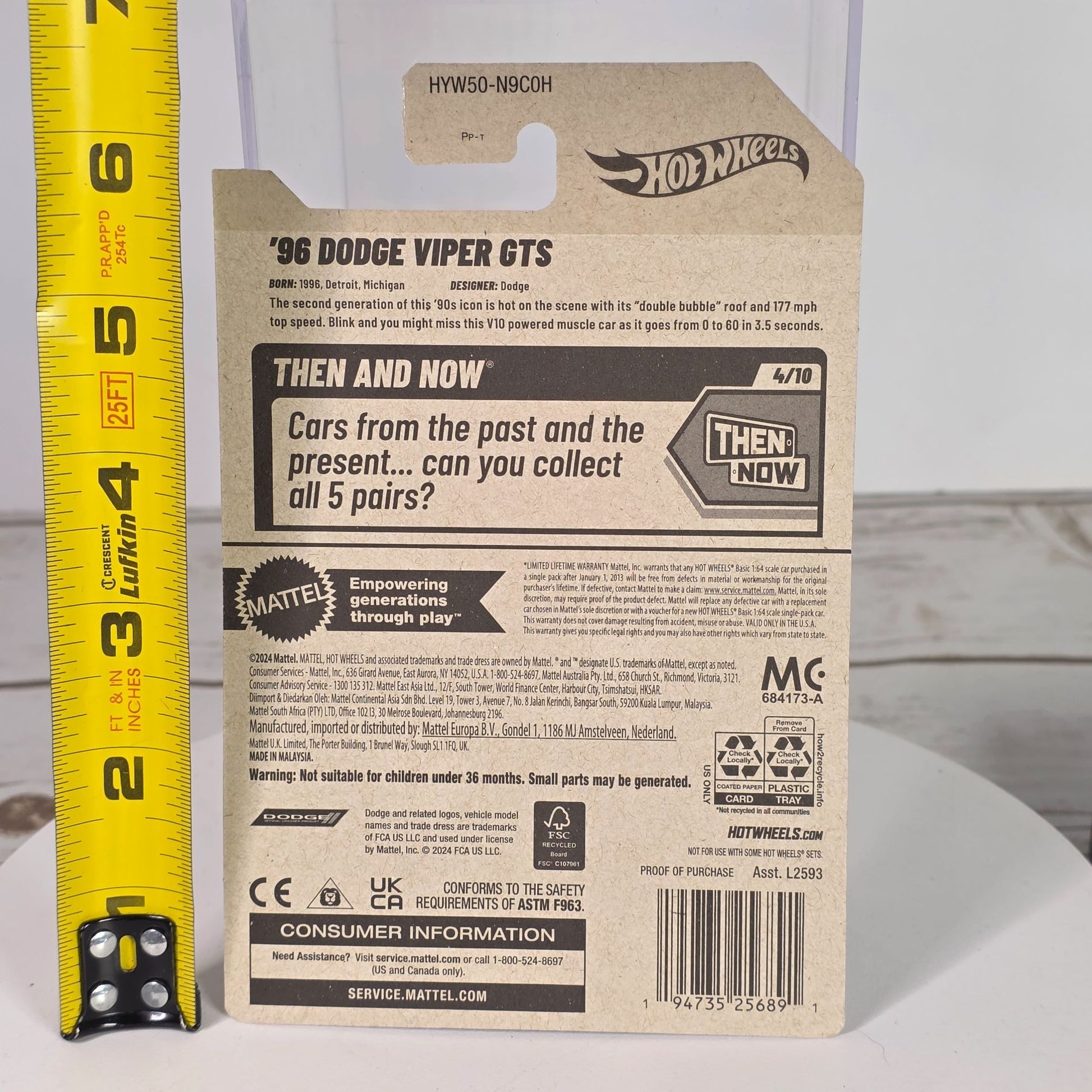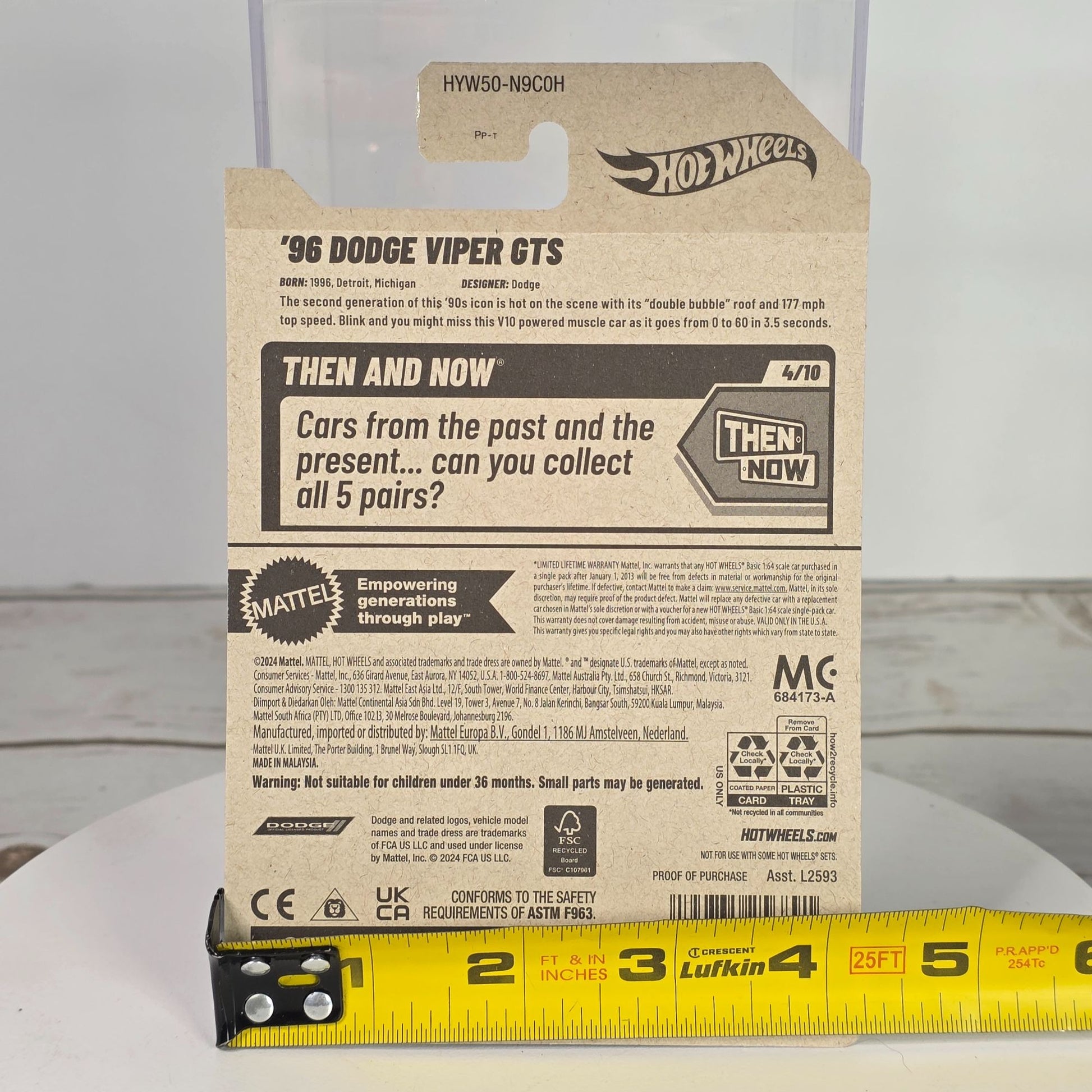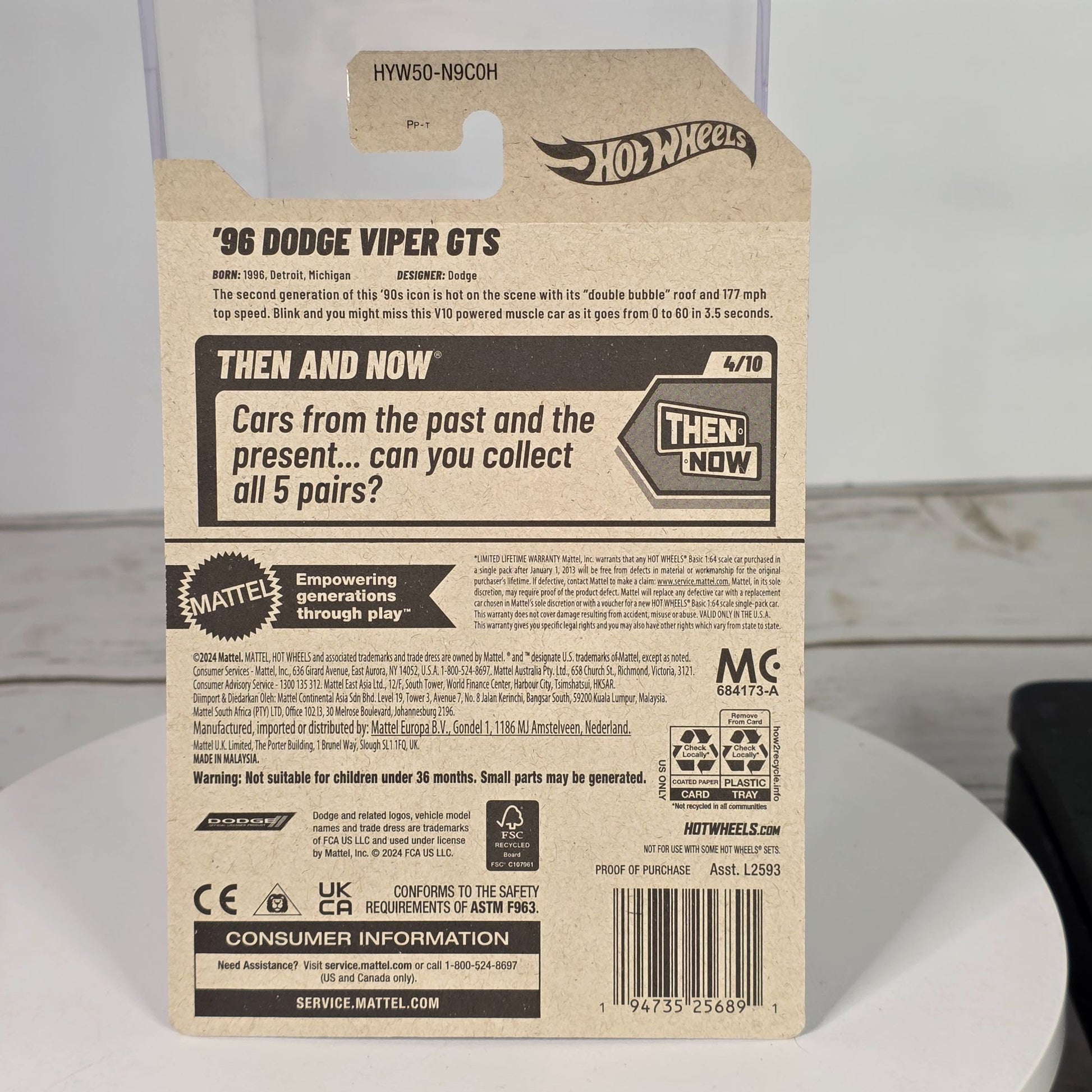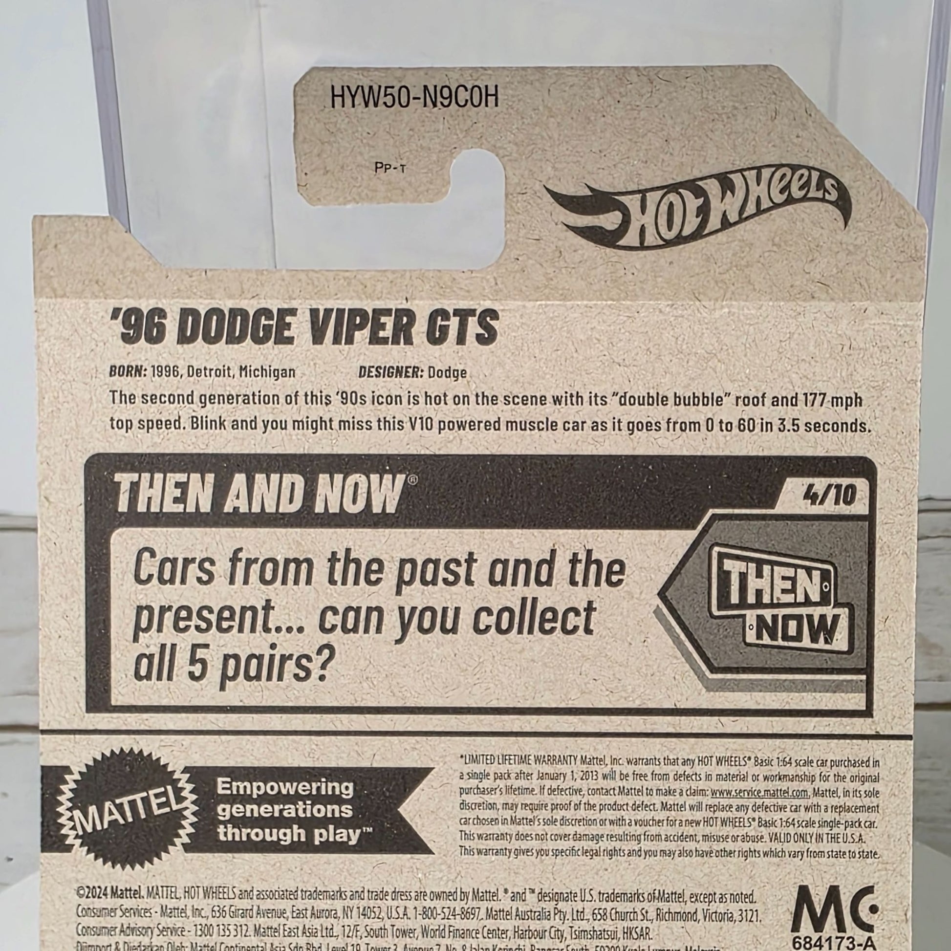 96 Dodge Viper GTS Hot Wheels Die-Cast 1:64 Scale Then & Now Series Blue & White Stripes 176/250 New For 2025 Collectible