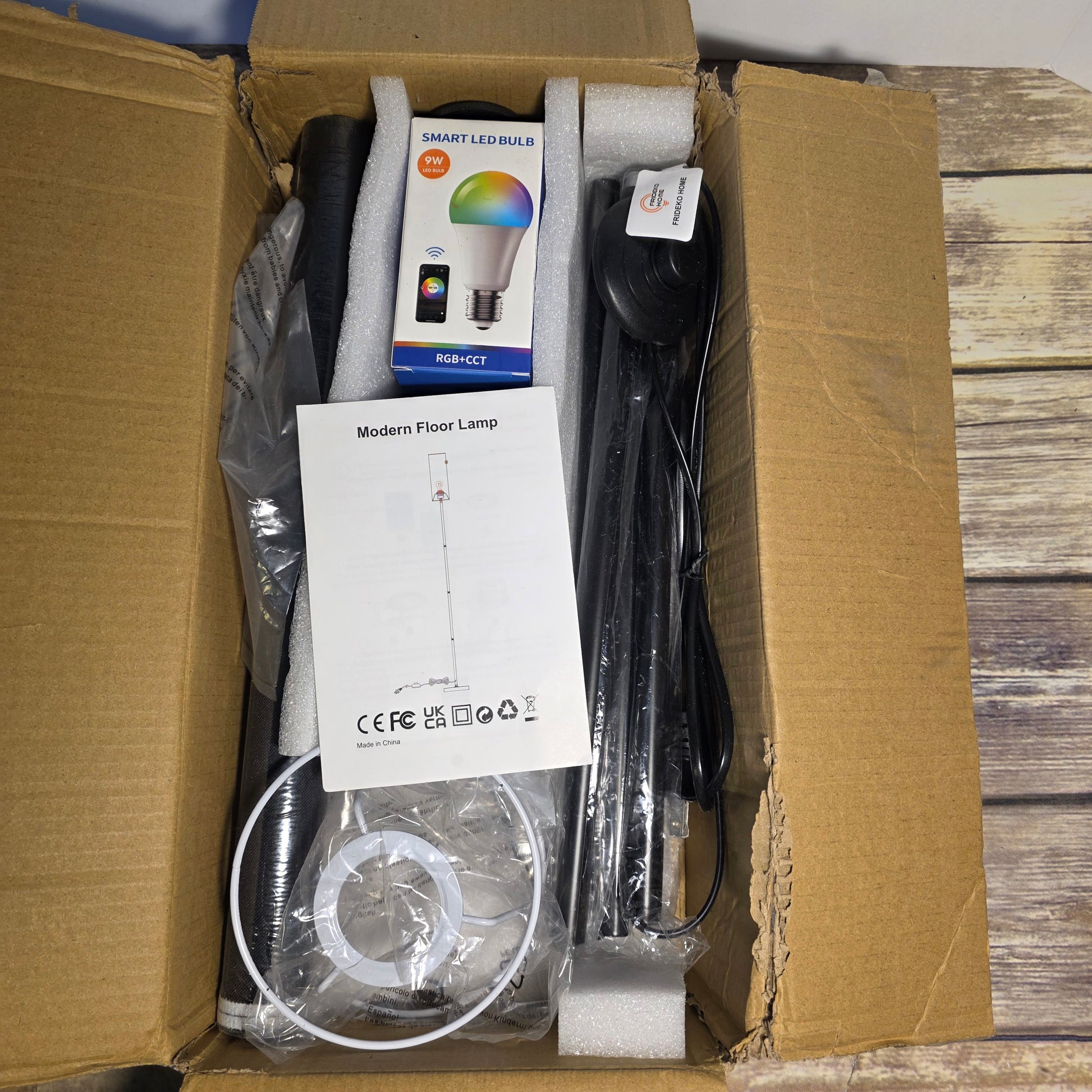 Elevate your space with Frideko's Black Floor Lamp for Bedroom. With dimmable colors and temperature, adjust it to your mood. Perfect for living rooms and offices, with a modern design and foot switch for easy use. Includes 9W RGB LED bulb for a bright and energy-efficient light.