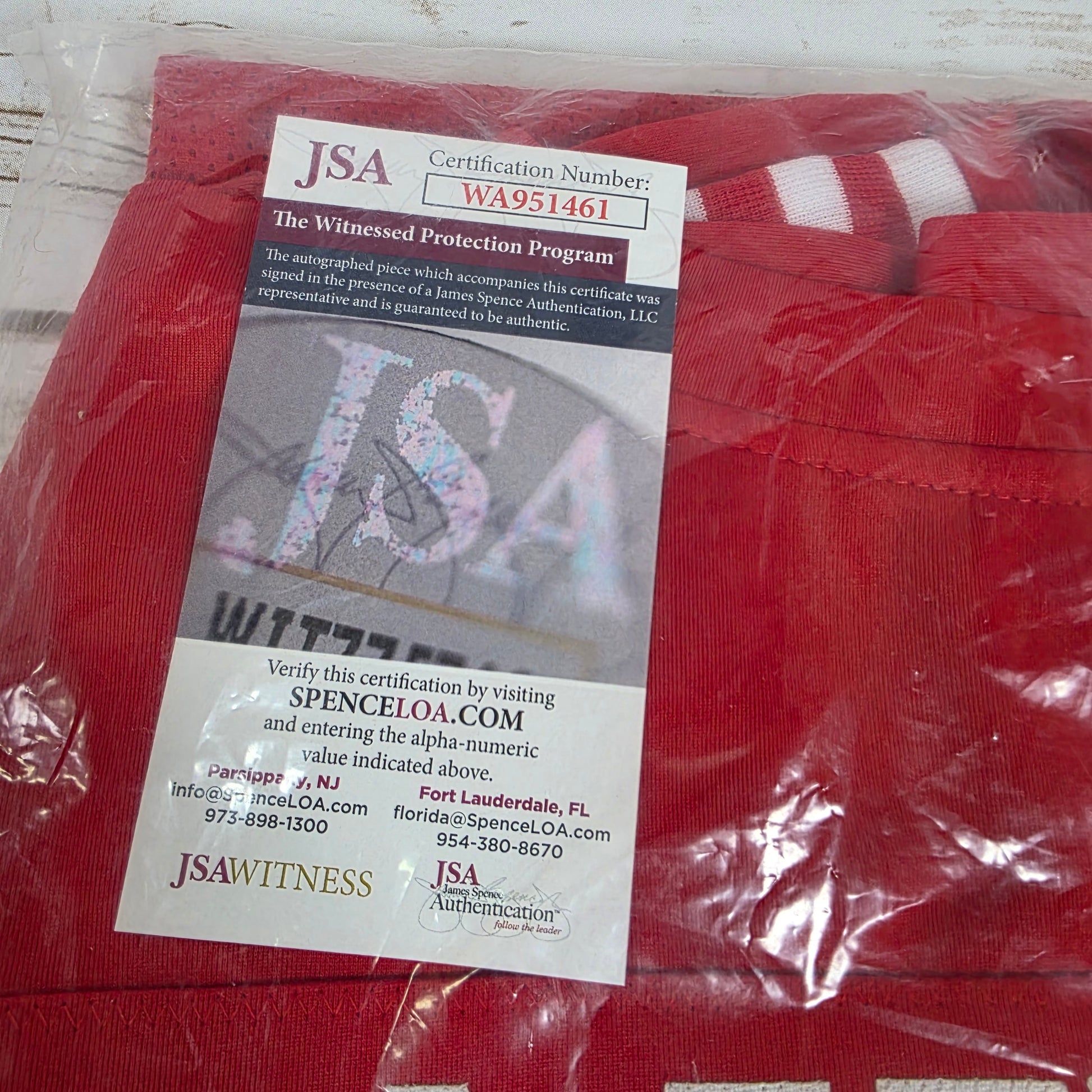 Score a touchdown with this Brandon Aiyuk signed jersey, certified by JSA! Show off your love for football (and puns) with this unique addition to your collection. Autographed by the rising star, this jersey is a must-have for any fan. Game on!