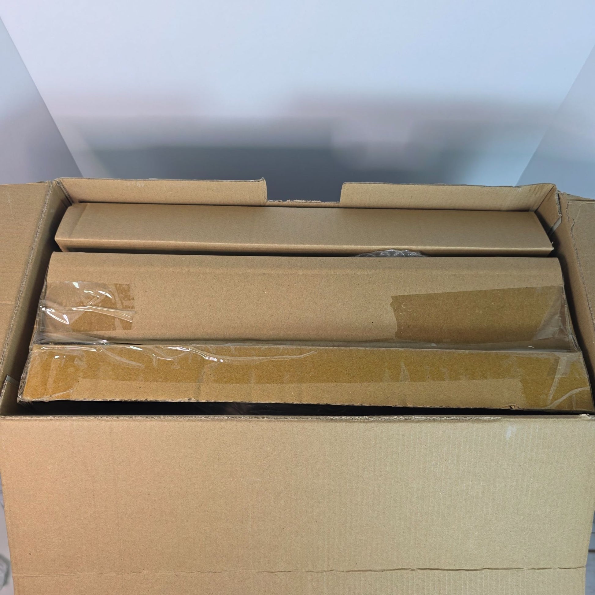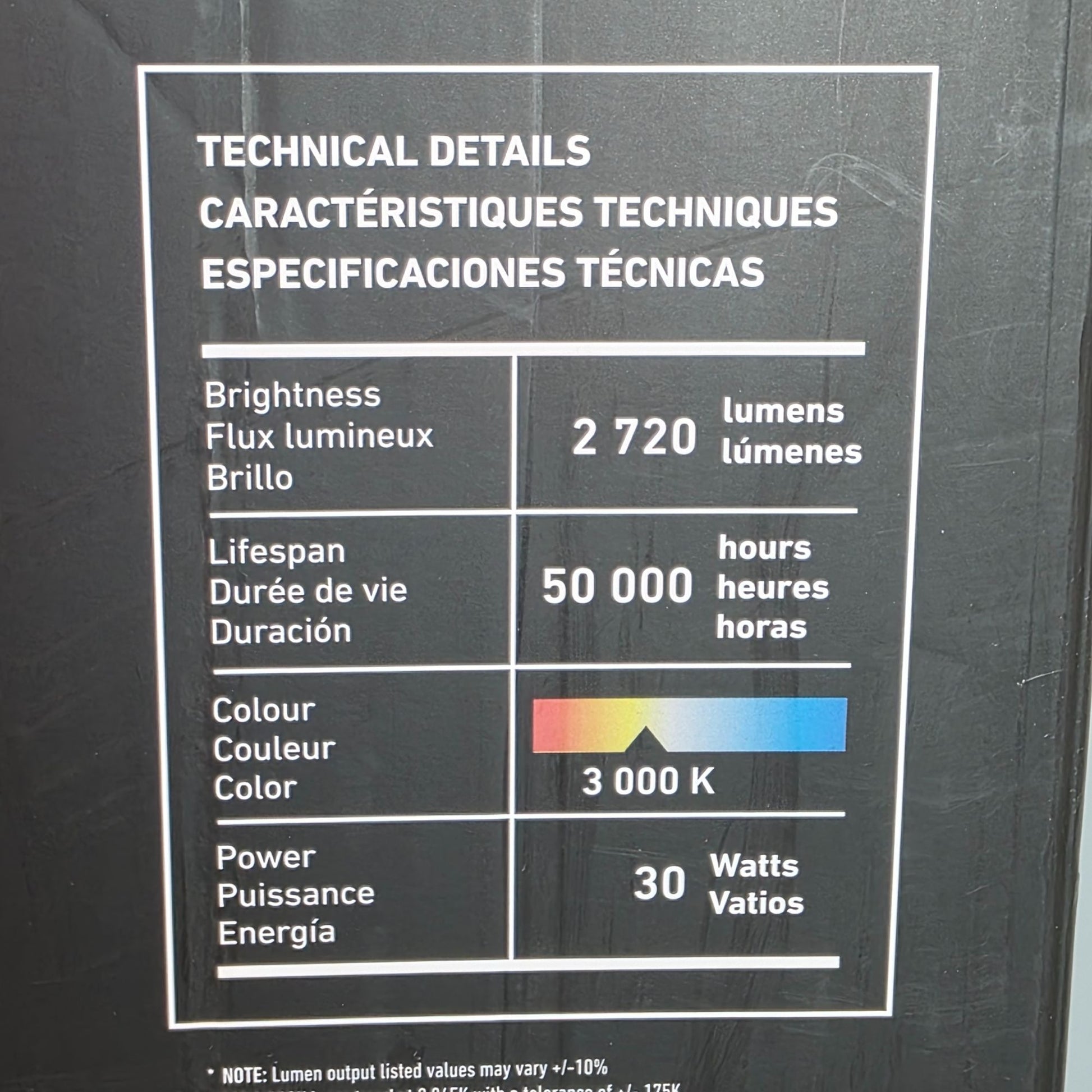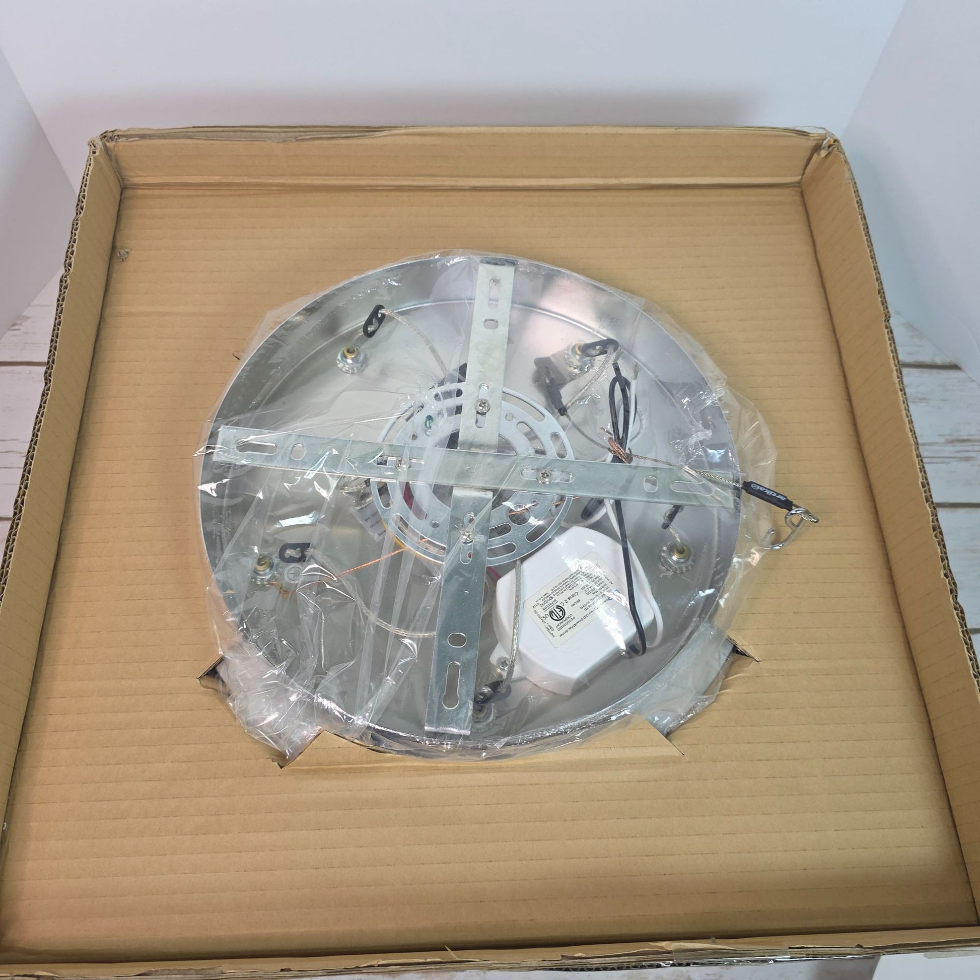 Box shows minor scuffs and edge wear; fixture remains unused and intact. Box dimensions: top to bottom = 17 inches, width = 8 inches.
