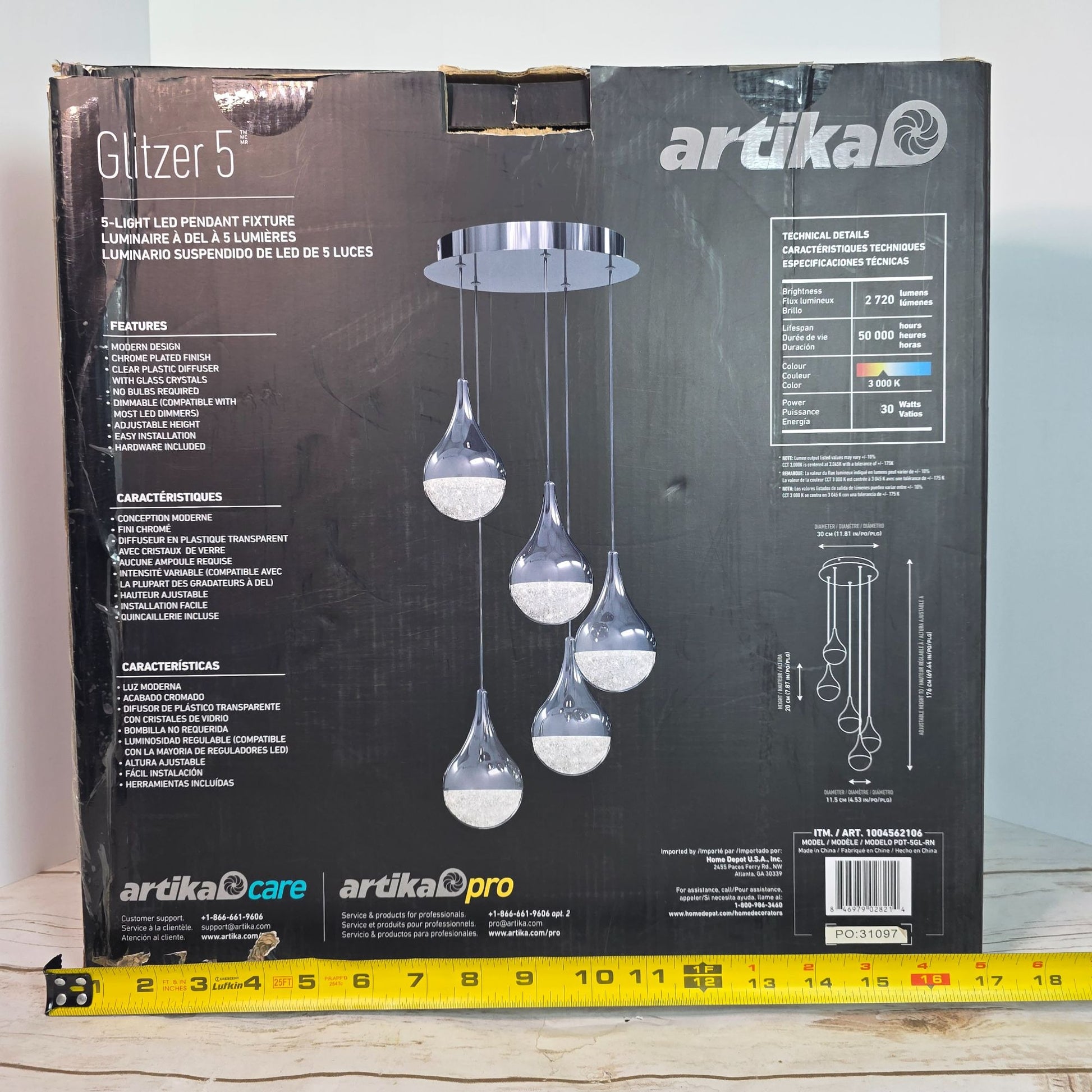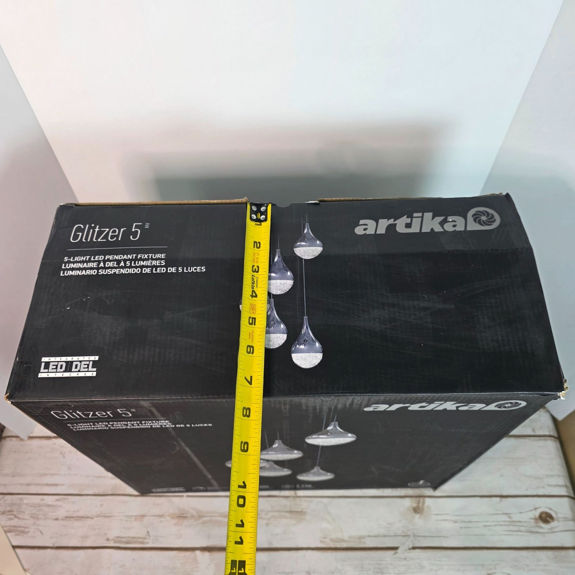 Artika Glitzer 5-Light LED Pendant Fixture With Chrome Plated Finish & Glass Crystals