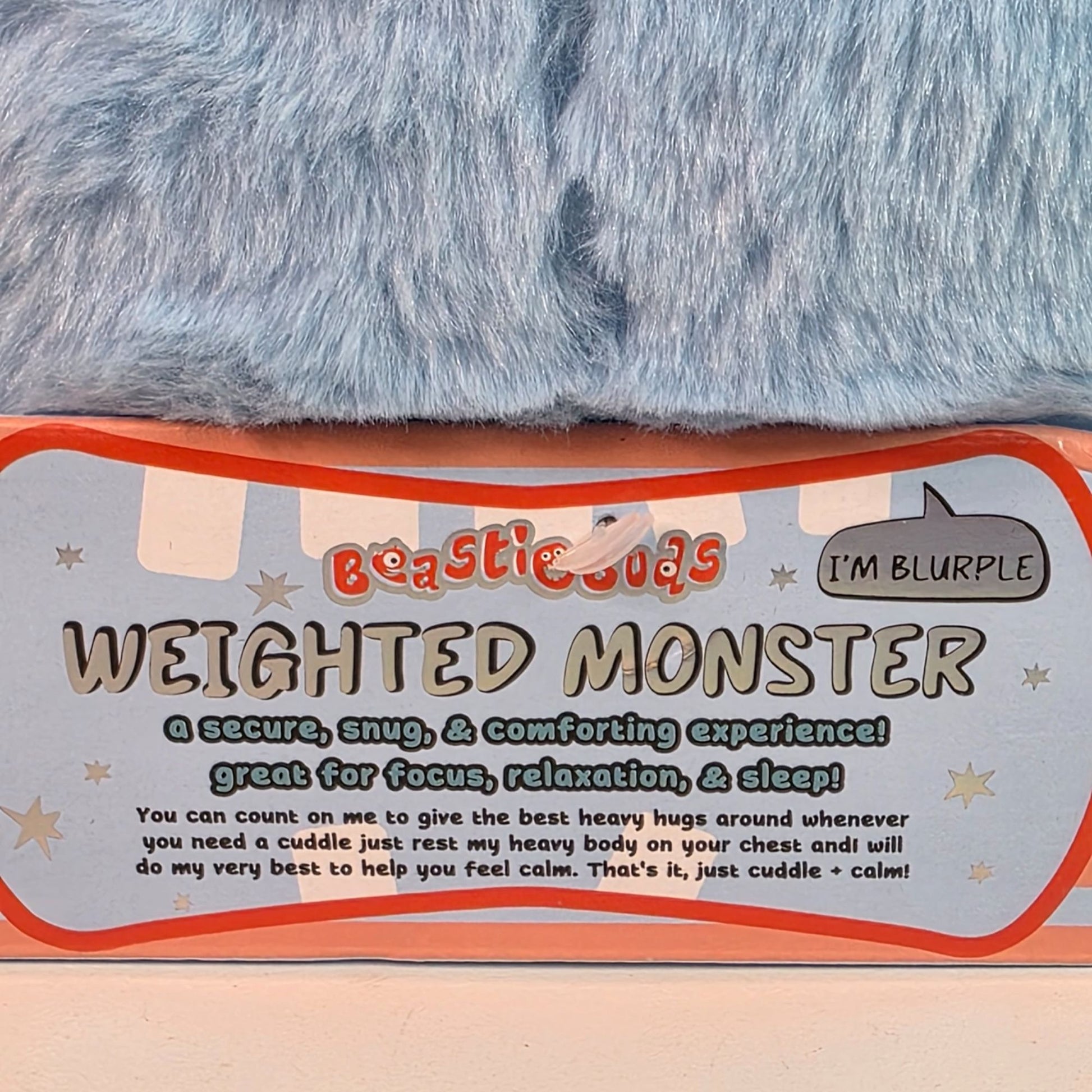 This delightful weighted plush toy named Blurple is a comforting companion for all ages. Designed as a stress-relieving aid, it provides gentle pressure to promote relaxation and sleep. Its irresistibly soft blue and red plush surface and cheerful monster design make it a whimsical yet functional addition to anyone’s self-care routine.