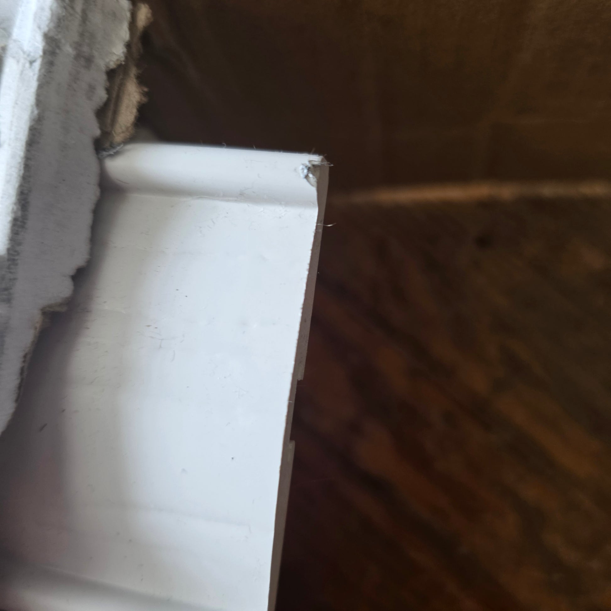 Missing brackets and hardware kit. Small scuff on the end of the front white wood panel, see photos.