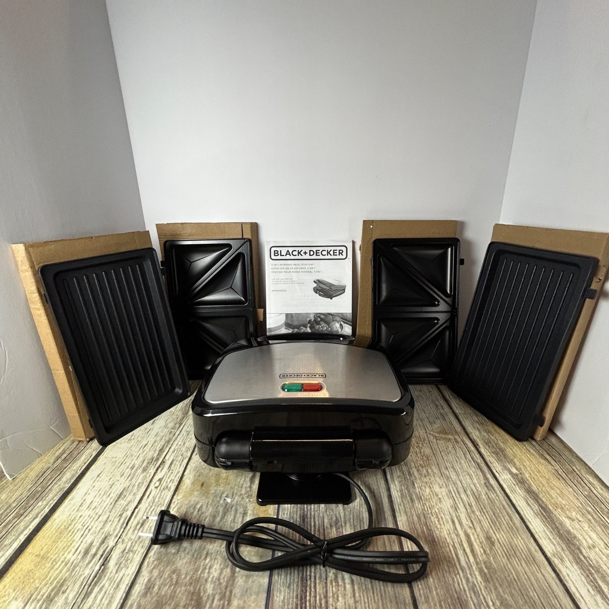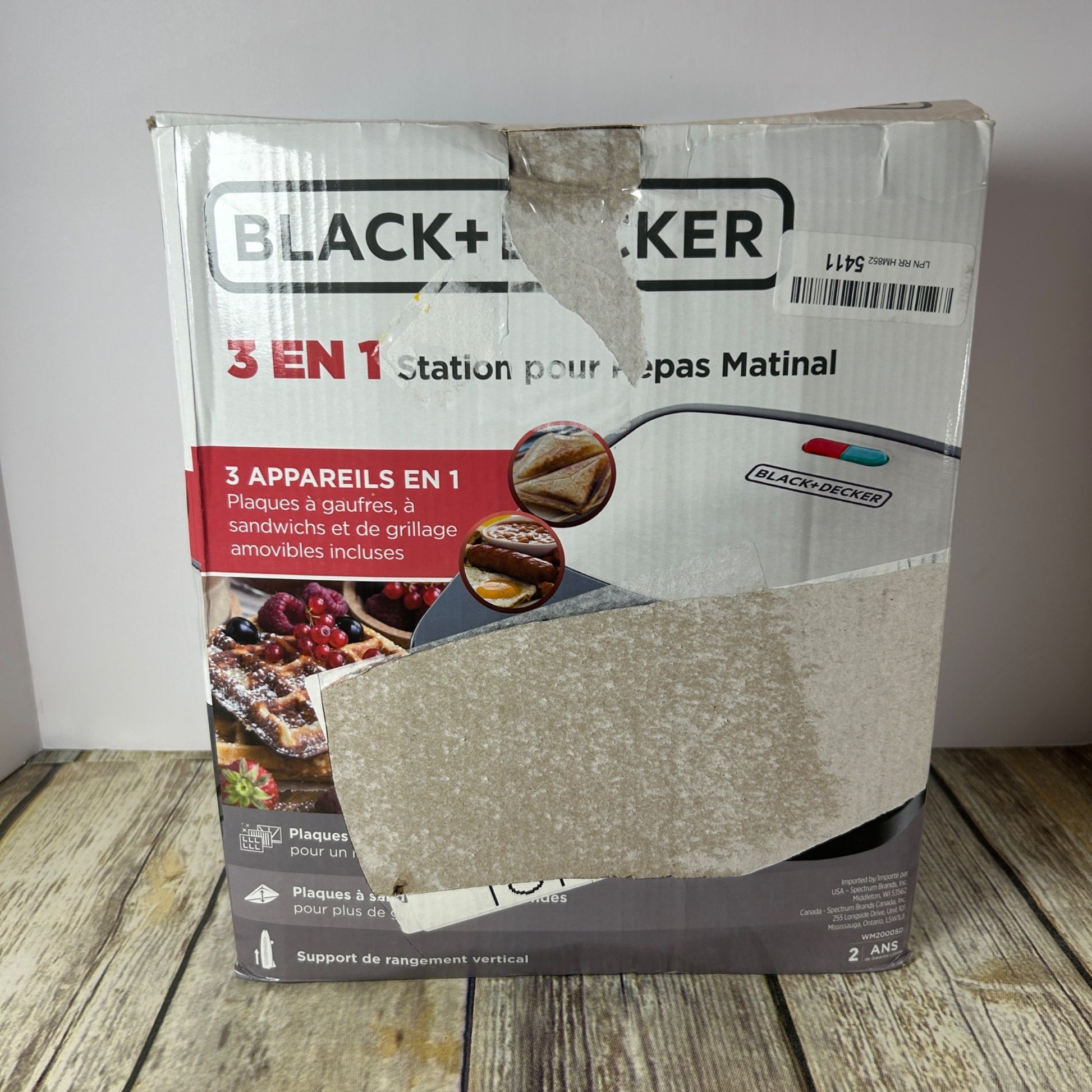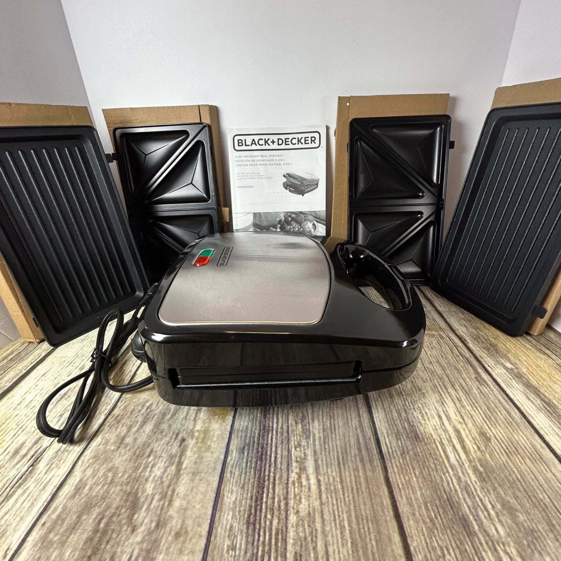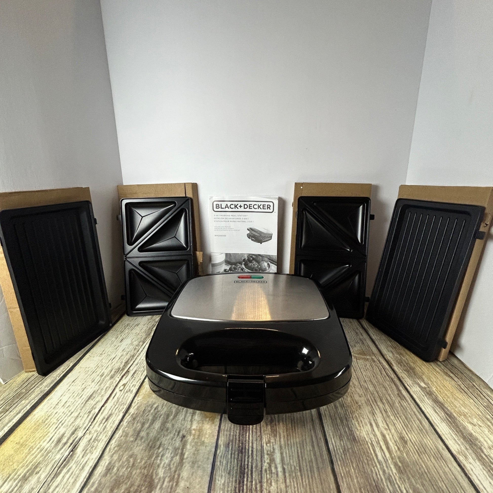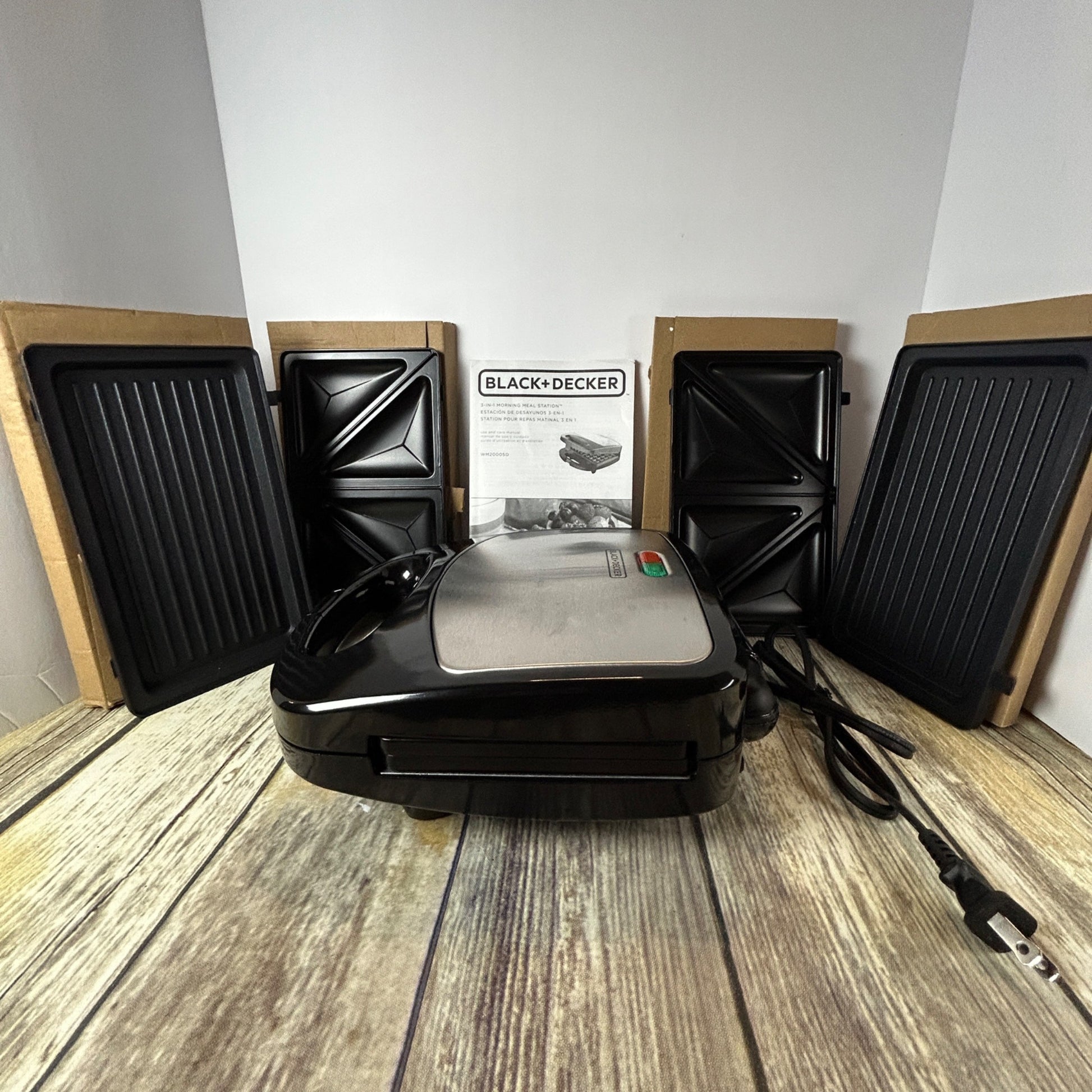 Black+Decker 3-In-1 Compact Waffle Iron Grill & Sandwich Maker With Non-Stick Removable Plates Space Saving Design