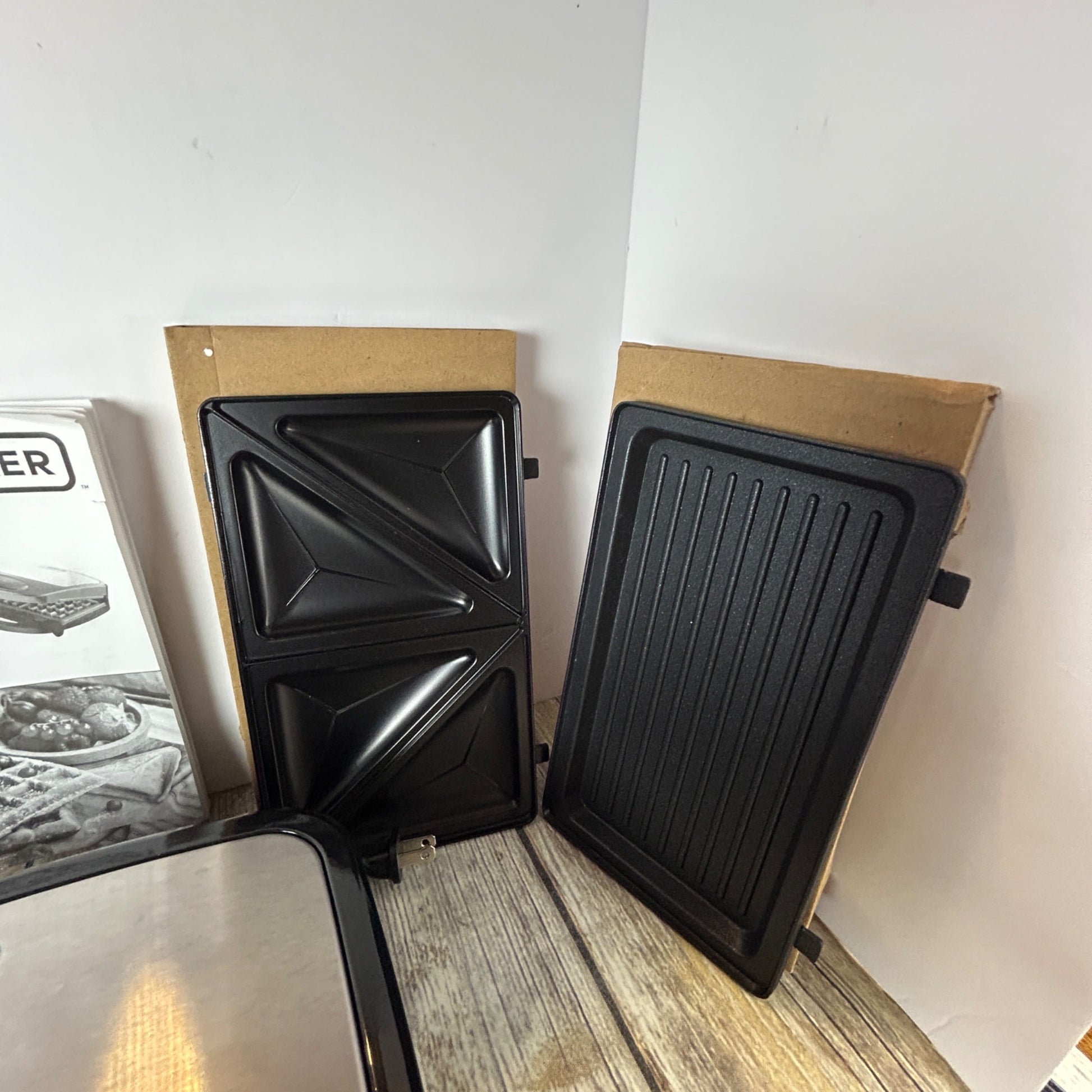 • 3-in-1 functionality: grill, sandwich, and waffle maker