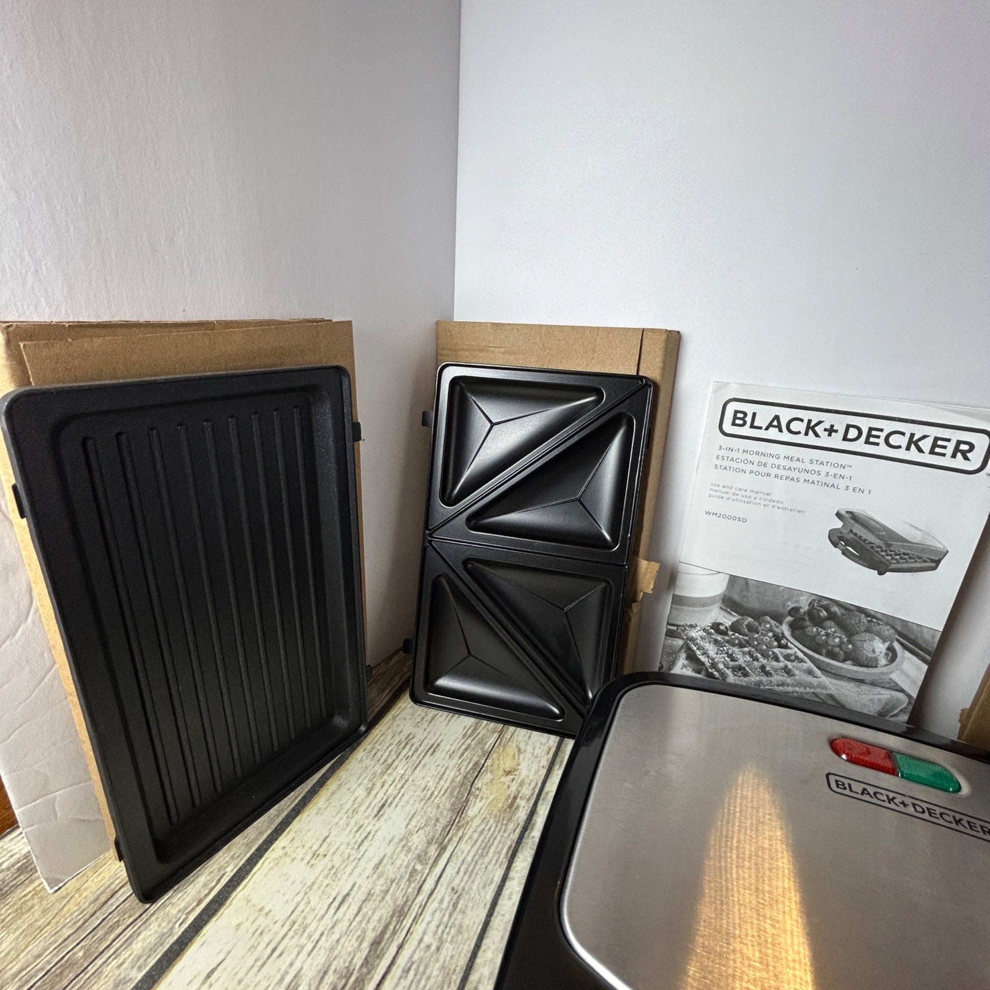 The Black+Decker 3-in-1 Waffle Iron is a versatile kitchen appliance that serves multiple functions, enhancing culinary convenience. Its compact design allows it to be a space-efficient addition to any kitchen, seamlessly transitioning between a grill, sandwich maker, and waffle iron with its removable plates. The non-stick surface ensures easy cleaning and maintenance.