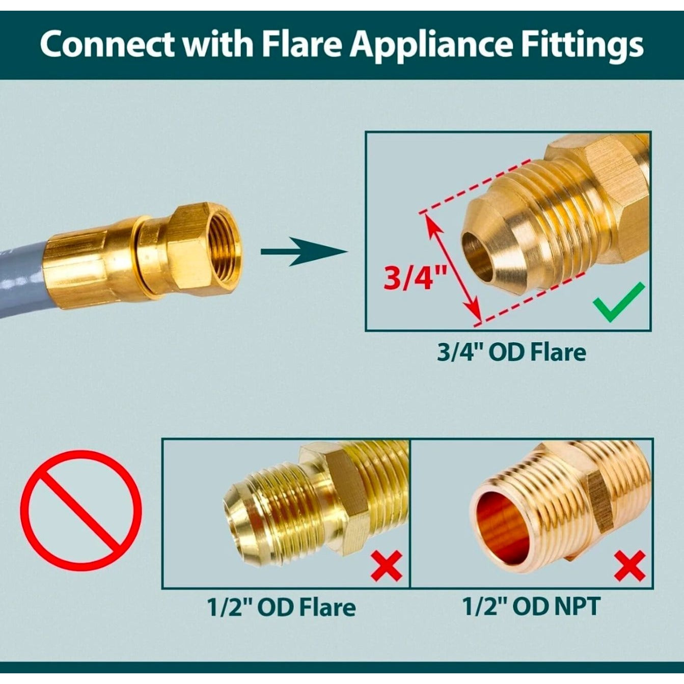 The Burntouch 10-foot natural gas hose offers a seamless connection for outdoor appliances like Weber and Char-Broil grills. Its robust design ensures durability and weather resistance, making it ideal for long-term outdoor use. Featuring a 1/2" inner diameter, this hose facilitates efficient gas flow, while the quick-disconnect and female flare fittings ensure a secure and easy attachment to compatible appliances. Designed to withstand various weather conditions, it delivers reliable performance throughout the seasons.