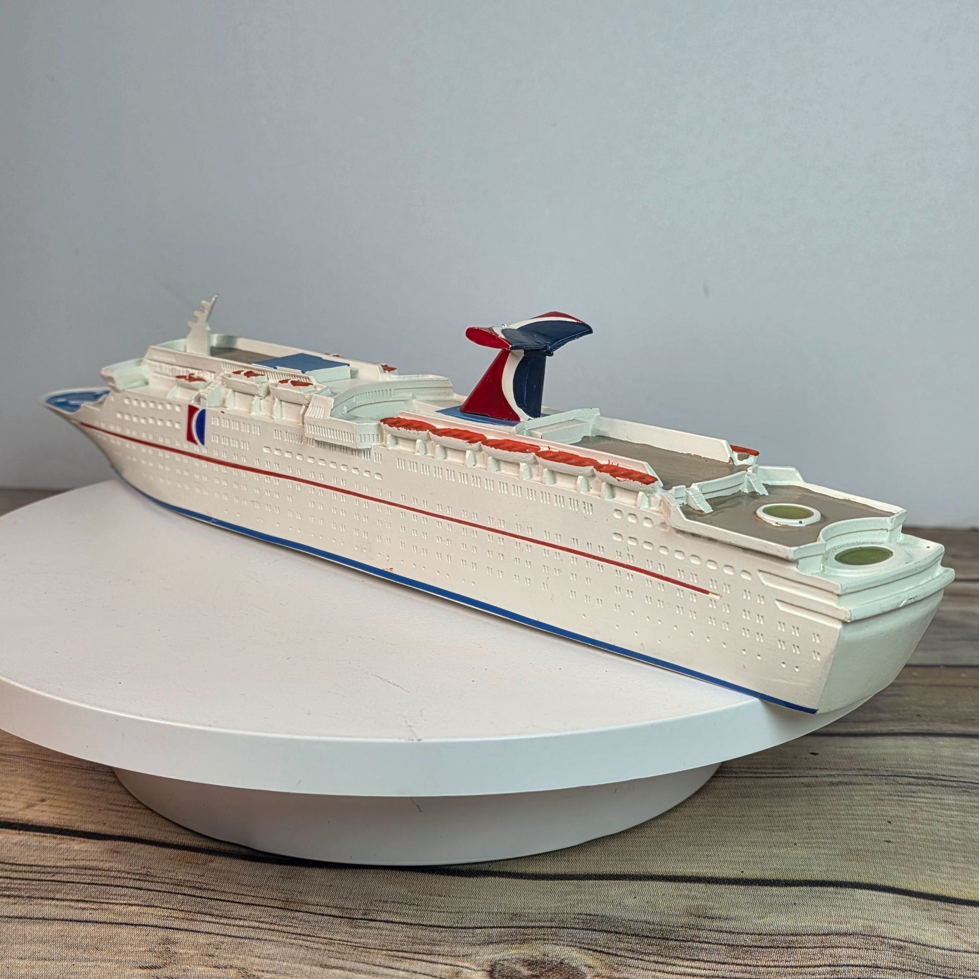 This 1/1250 scale model of the Carnival Celebration Cruise Ship is a delightful piece for collectors and enthusiasts. It captures the grandeur of the ship with intricate details, from the iconic red and blue funnel to the lifeboats neatly lined up along the deck. The model reflects the elegance and sophistication of the Carnival Celebration, making it a noteworthy addition to any maritime collection.