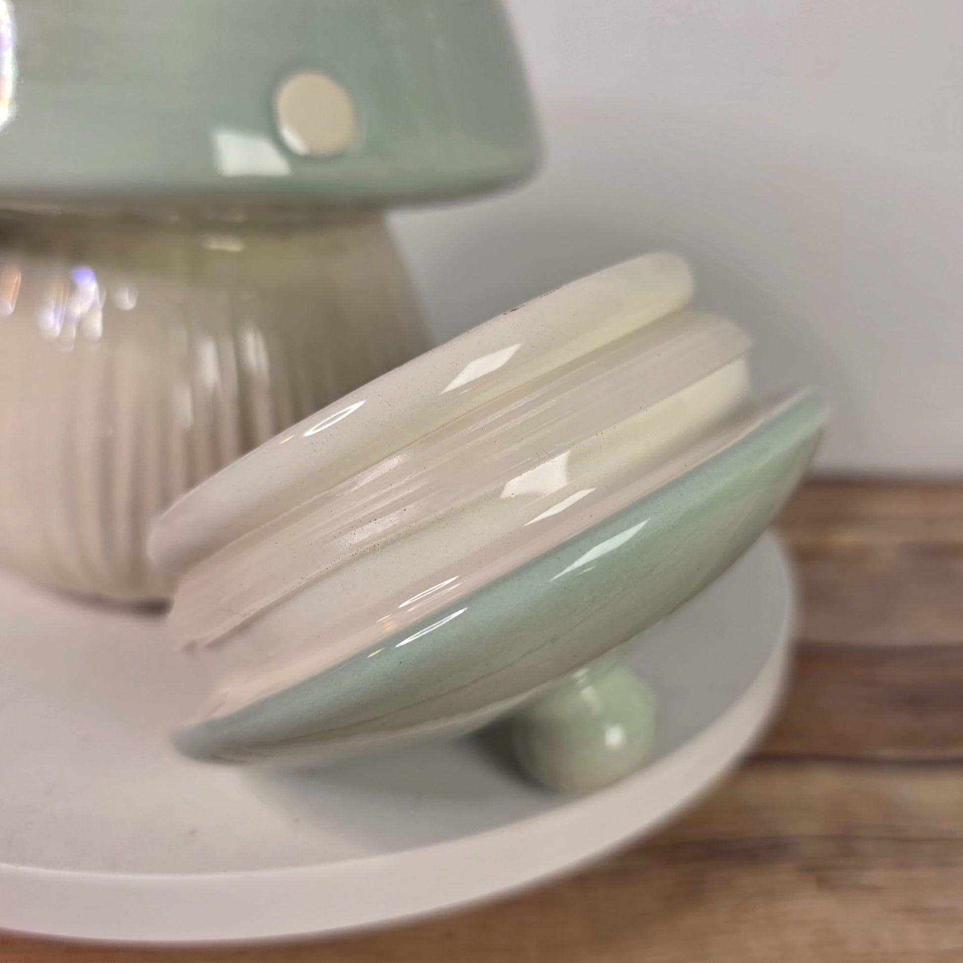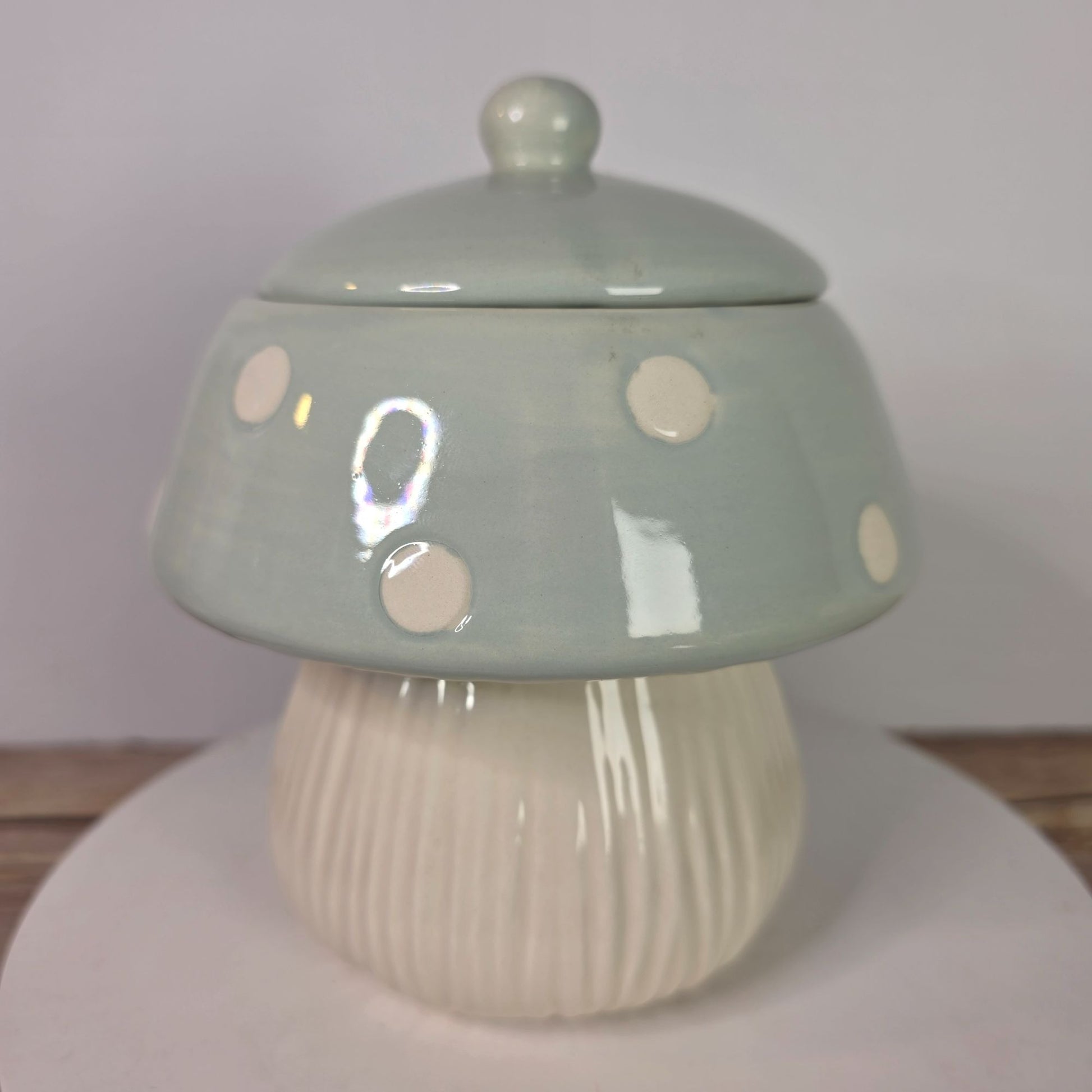 Ceramic Mushroom-Shaped Canister 6.5" Green & White