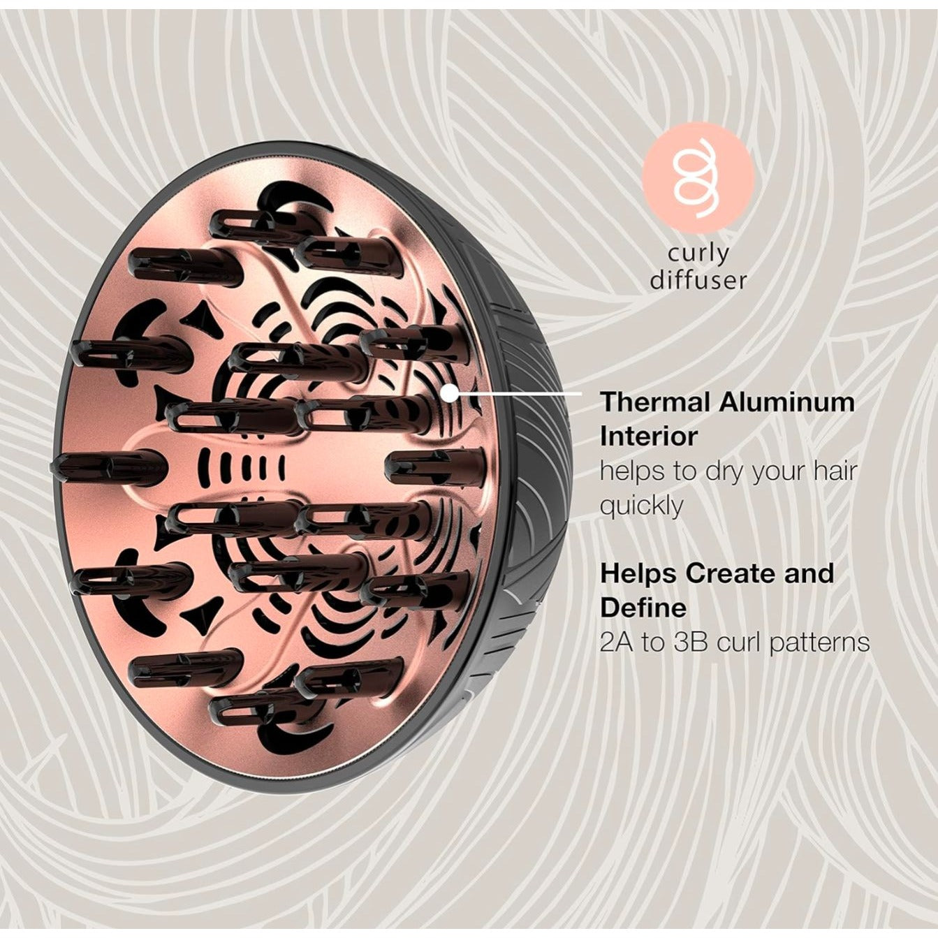 This innovative hair diffuser by Conair, a part of The Curl Collective, is designed to enhance and define curly hair patterns ranging from 2A to 3B. Its thermal aluminum interior ensures efficient heat distribution, aiding in drying hair without compromising its natural texture. This diffuser works exclusively with The Curl Collective Hair Dryer.