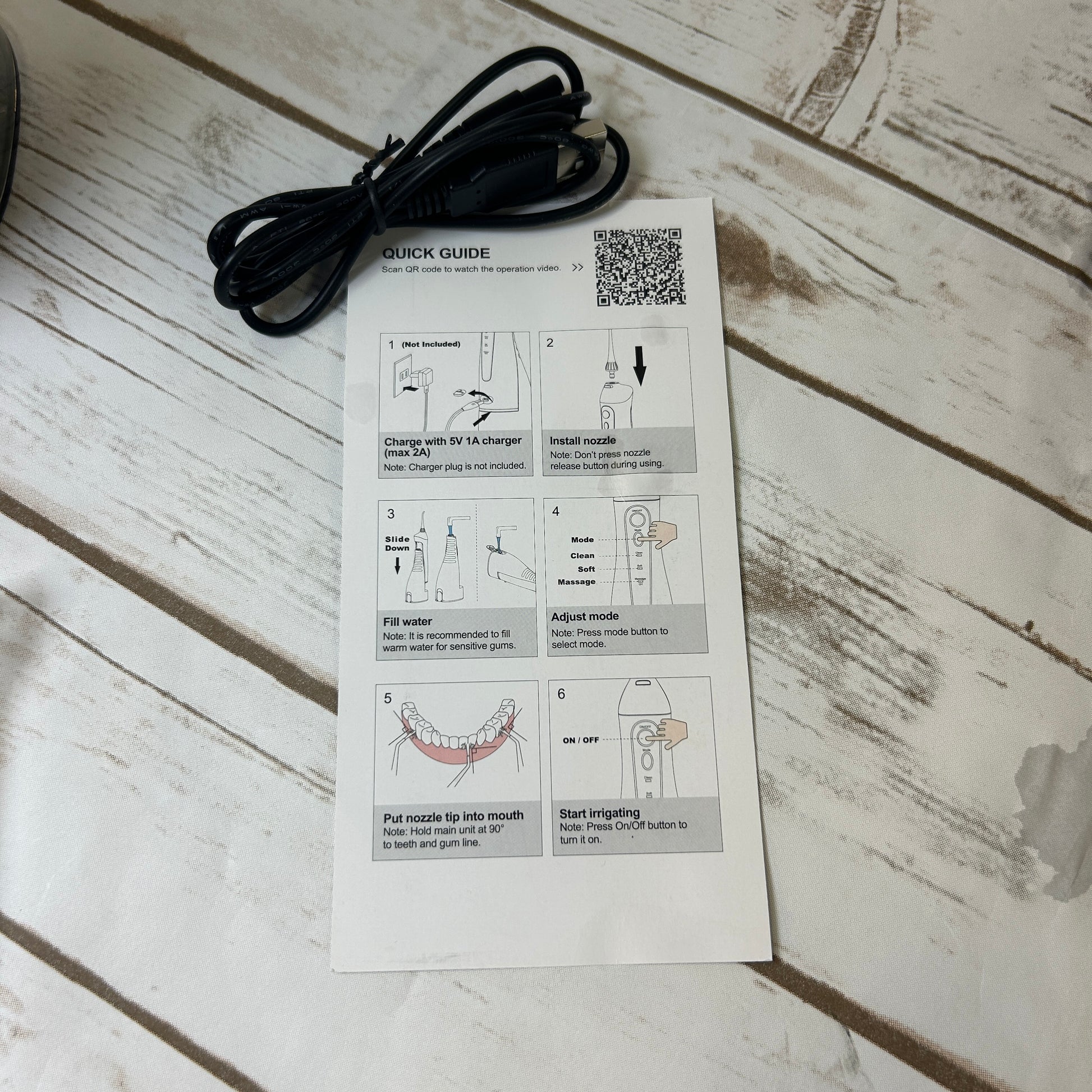 Improve your oral hygiene with COSLUS Cordless Water Dental Flosser. This portable teeth pick and rechargeable tooth irrigator uses 300ML of water to effectively clean and remove plaque and debris from your teeth. Convenient and easy to use, it's the perfect tool for maintaining a healthy smile. Available in black.