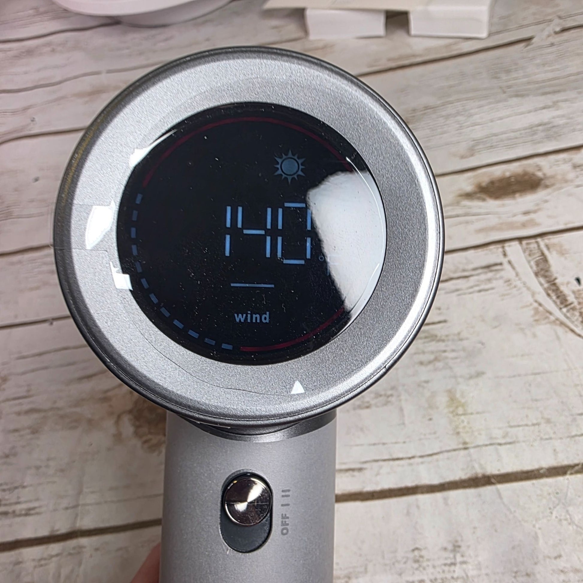 This high-speed hair dryer combines cutting-edge technology with sleek design, featuring a digital display and multiple settings for precision styling. Its lightweight construction and ergonomic handle ensure comfort during use. The accompanying attachments offer versatility, making it suitable for various hair types and styling preferences. A reliable tool for daily grooming.