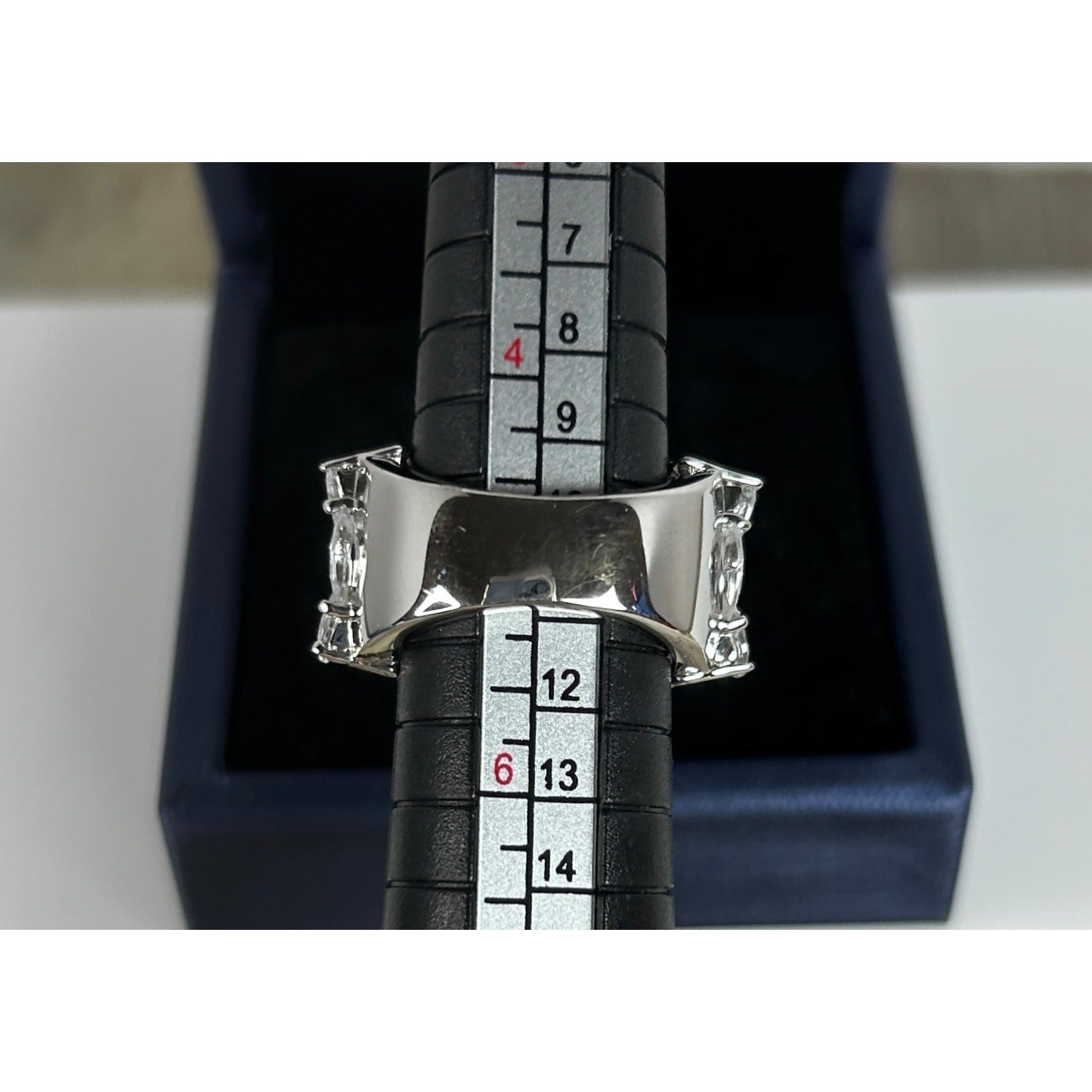 This striking ring is a true testament to the artistry of jewelry making. Its wide band is crafted from sterling silver, offering both durability and timeless elegance. Adorned with an array of teardrop and marquise-cut cubic zirconia stones, this piece captures light brilliantly, providing a dazzling display. The intricate setting allows each stone to shine, making this ring a captivating accessory for those who appreciate sophisticated design. Its opulent sparkle and quality craftsmanship ensure it stands out in any jewelry collection.