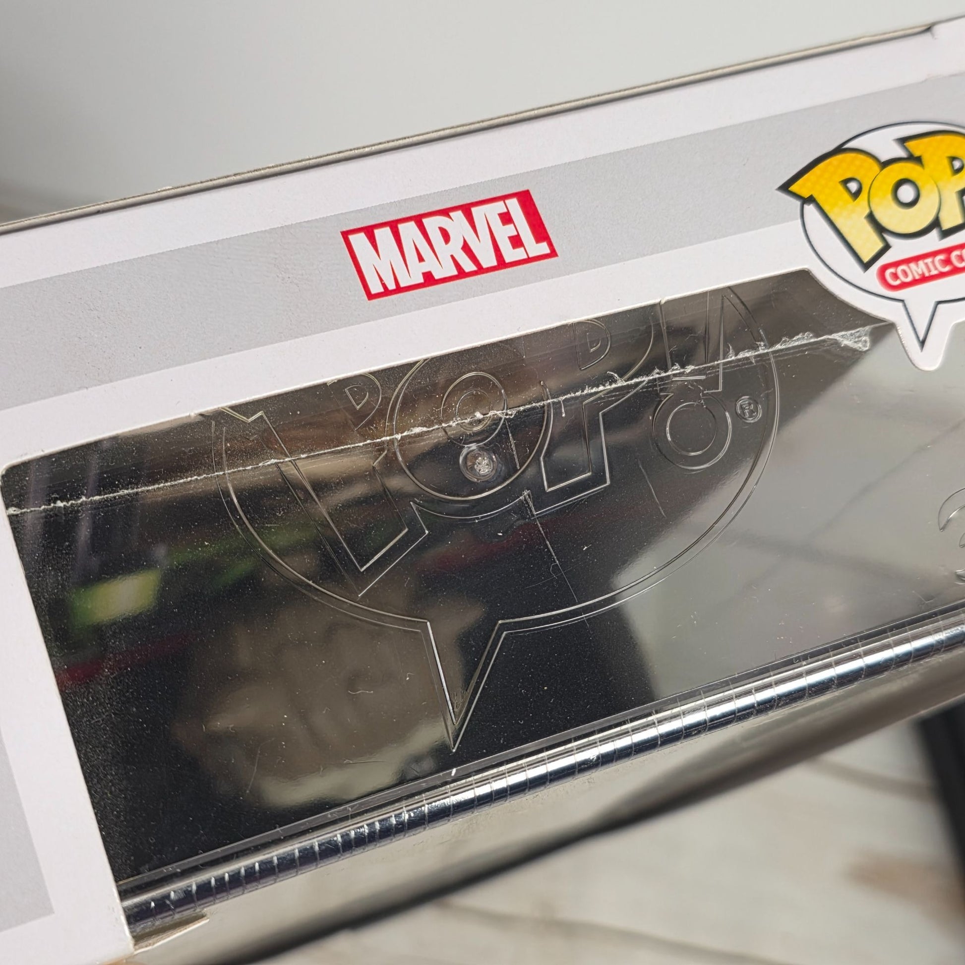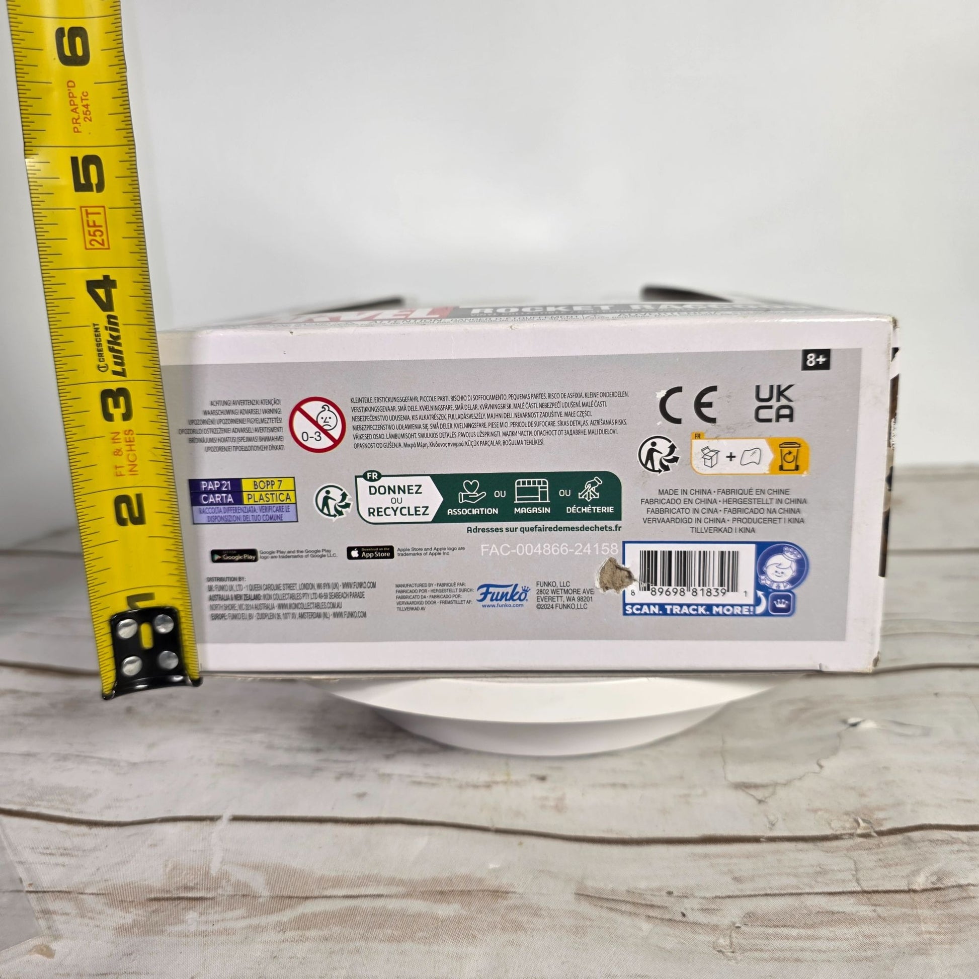 This exclusive Funko Pop features Rocket Raccoon from the iconic "Guardians of the Galaxy" series. A must-have for Marvel enthusiasts, this collectible combines detailed artistry and the beloved character's unique charm. Presented in a striking box with comic-inspired graphics, it is ideal for display or as a prized addition to any collection.