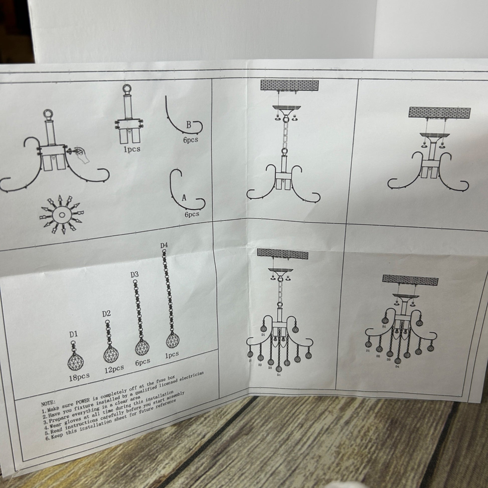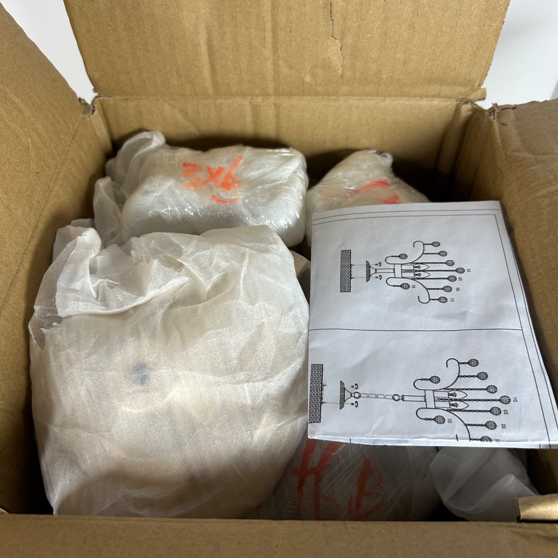 Gold Crystal Chandelier Light Fixture Kit With Hanging Chain & Instructions For Home Decor Assembly