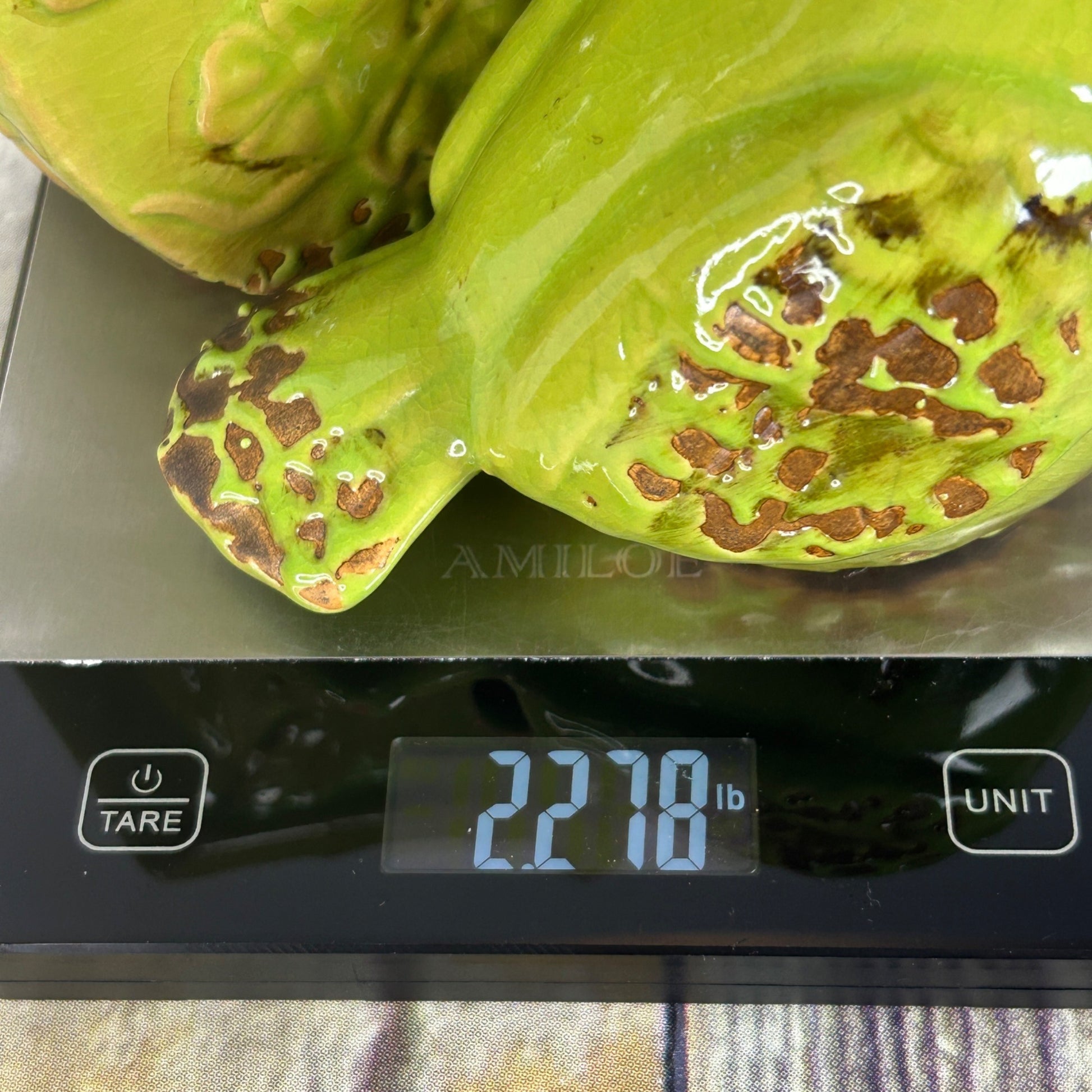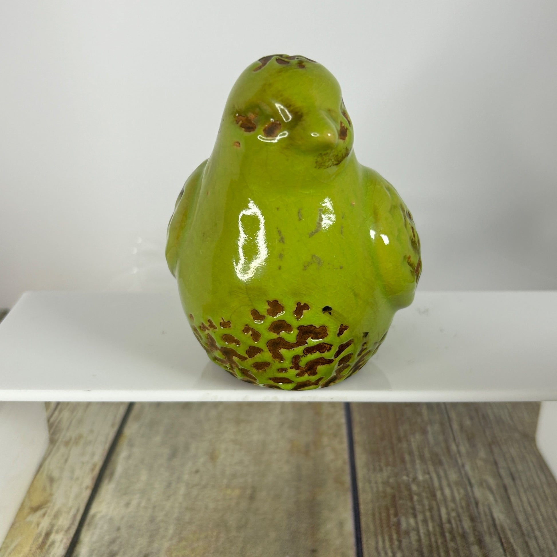 This delightful ceramic birdhouse and figurine set exudes a charming rustic elegance. The birdhouse, adorned with a floral motif, features a rope hanger for easy display, while the coordinating bird figurine adds a quaint touch to any space. The vibrant green glaze showcases slight variations and intricate details that evoke the essence of nature. Ideal for collectors and nature enthusiasts alike, this set brings an enchanting woodland vibe indoors, serving as a reminder of serene gardens and cheerful chirps. A lovely addition to decorative displays, capturing the spirit of outdoor beauty.