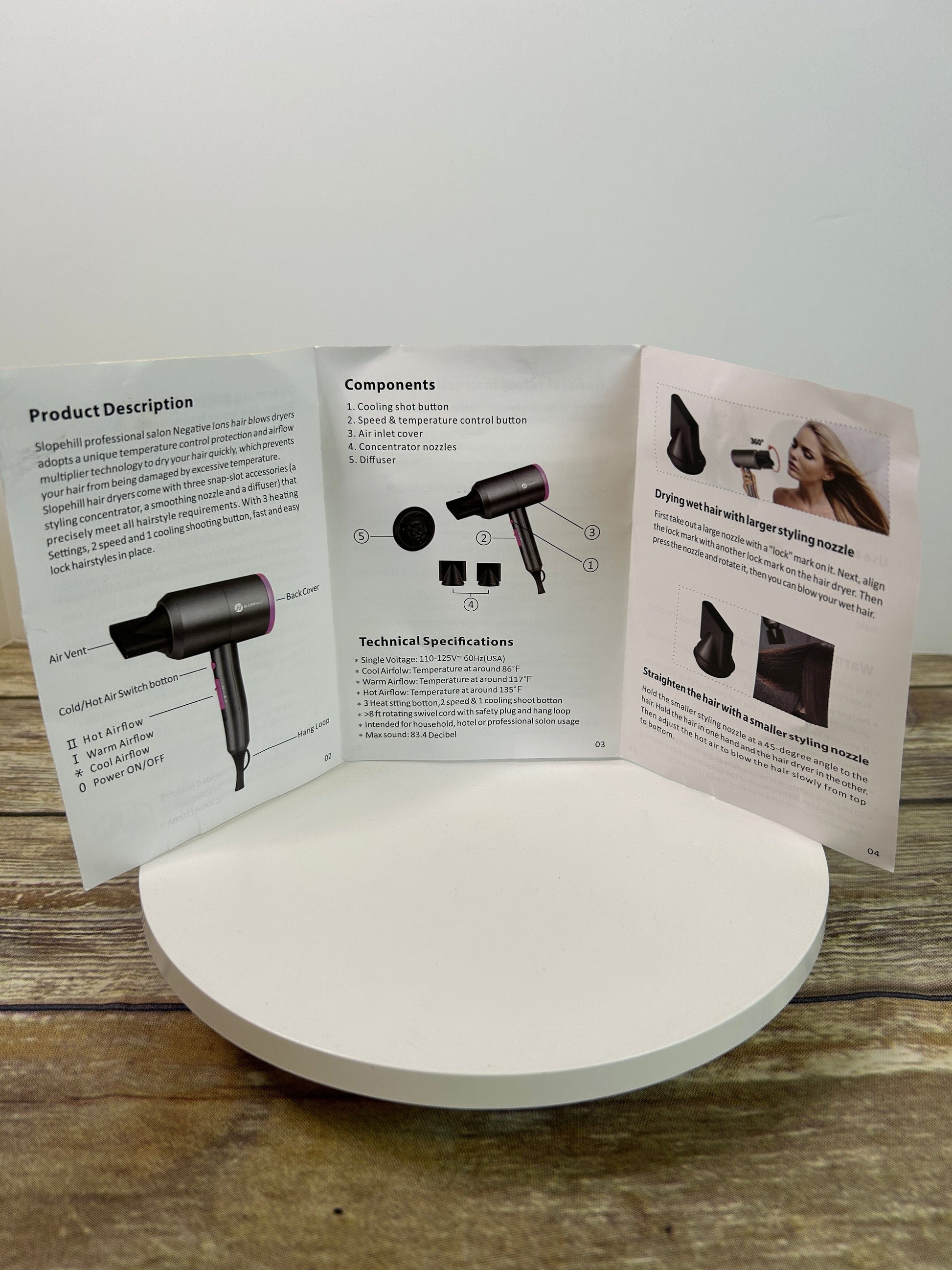 Efficiently dry and style your hair with the Slopehill Hair Dryer. With its 1800W power and professional ionic technology, this hairdryer provides fast and safe hair care. Say hello to beautiful and healthy hair without spending too much time or damaging your locks. Upgrade your hair care routine today.