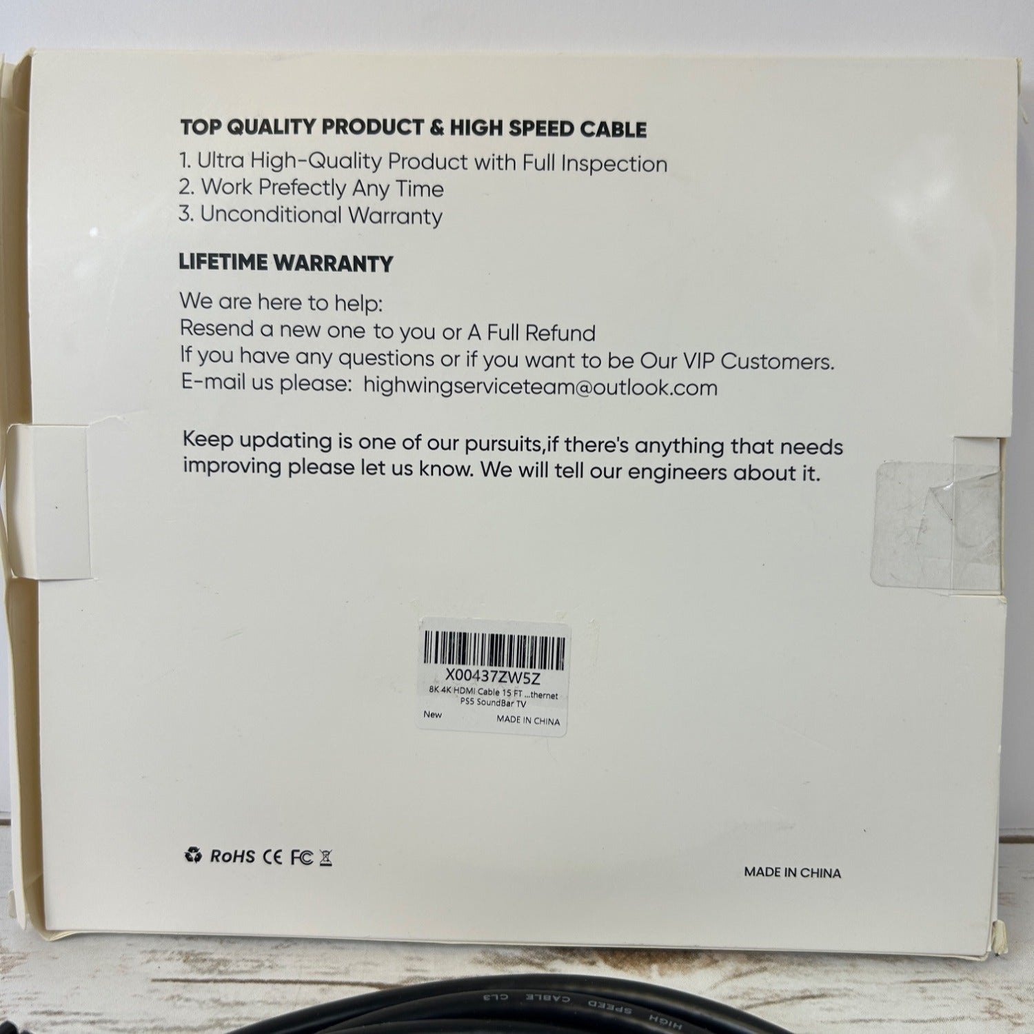Highwings 8K HDMI Cable 15FT High Speed For Gaming & Streaming With Box