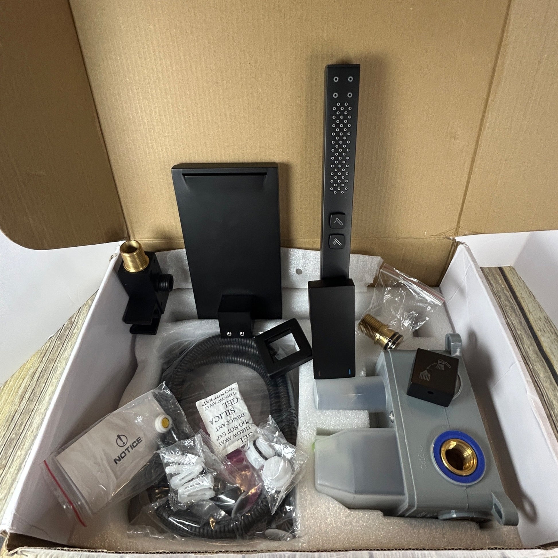 Hoimpro Wall Mount Bathtub Faucet Set With Waterfall Tub Spout & Handheld Sprayer Matte Black