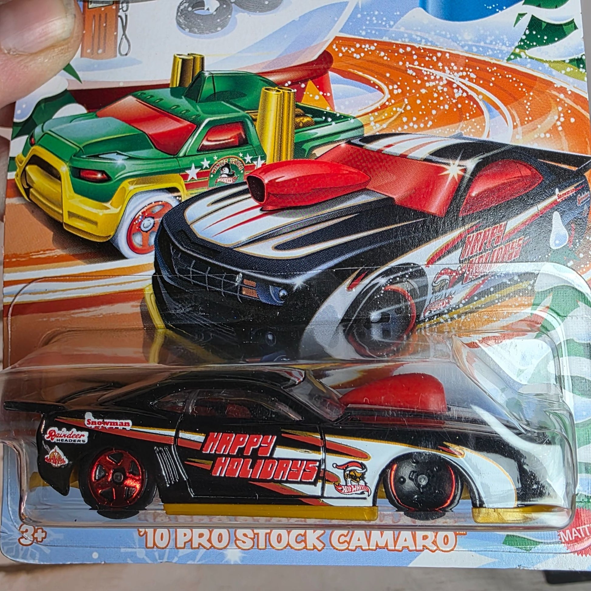Hot Wheels 10 Pro Stock Camaro Die-Cast Car Christmas Edition 3/5 Sealed Card W3099