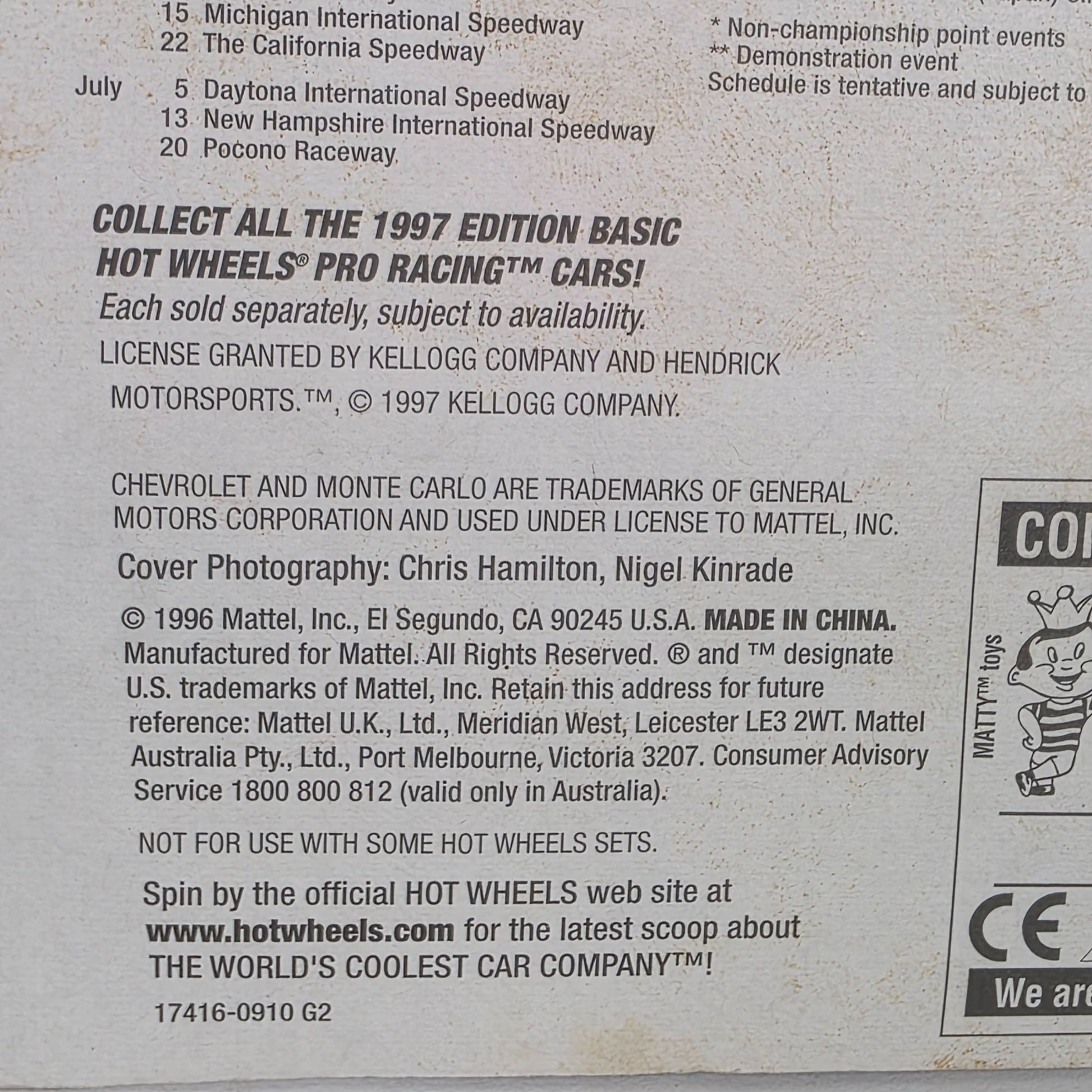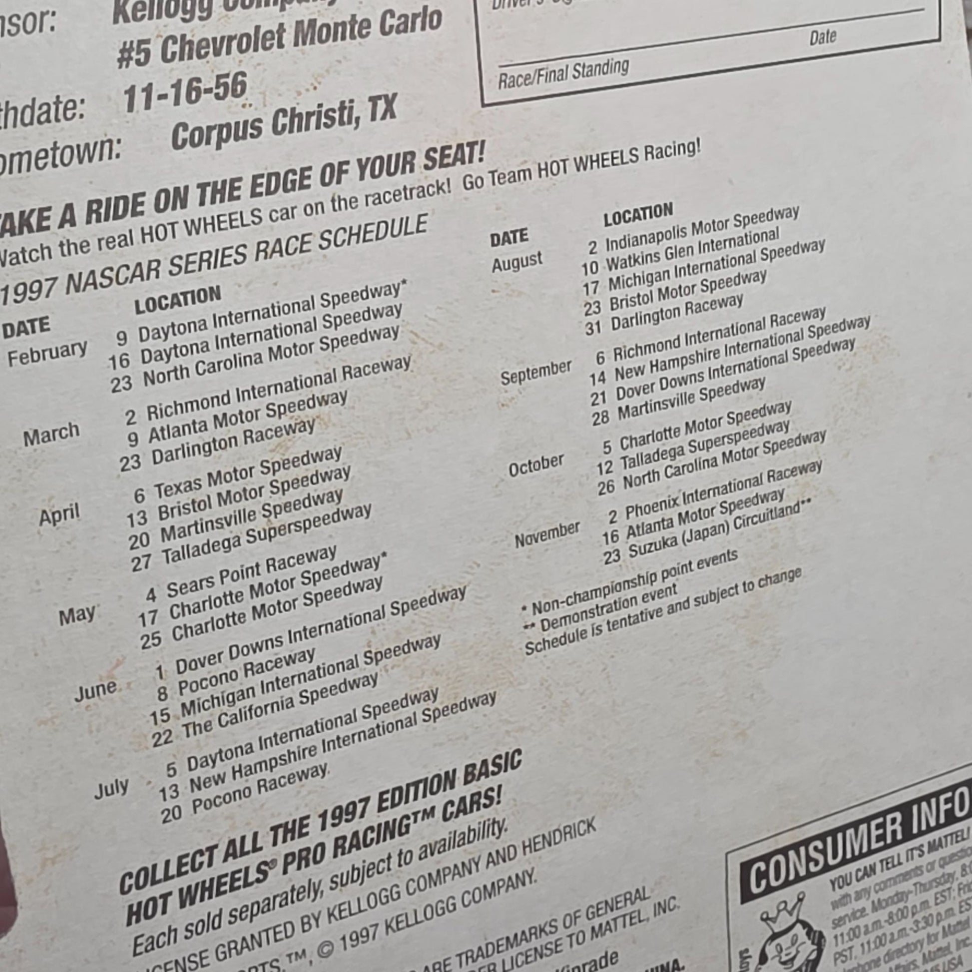 The 1997 edition Hot Wheels Team Pro Racing die-cast car celebrates the racing prowess of Terry Labonte, a renowned figure in motorsports history. This collectible is emblazoned with Kellogg's iconic branding, capturing the vibrant spirit of the racing circuit. Crafted with meticulous attention to detail, it's a splendid piece for enthusiasts and collectors alike, reflecting both speed and heritage.