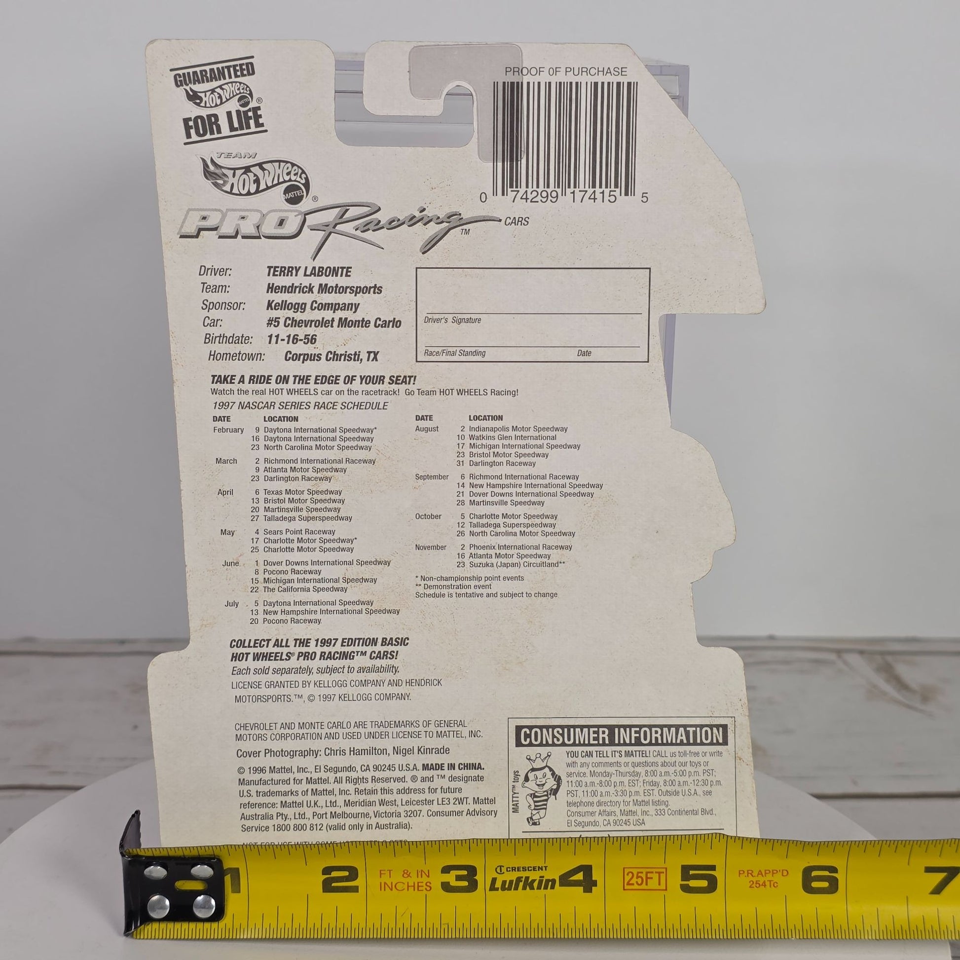 Hot Wheels 1997 Edition Team Pro Racing Die-Cast Terry Labonte Car