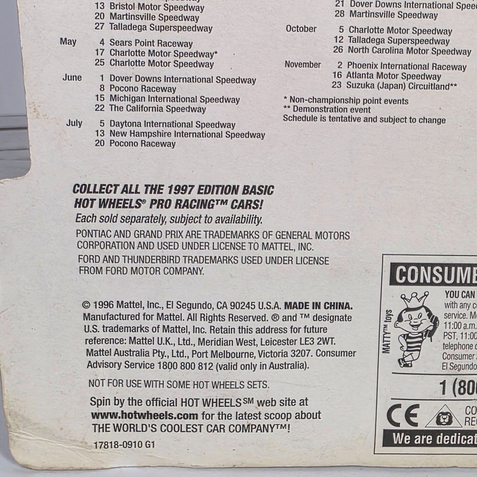 This meticulously crafted Hot Wheels die-cast car from the 1997 Pro Racing series is a splendid addition to any collector's trove. Modeled after John Andretti's iconic RCA-sponsored car, it captures the essence of speed and performance. With its vivid detailing and nostalgic design, it stands as a testament to a storied racing legacy.