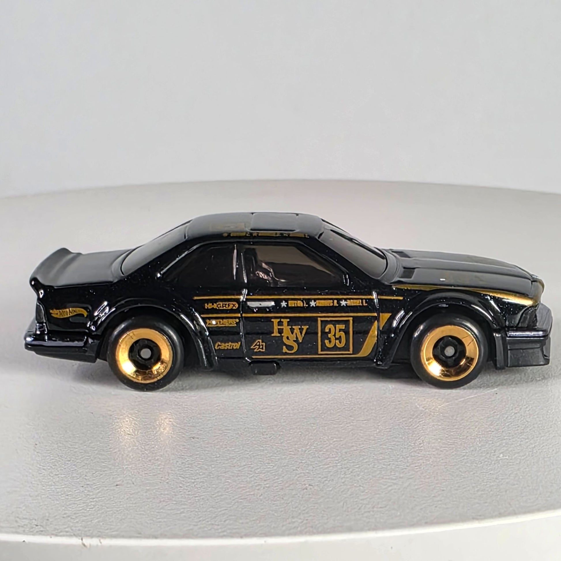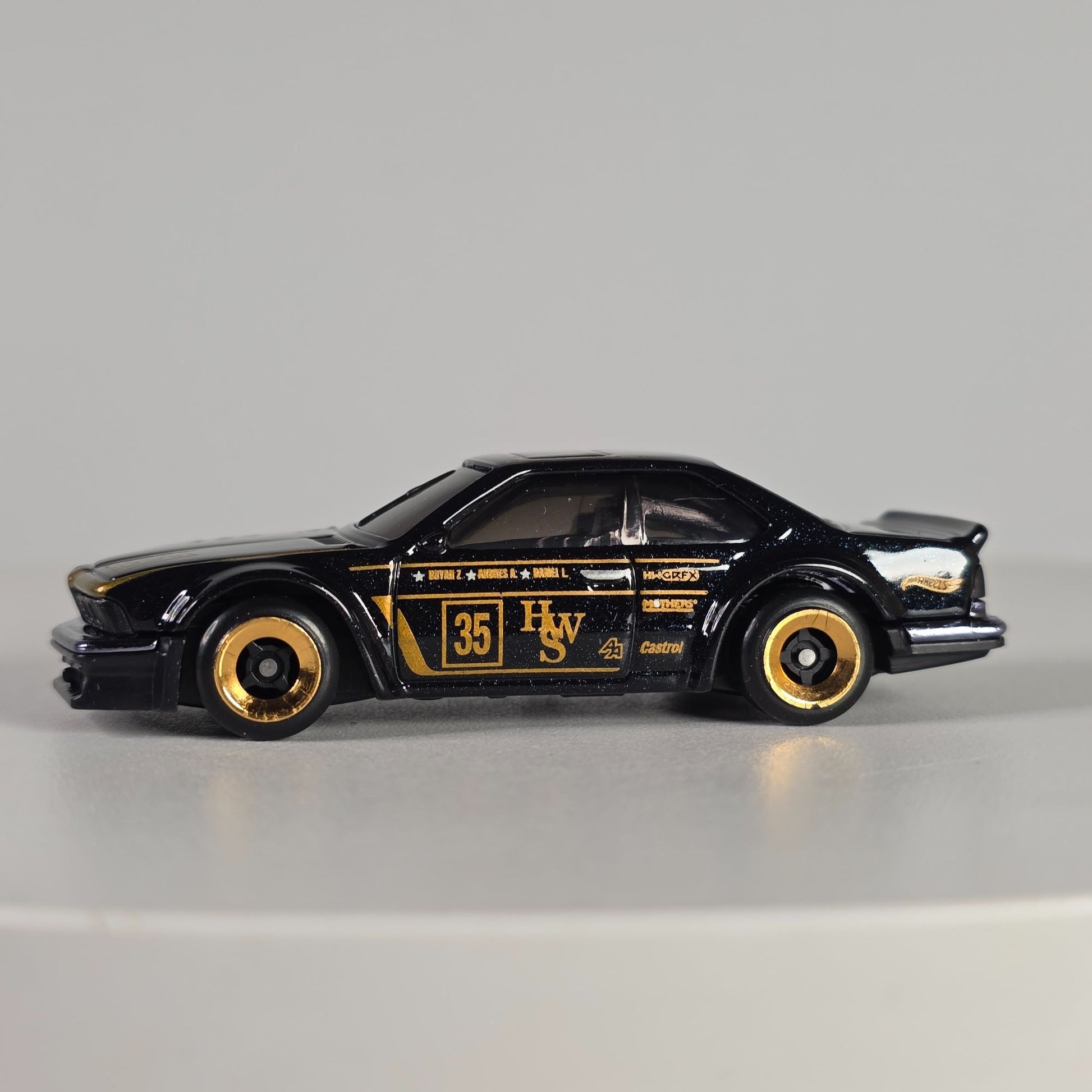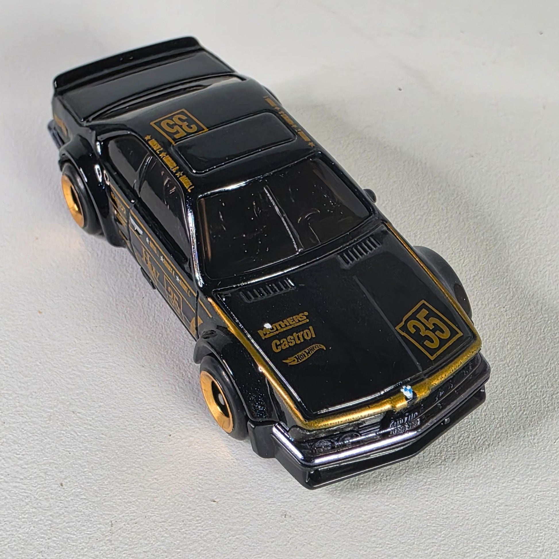 This miniature marvel from Hot Wheels embodies the thrilling world of automotive design with its widebody style and intricate detailing. The BMW 635 CSi is a collector's delight, showcasing a sleek black finish accentuated by striking gold accents. With its number 35 proudly displayed, this model captures the essence of racing glory in a compact form.