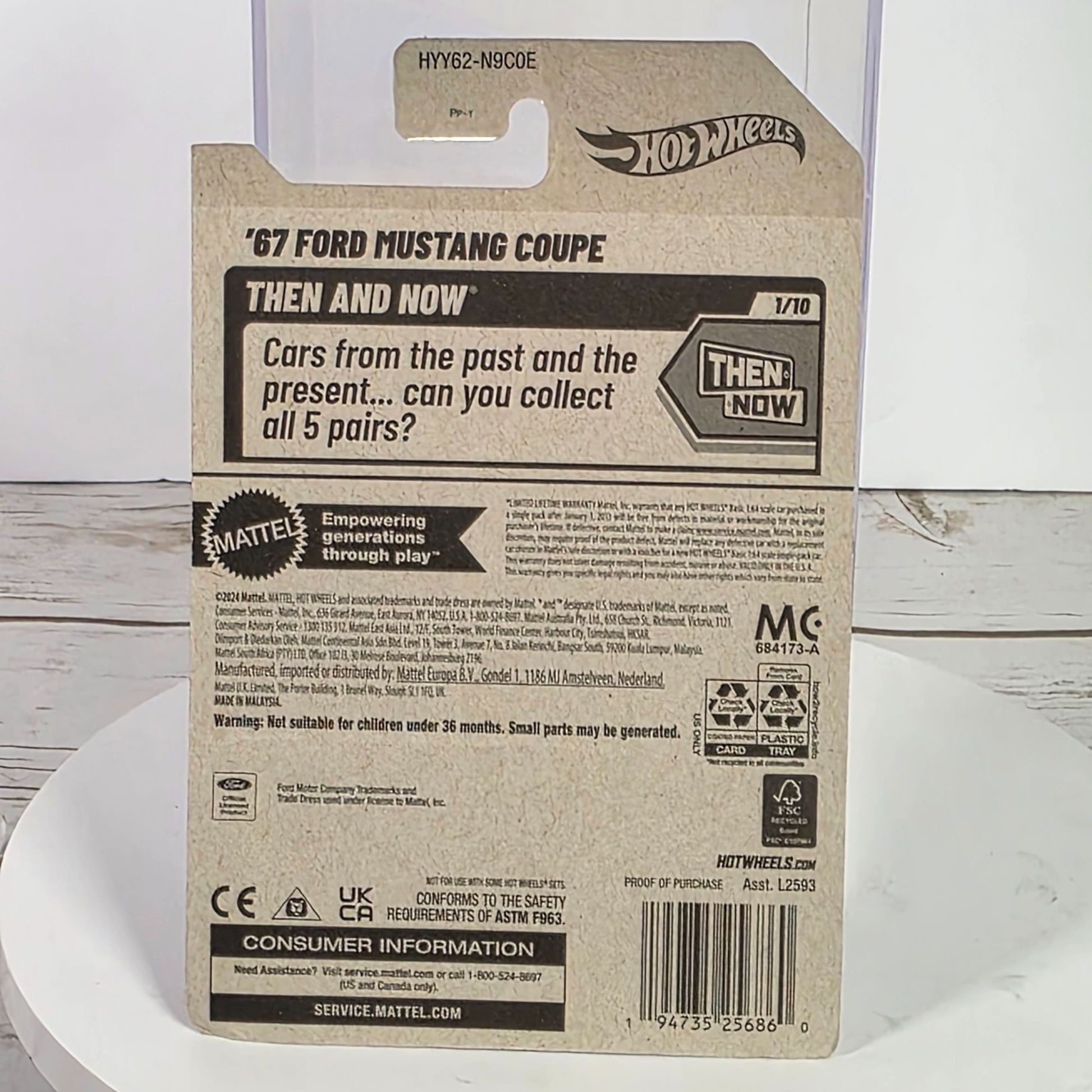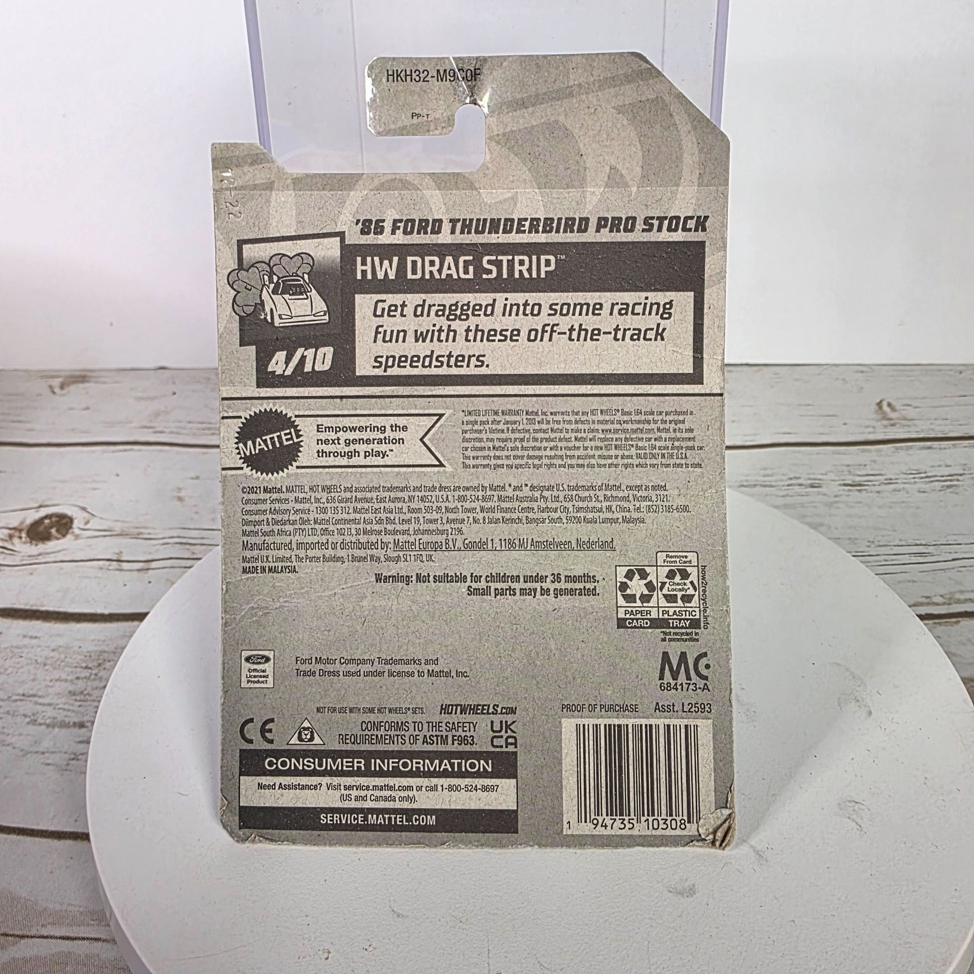 A celebration of automotive history, this set features vibrant, die-cast replicas of the '67 Ford Mustang Coupe and '86 Ford Thunderbird Pro Stock. Encased in their original packaging, they are a collector's delight, blending nostalgia with the precision and artistry Hot Wheels is known for, making them treasures for enthusiasts.