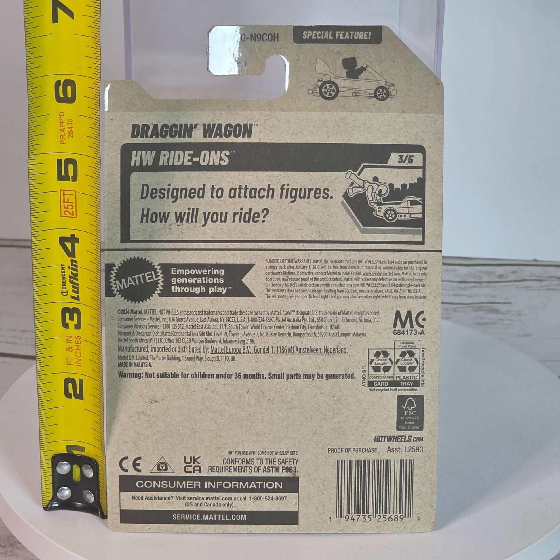 This miniature marvel encapsulates the thrill of speed and the artistry of design. The Draggin' Wagon, with its arresting purple hue and intricate detailing, is a testament to Hot Wheels' enduring legacy. A collector's delight or a charming addition to playtime adventures, this die-cast car bridges nostalgia and modern craftsmanship effortlessly.