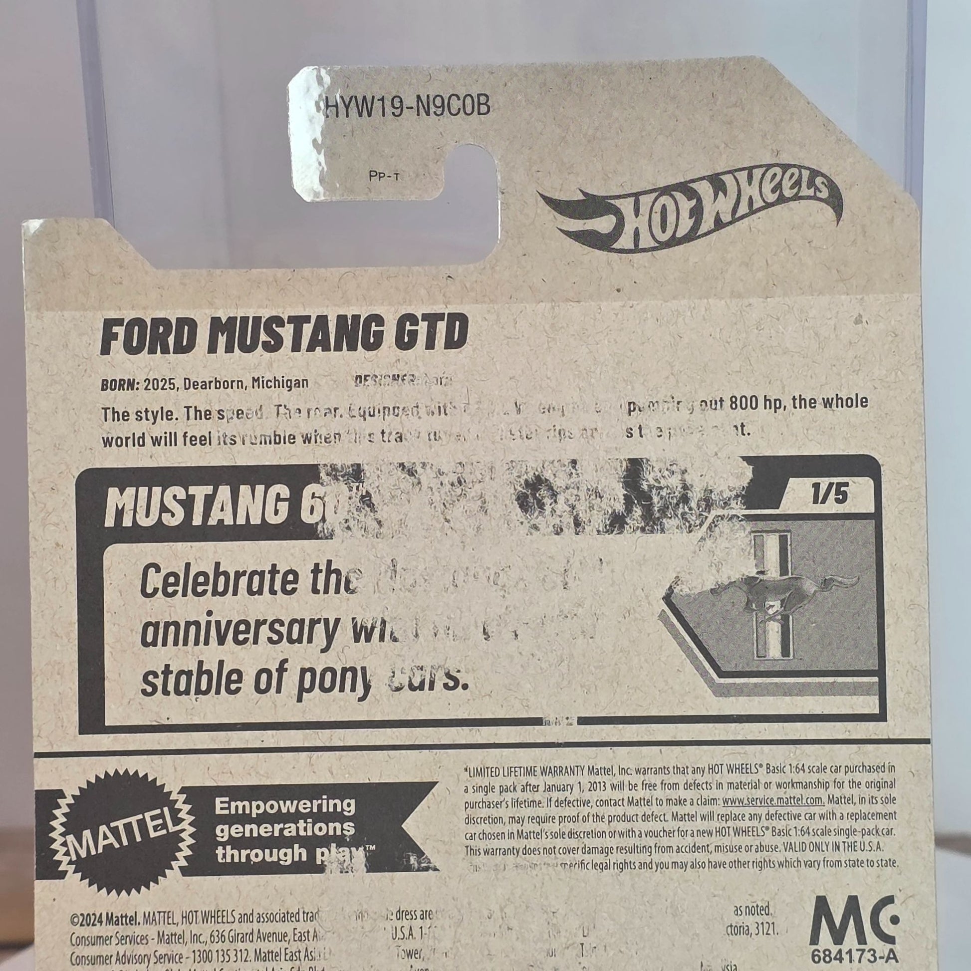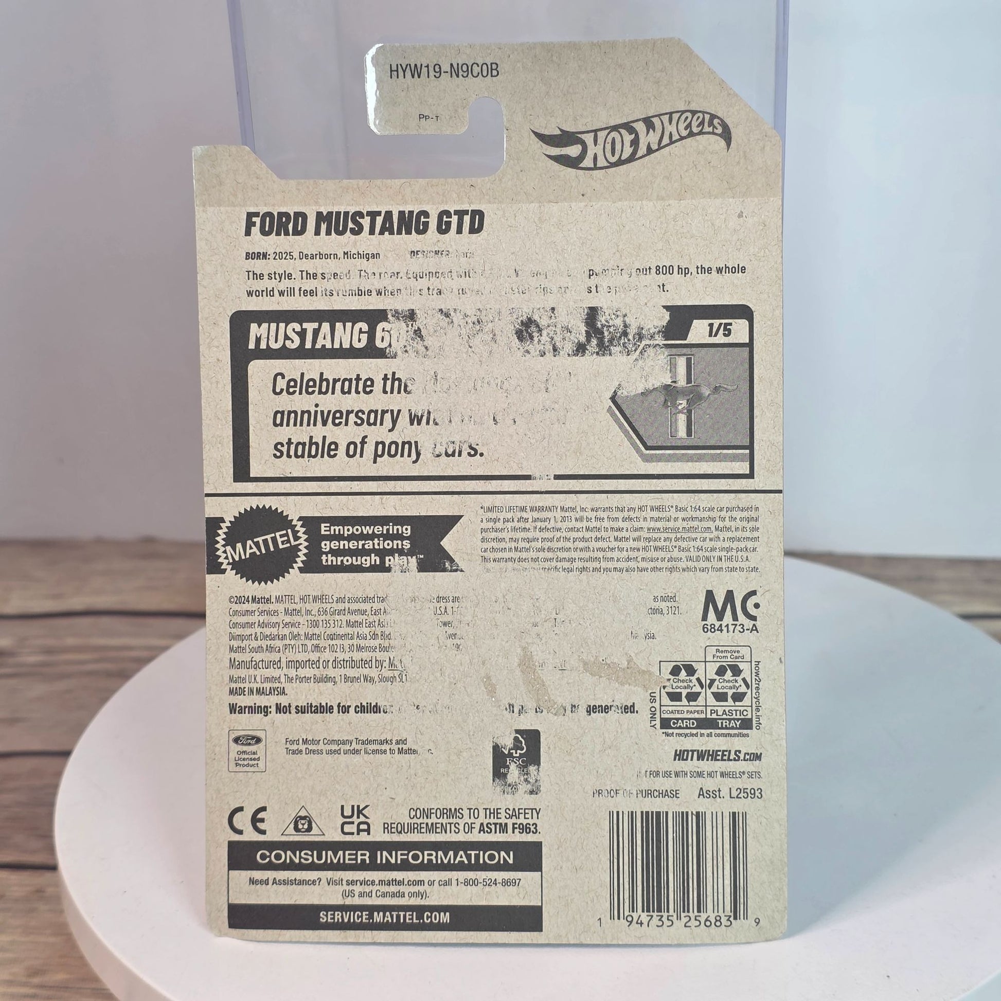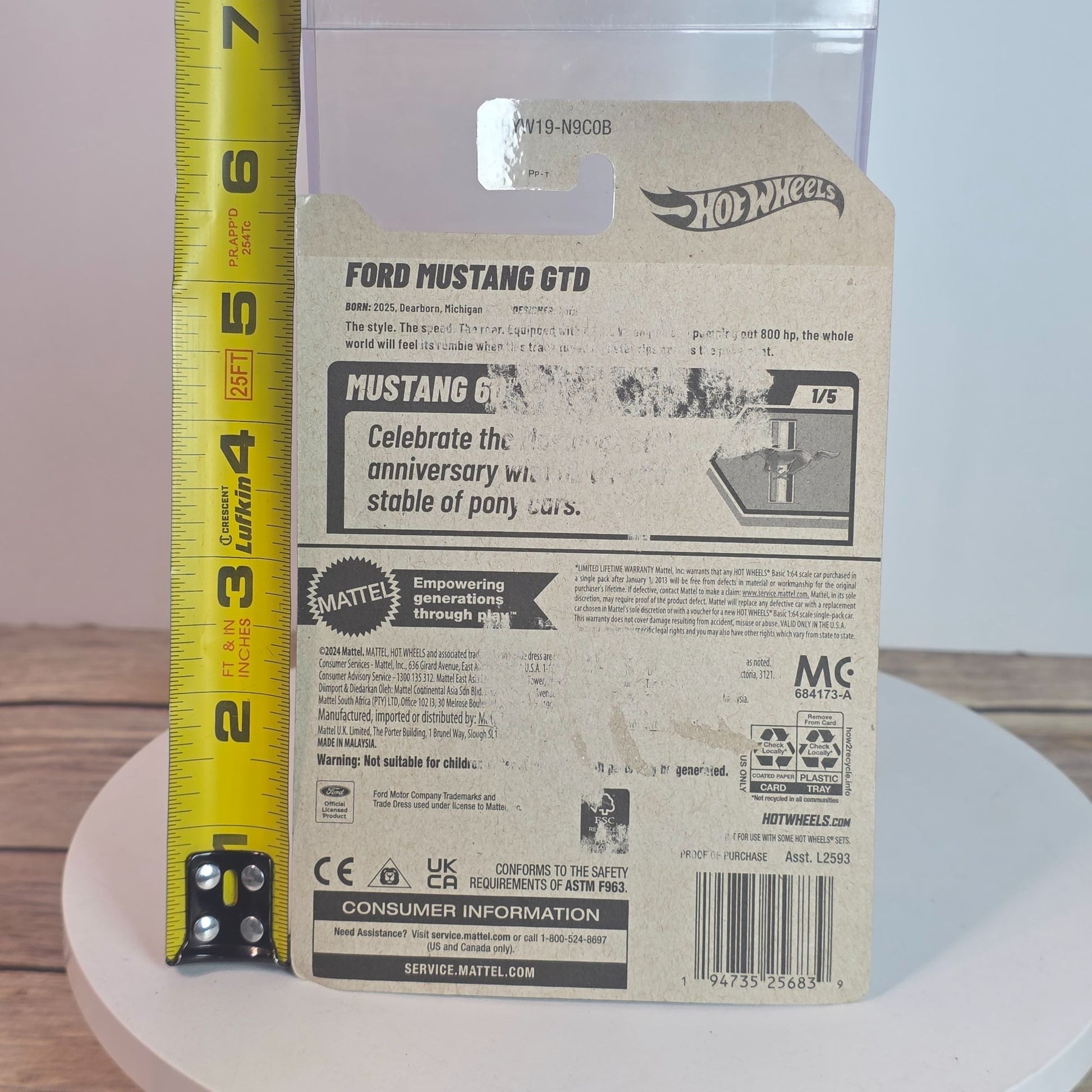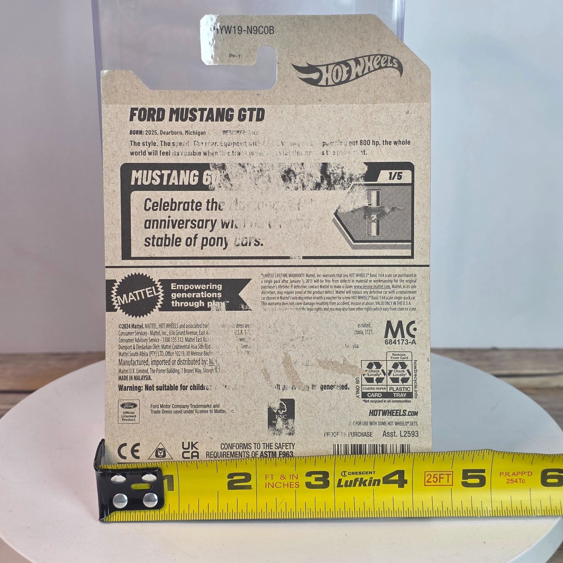 The Hot Wheels Ford Mustang GTD is a captivating miniature model embodying the sleek design and performance of the iconic Mustang series. As part of the 2025 collection, this die-cast car, numbered 34 out of 250, promises exclusivity and attention to detail. Its shimmering finish and intricate wheel design make it a must-have for collectors and enthusiasts alike.