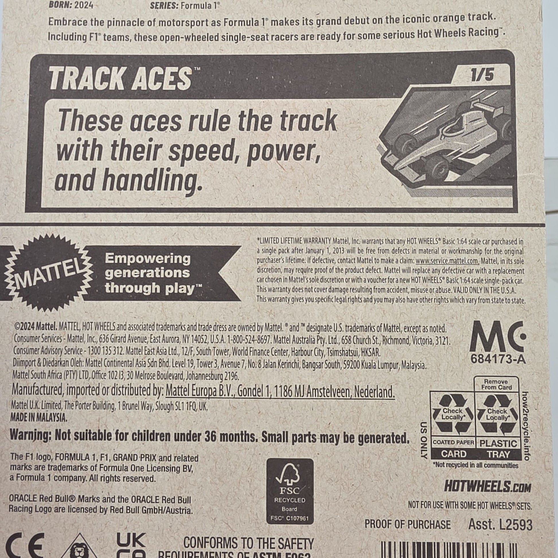 This collectible Hot Wheels die-cast showcases the sleek and dynamic design of the Formula 1 Oracle Red Bull Racing car. Crafted with precision, its vivid detailing captures the essence of speed and competition. A valuable addition for enthusiasts or collectors, this 59/250 model offers a glimpse into the excitement of racing.