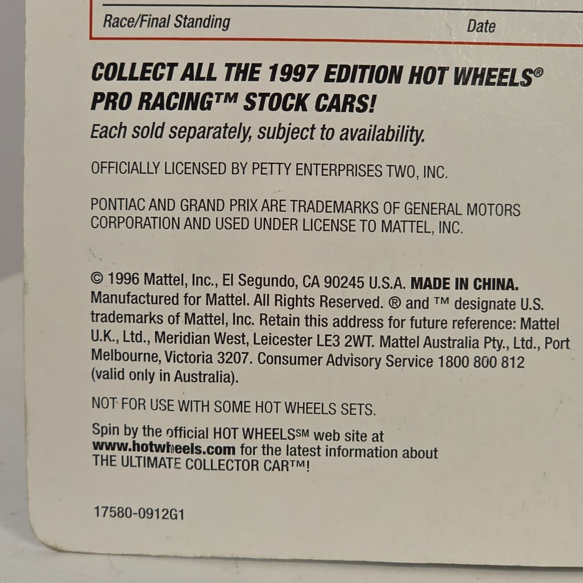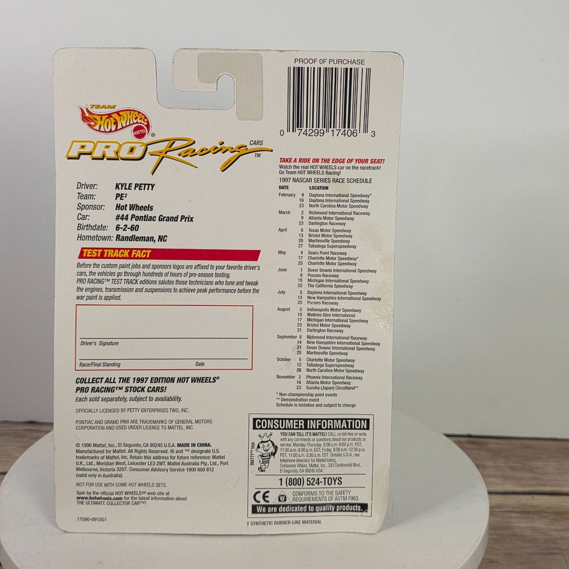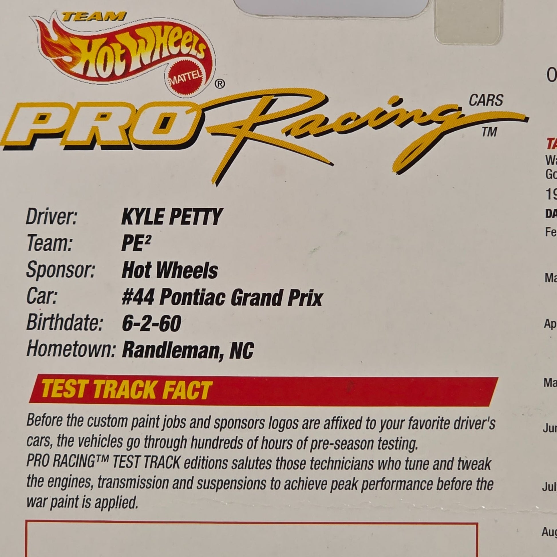 • • NASCAR Pro Racing Series• Kyle Petty #44 Edition• Die-Cast Metal Construction• Deluxe "Rubber" Tires• Collector's Item