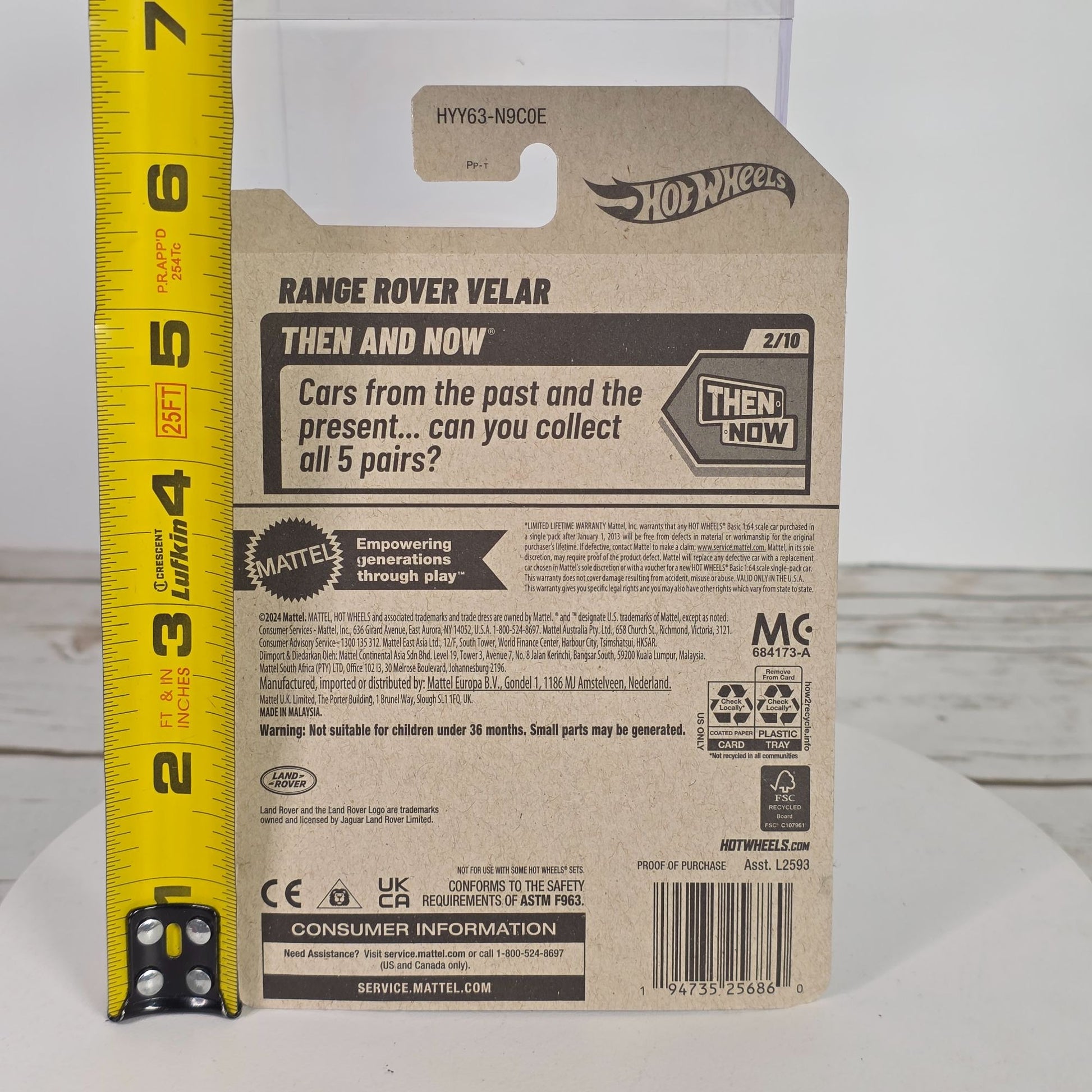 Step into the world of miniature luxury with this Hot Wheels Range Rover Velar die-cast car. Crafted with precision, it features a striking gold finish combined with sleek black details, capturing the essence of the full-sized vehicle. A collector's delight, this model is part of the coveted Then & Now series, showcasing the evolution of automotive design.