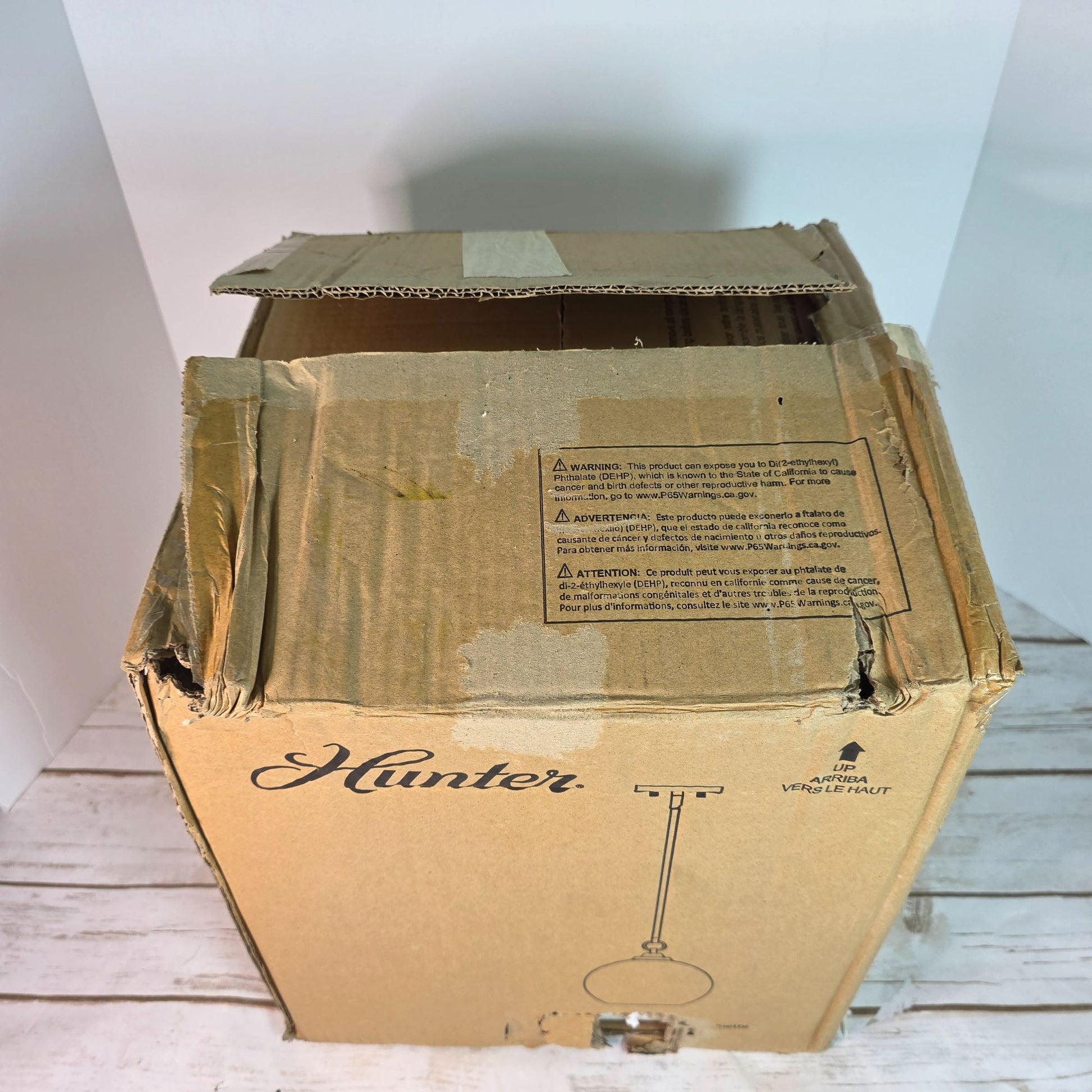 Box has damage, but product appears intact. Measurements: 31x33x34 inches.