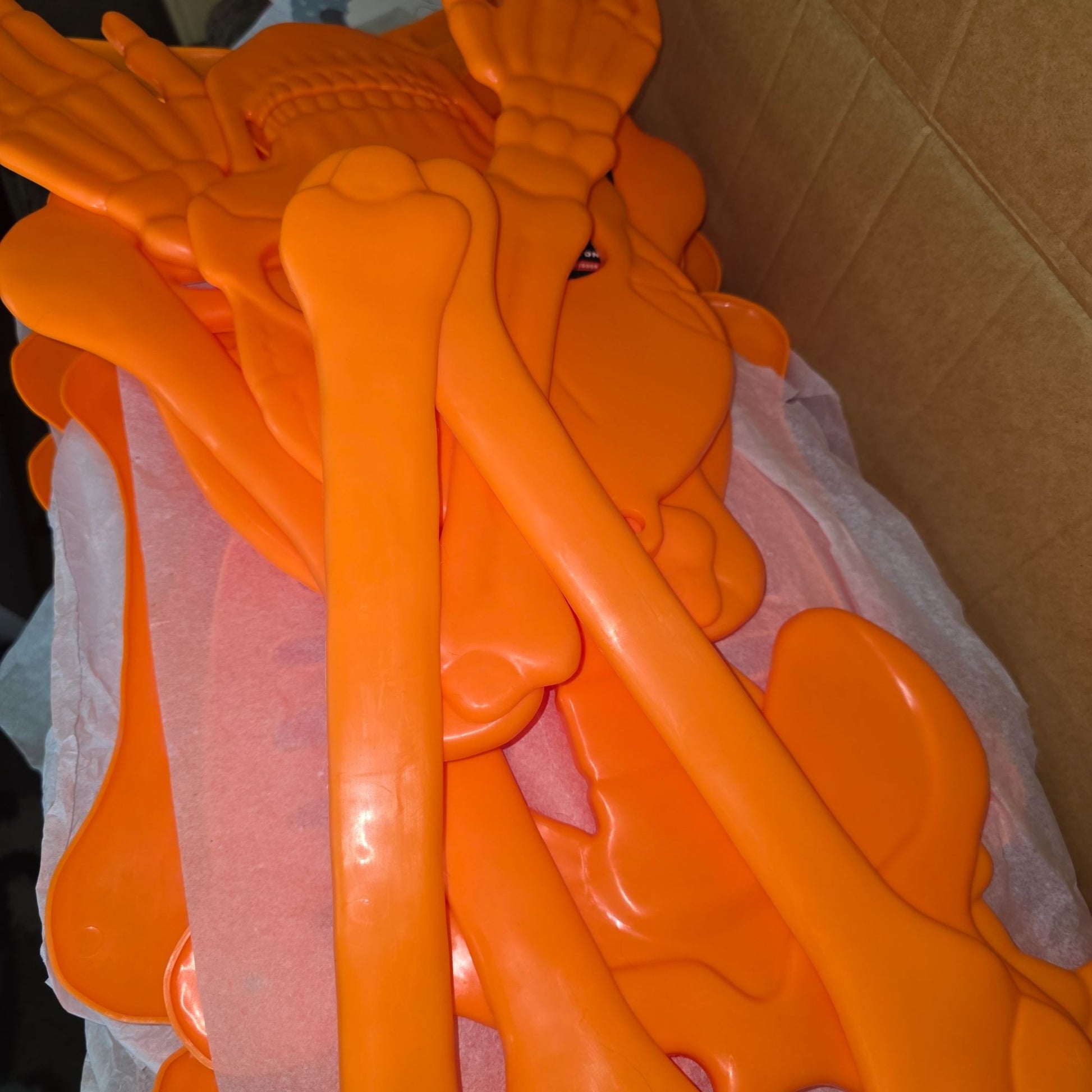 This orange skeleton is dying to be the life of your Halloween party! Fully poseable, it’s perfect for spooky shenanigans or scaring the neighbors.