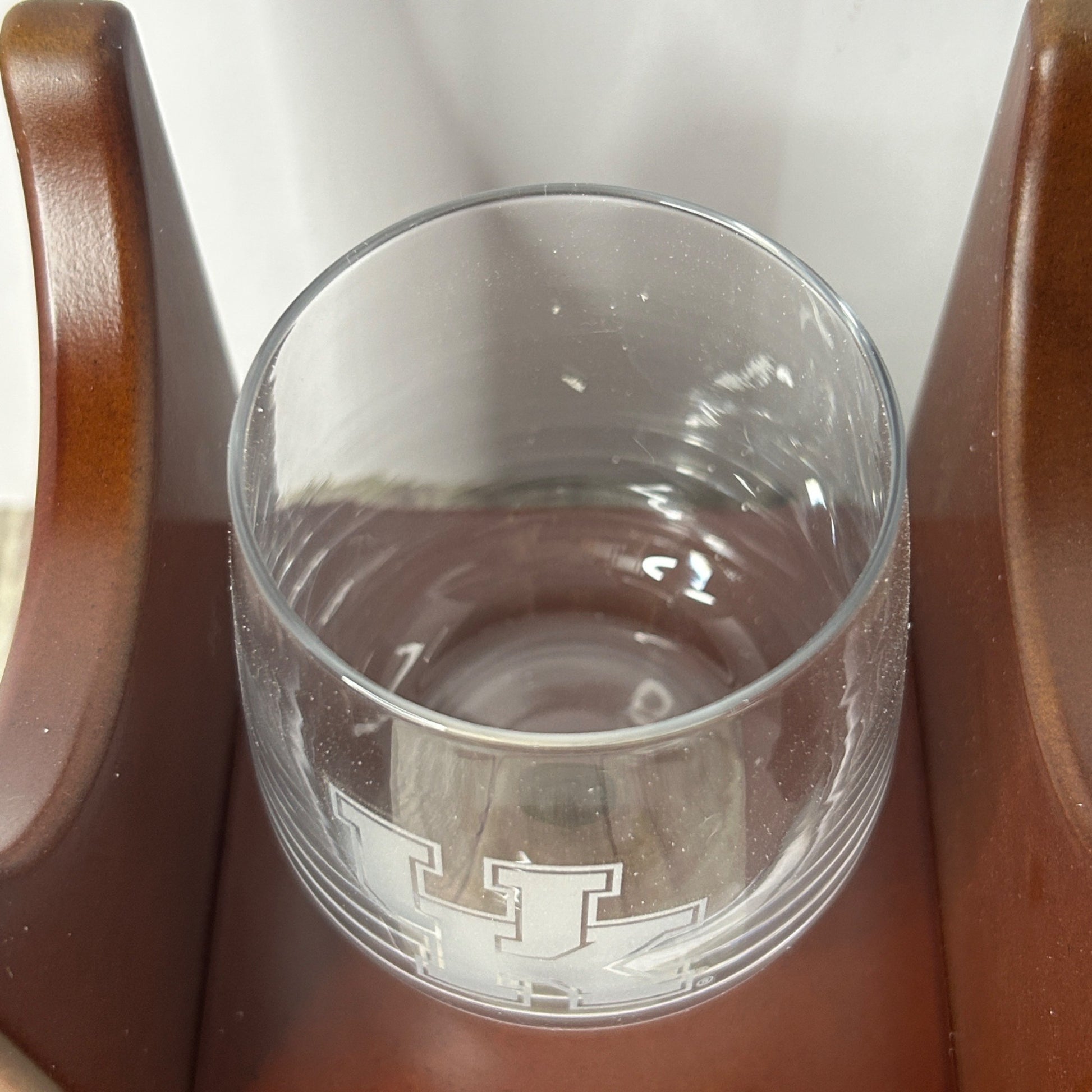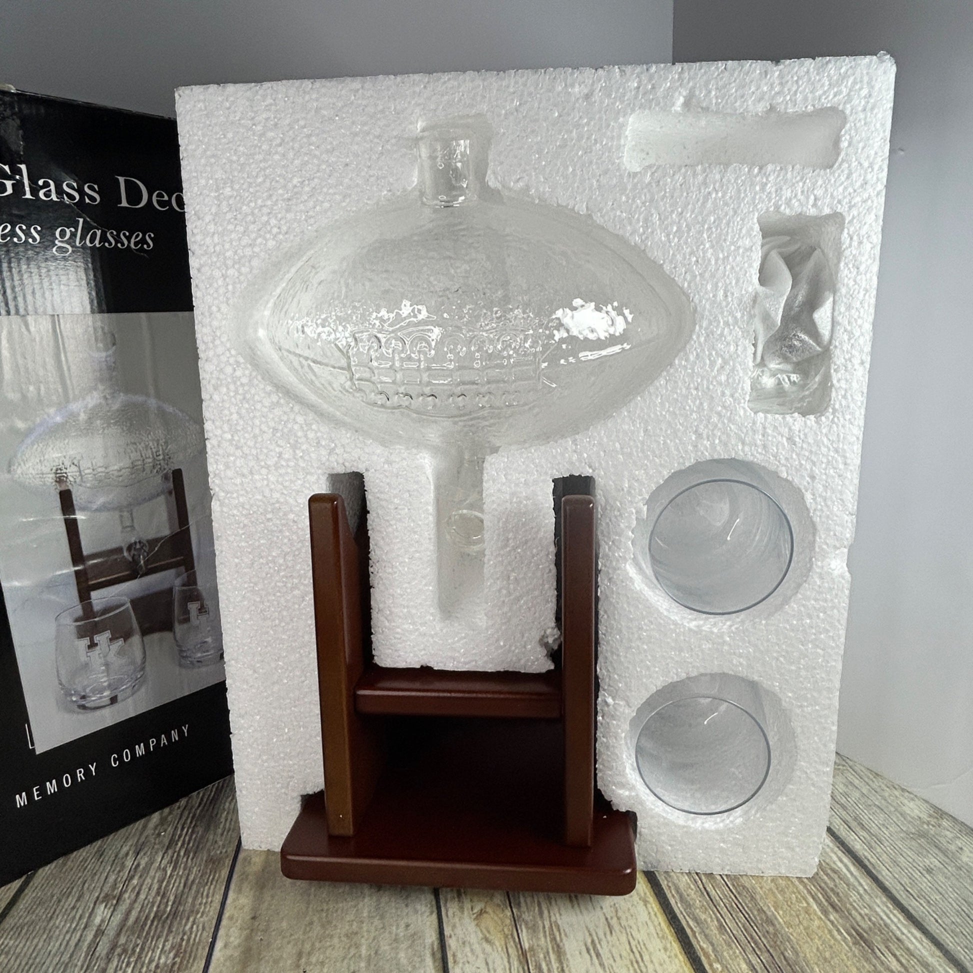 Immerse yourself in the spirit of Kentucky Wildcats football with this exquisite glass decanter set. Designed by The Memory Company, the set includes a football-shaped decanter and two stemless glasses, each etched with the iconic UK logo, symbolizing the team's pride and tradition. Displayed on a wooden stand, it serves as both a functional piece for your beverage enjoyment and a decorative item that celebrates your allegiance.