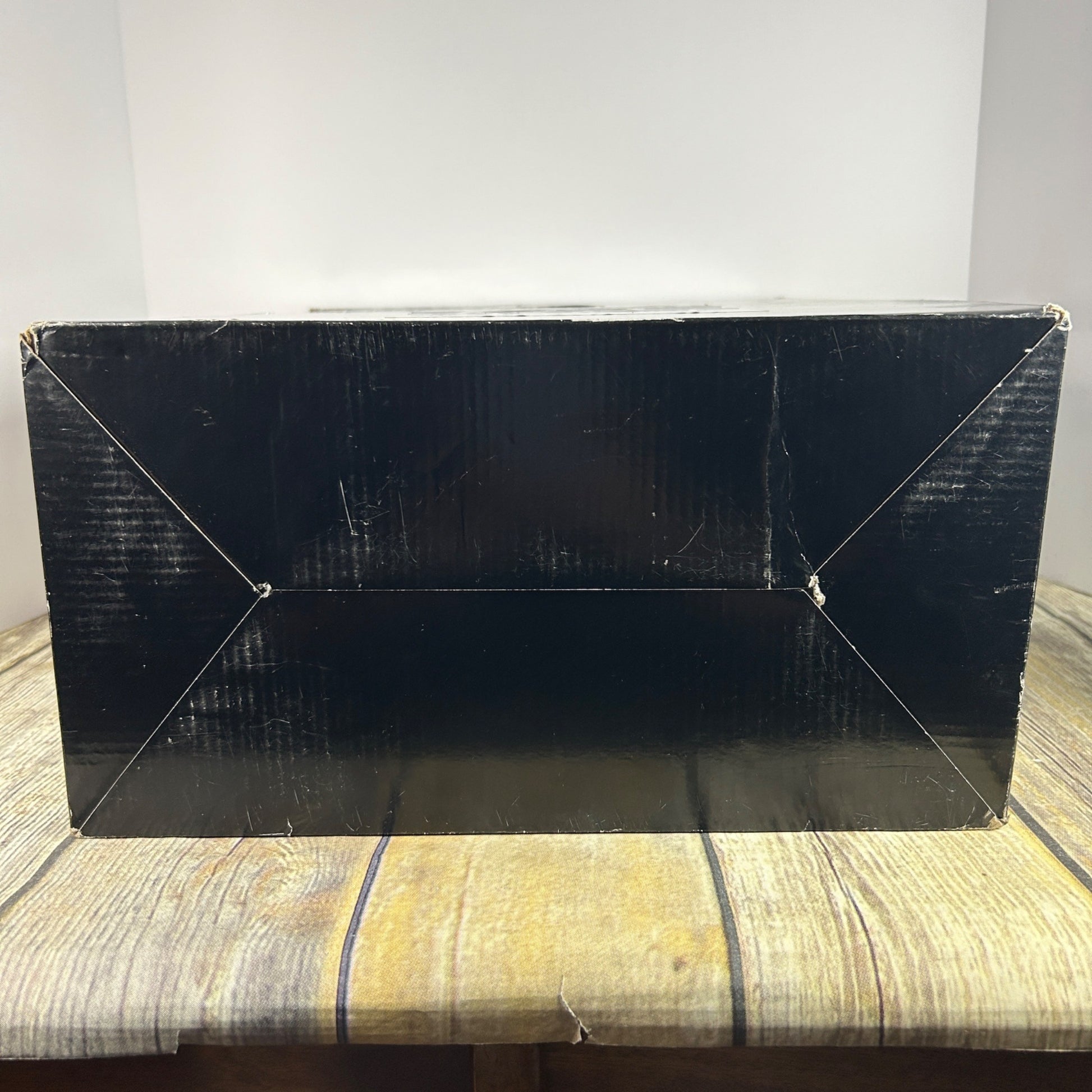 Box shows signs of wear with scratches and dents.