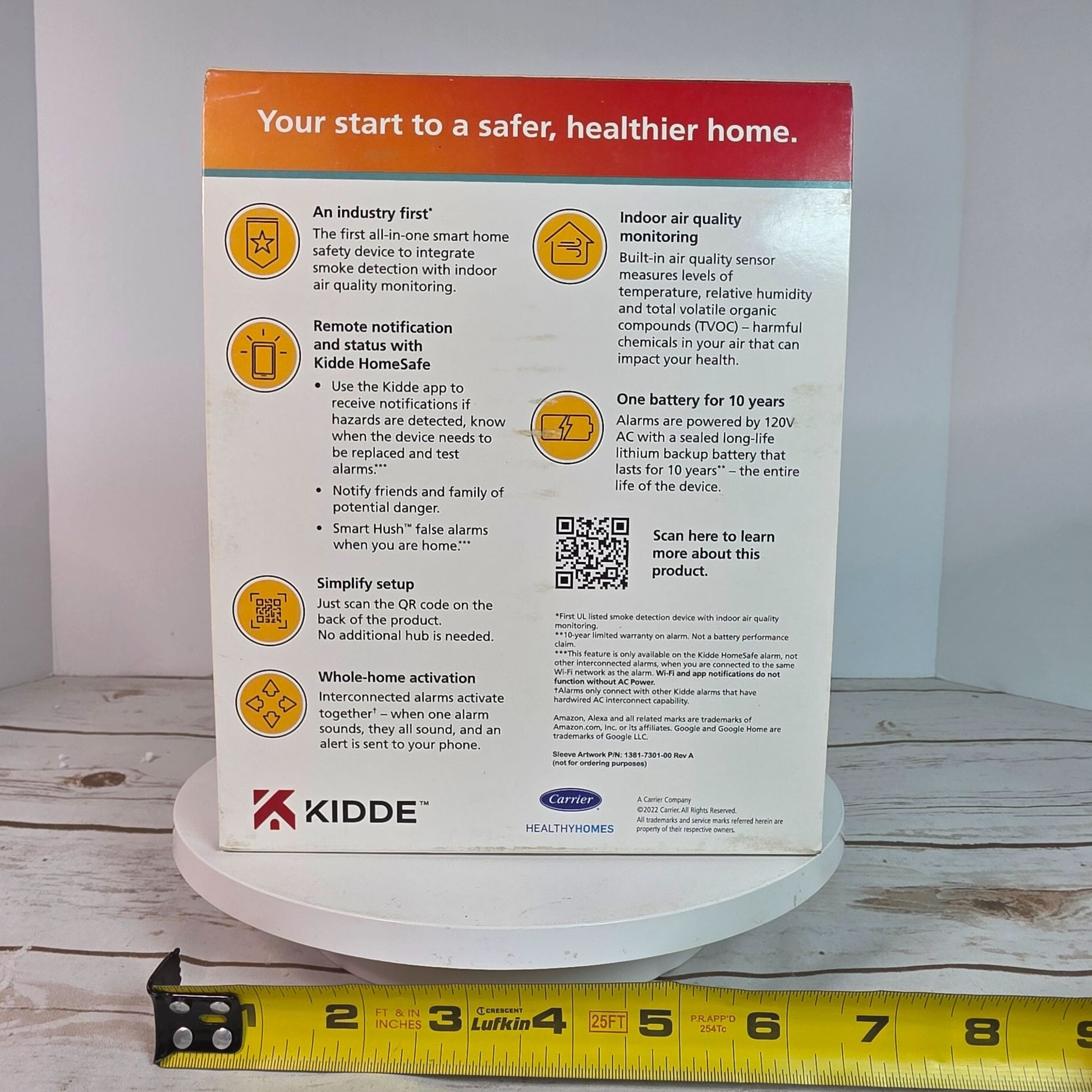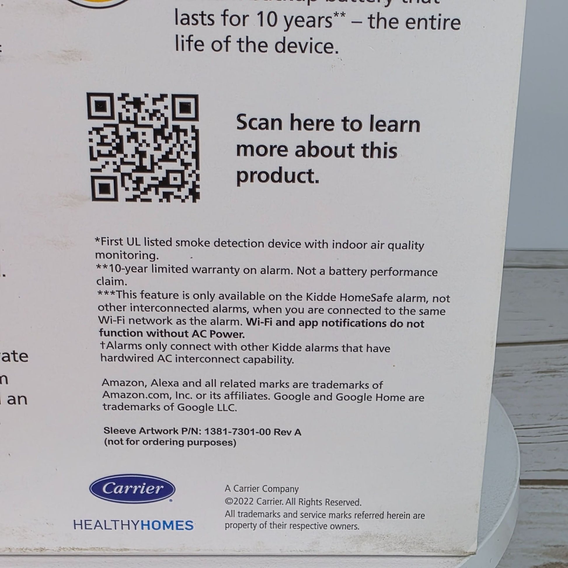 Kidde Smoke Alarm With Indoor Air Quality Monitor Wi-Fi Smart Alarm Mobile Alerts Alexa & Google Home Compatible 10-Year Battery