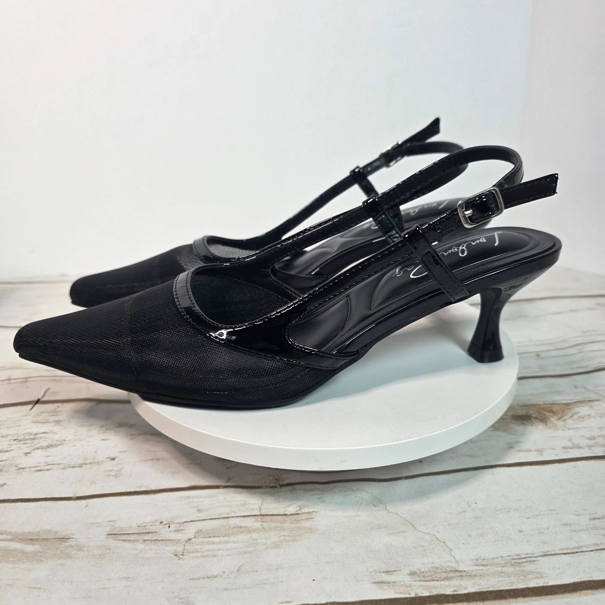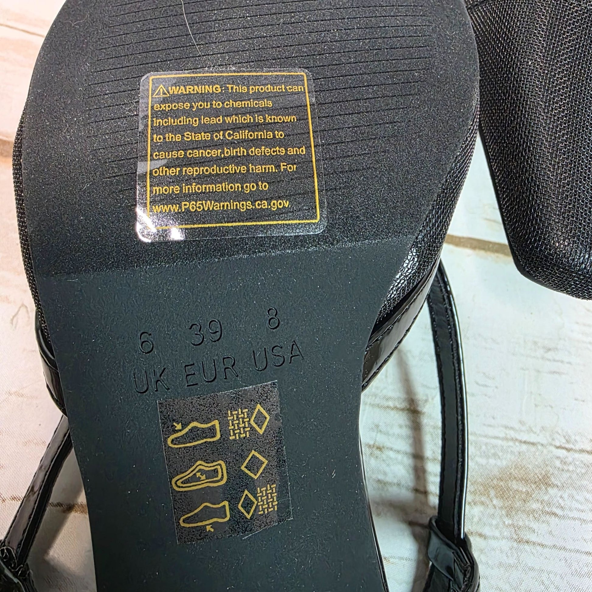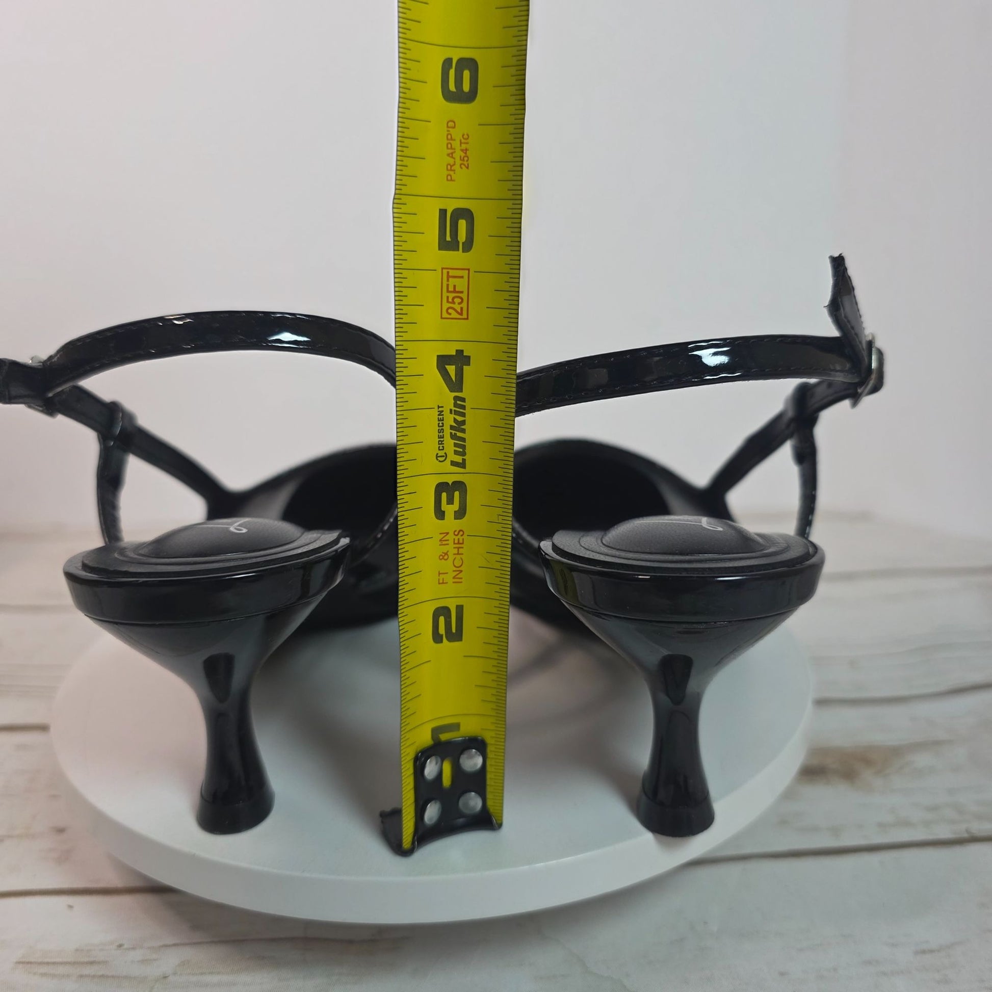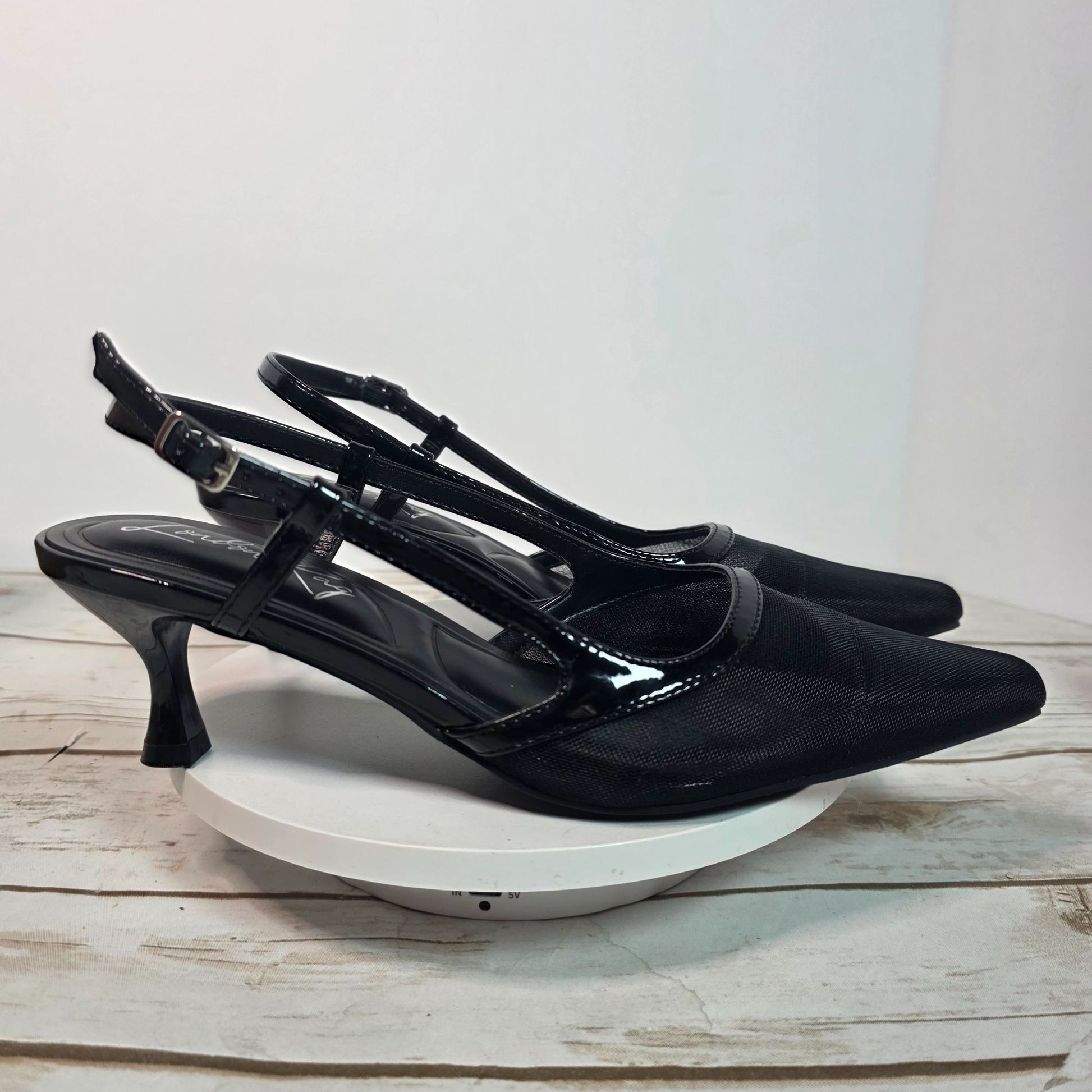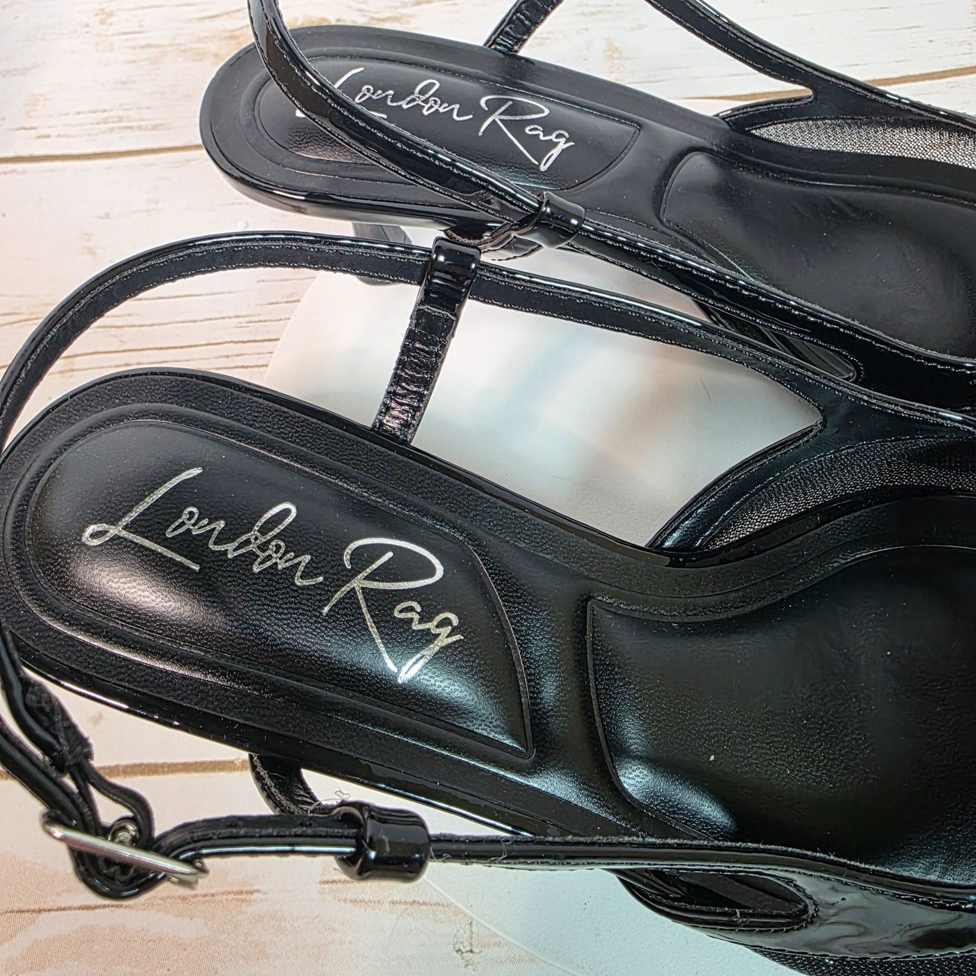 London Rag Black Slingback Mesh Axton Kitten Heels With Patent Trim Womens Shoes Size 5 Elegant Design