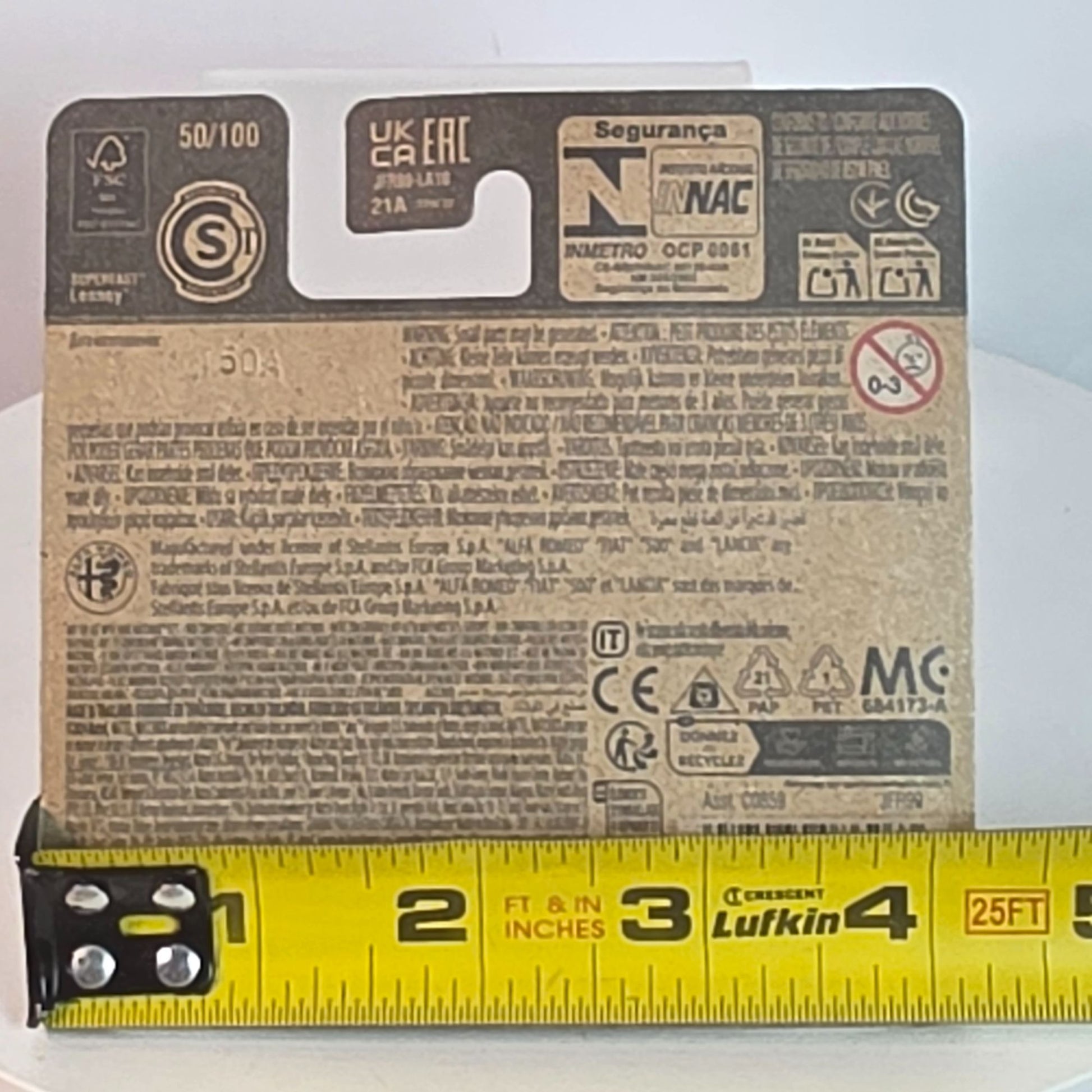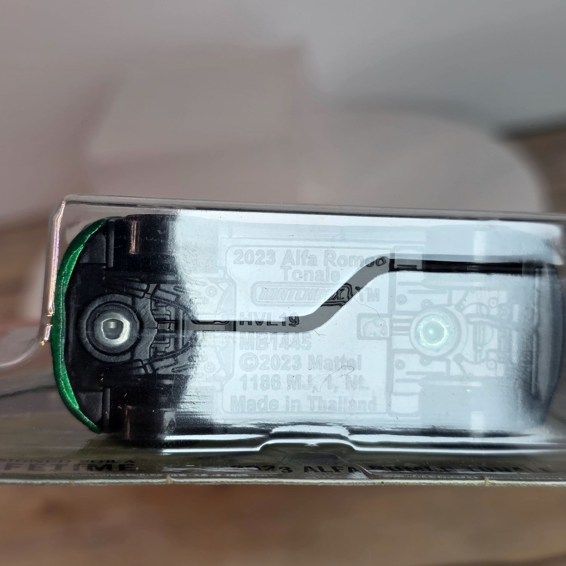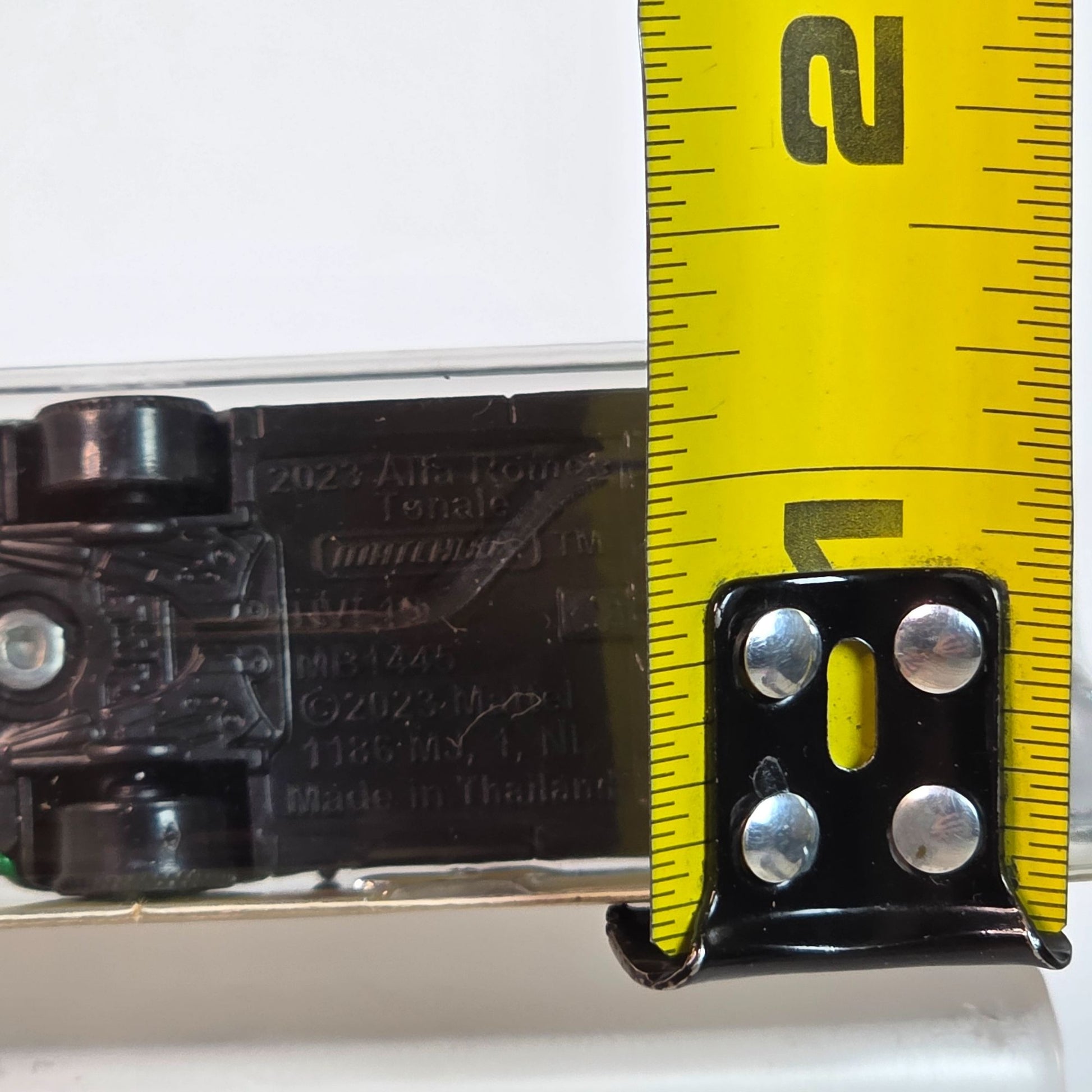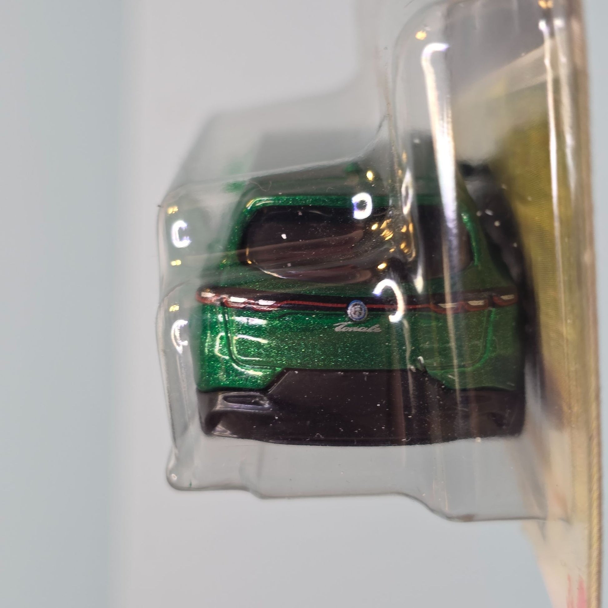 This Matchbox 2023 Alfa Romeo Tonale die-cast vehicle on a short card beautifully captures the elegance and design of the original car in a compact form. Its striking green finish is complemented by the detailed craftsmanship, showcasing the car's sleek lines and distinctive style. Ideal for both collectors and young car enthusiasts, this piece combines aesthetic appeal with durable construction for lasting enjoyment.