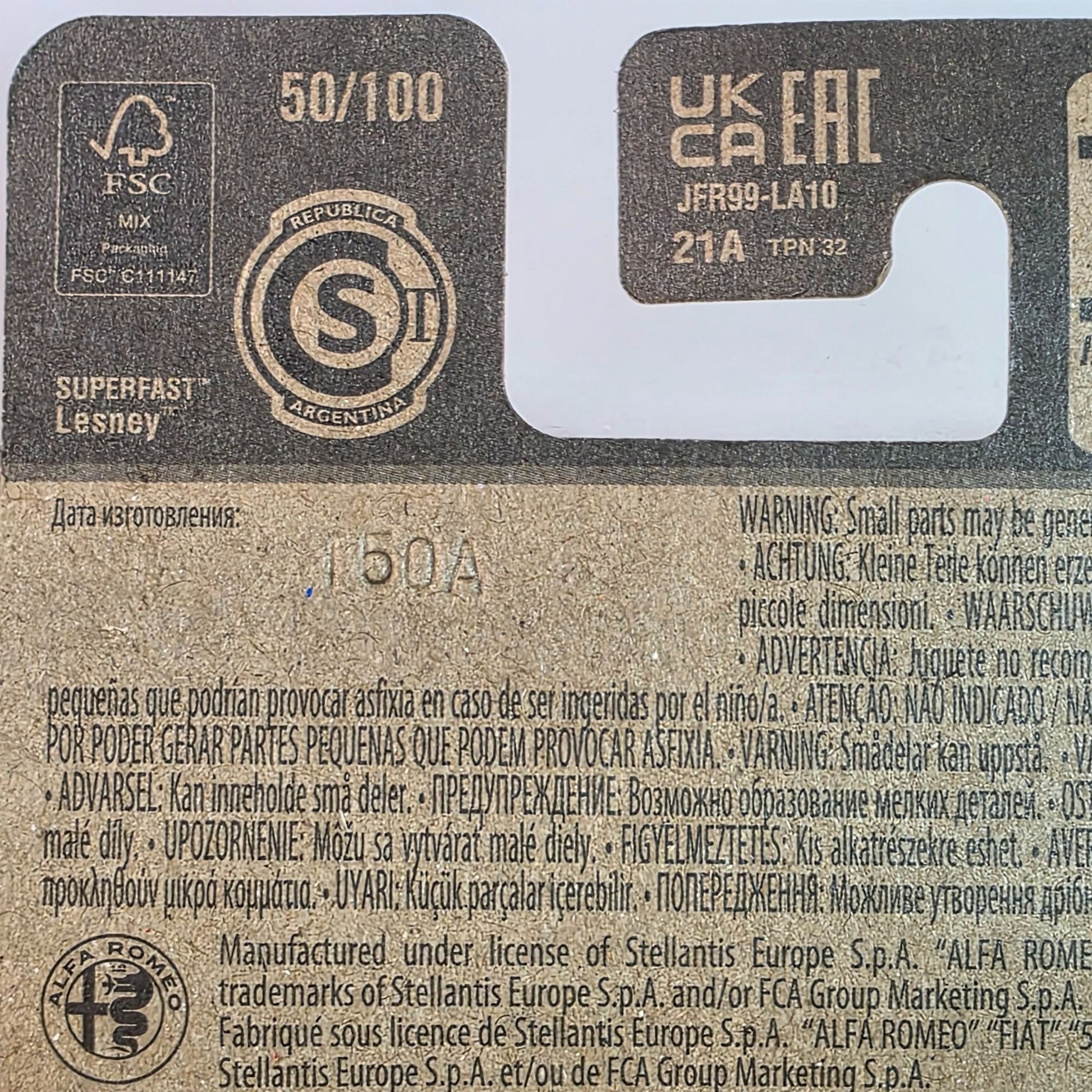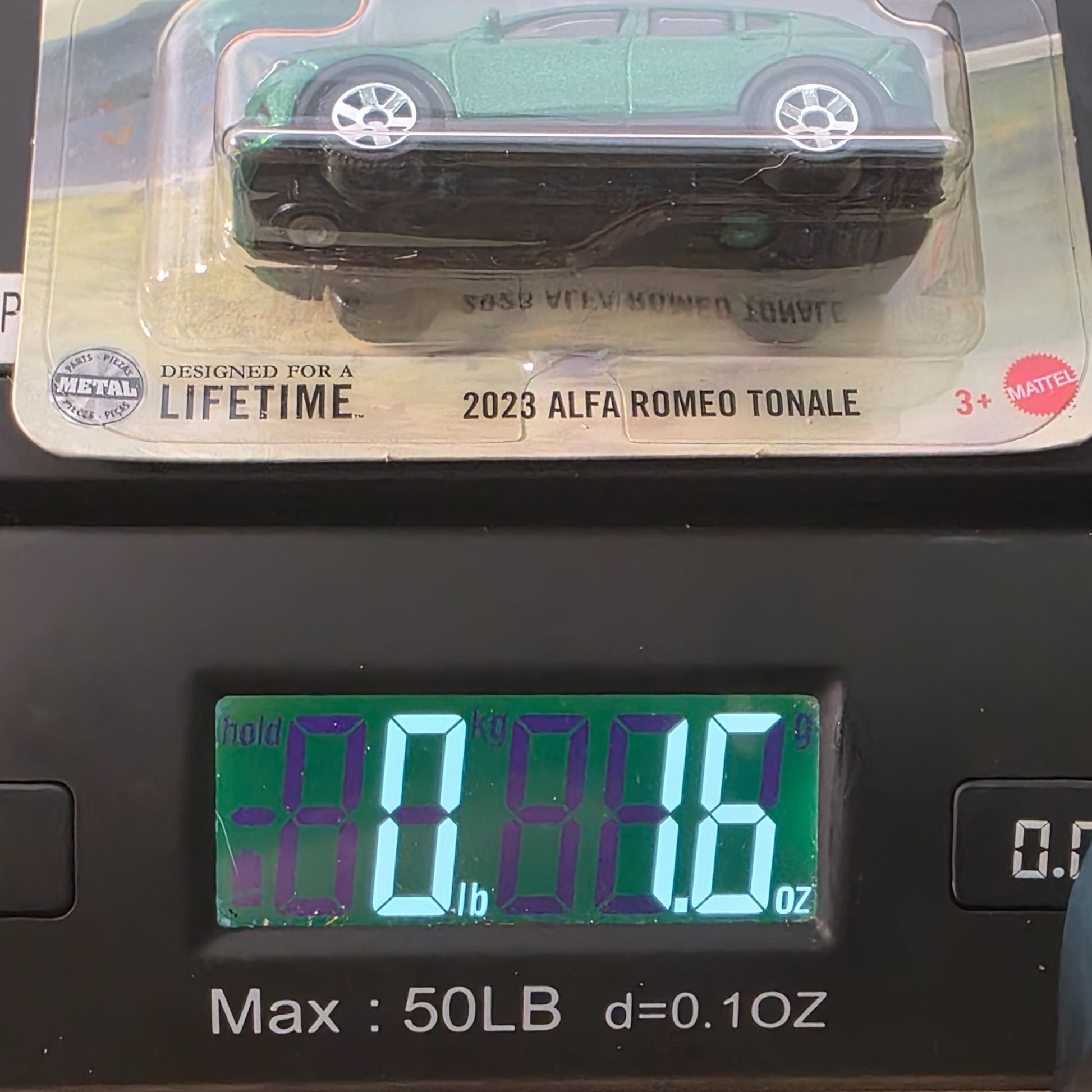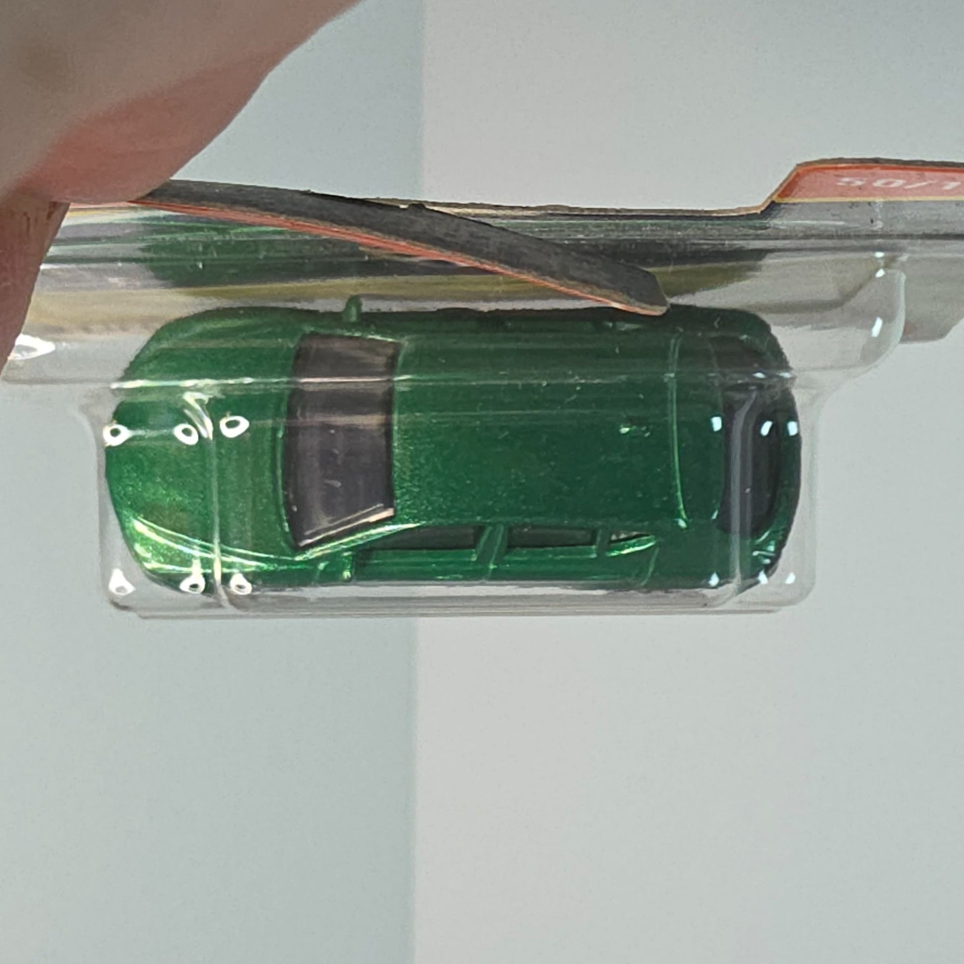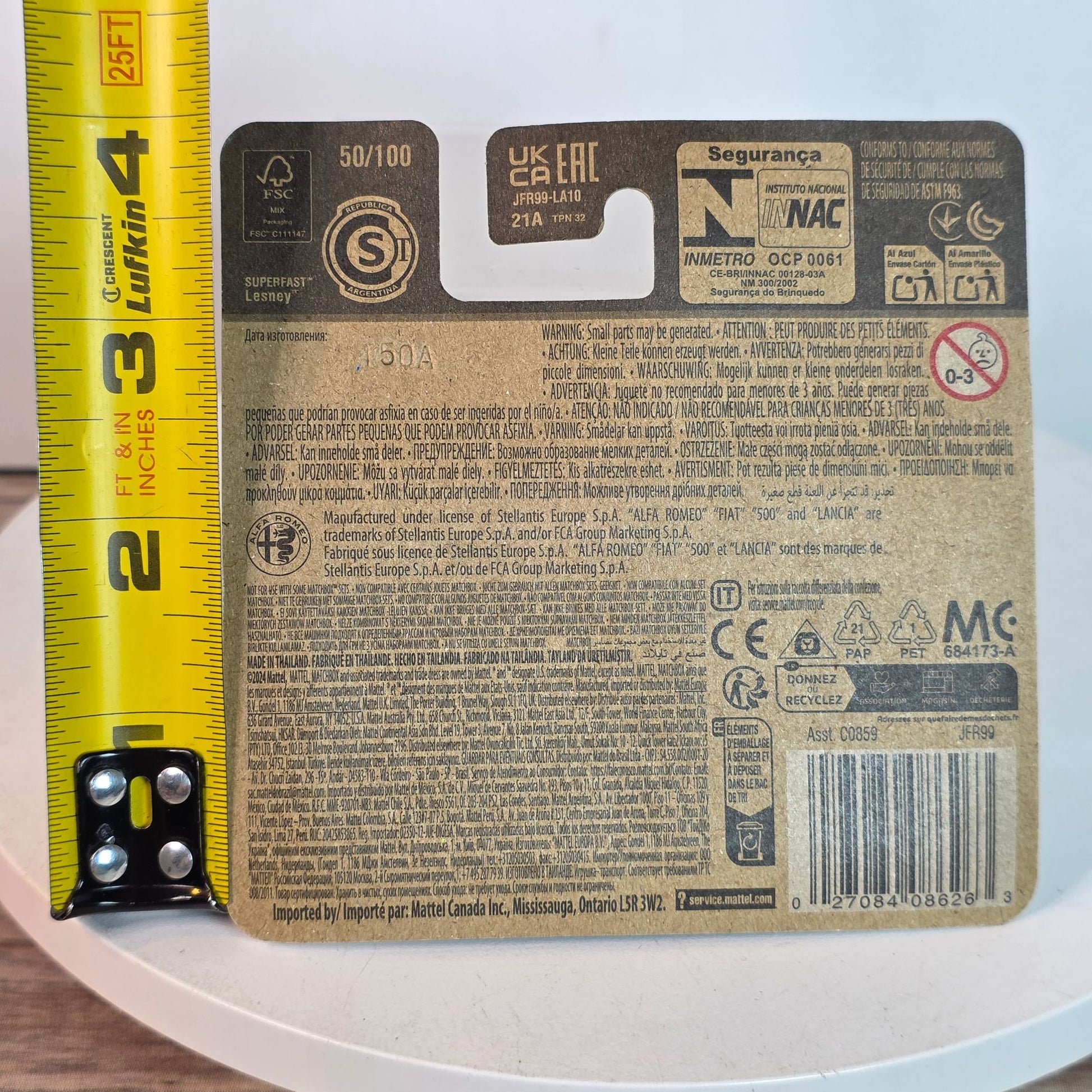 This Matchbox 2023 Alfa Romeo Tonale die-cast vehicle on a short card beautifully captures the elegance and design of the original car in a compact form. Its striking green finish is complemented by the detailed craftsmanship, showcasing the car's sleek lines and distinctive style. Ideal for both collectors and young car enthusiasts, this piece combines aesthetic appeal with durable construction for lasting enjoyment.