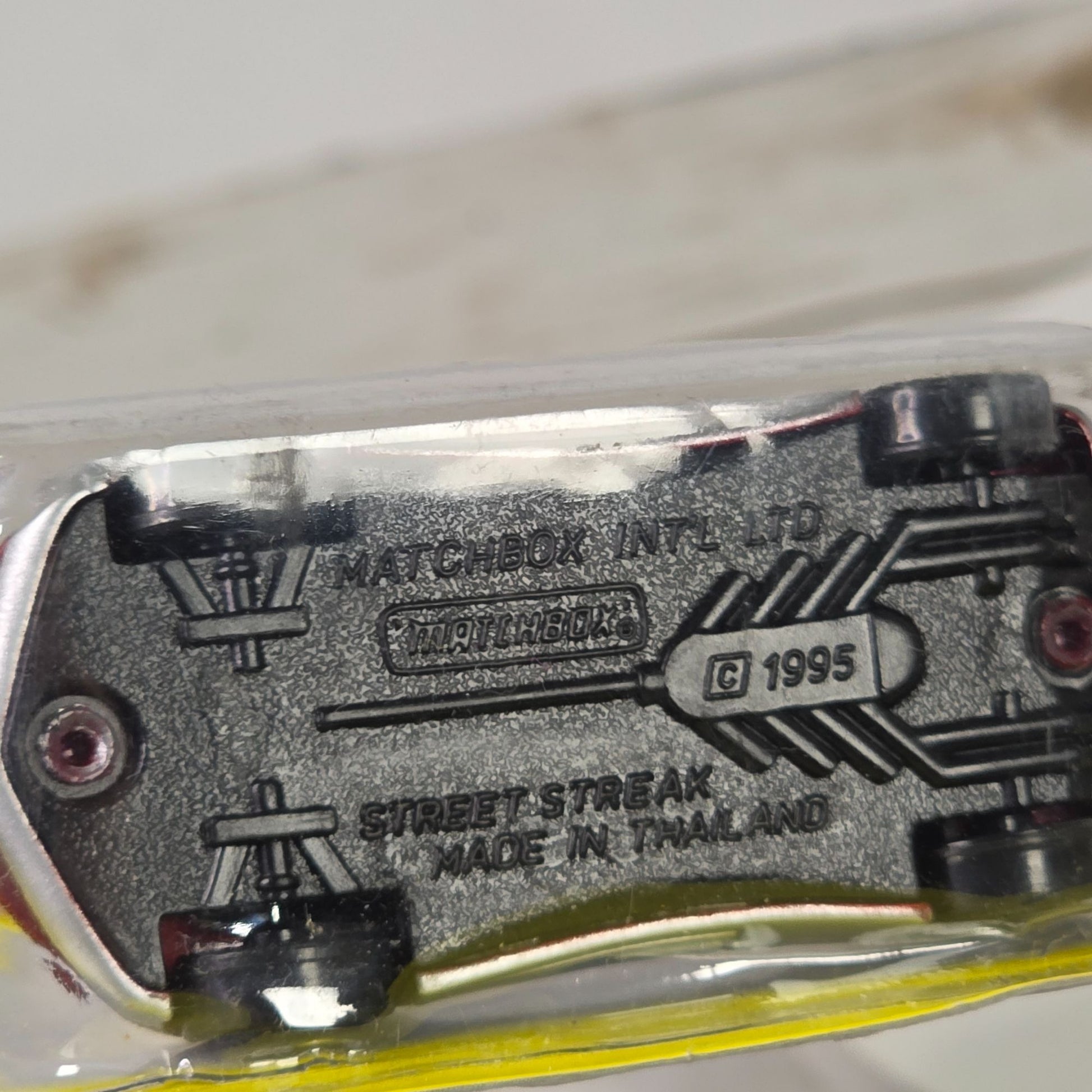 This Matchbox Superfast Street Streak diecast car offers a nostalgic throwback to the 1990s with its sleek design and vibrant red and silver colors. Encased in its original packaging, it is a pristine collectible for enthusiasts or a delightful gift for vintage toy admirers.