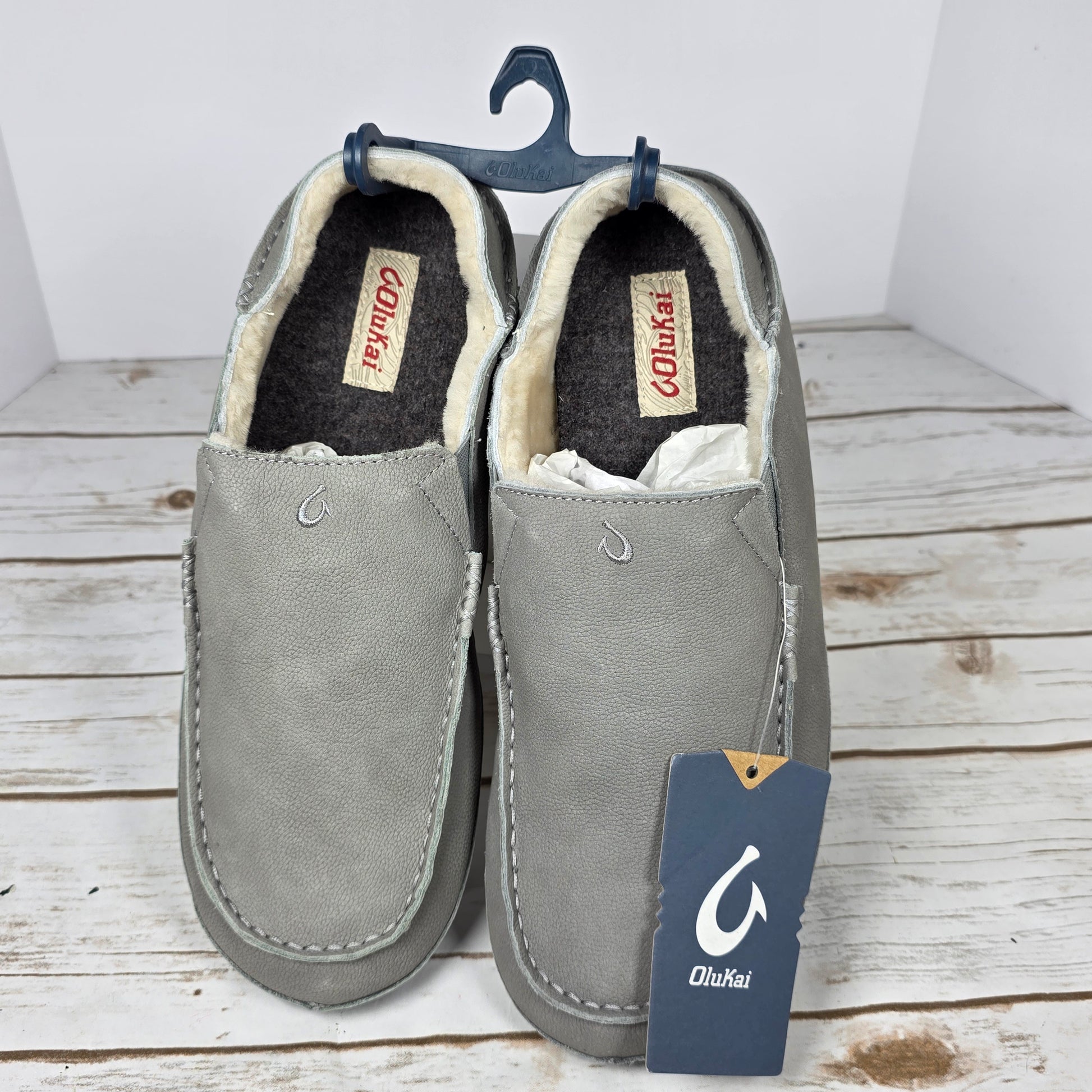 NWT New Men's Olukai Moloa Slippers Sharkskin Gray US Size 12M 10252-GWGW