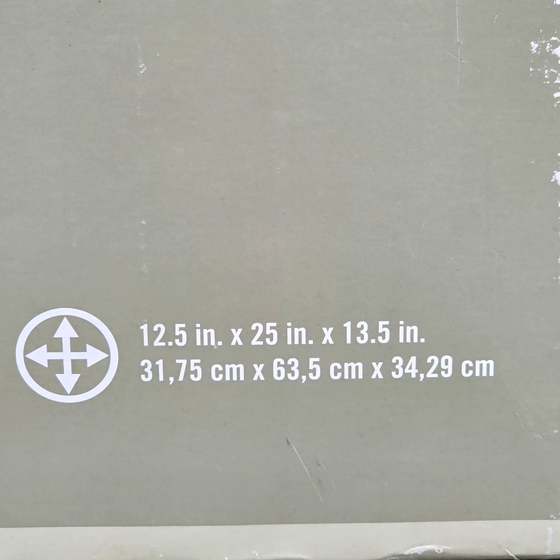 Box has cosmetic dents and scuffs from handling. Measurements: 12.5 in x 25 in x 13.5 in.